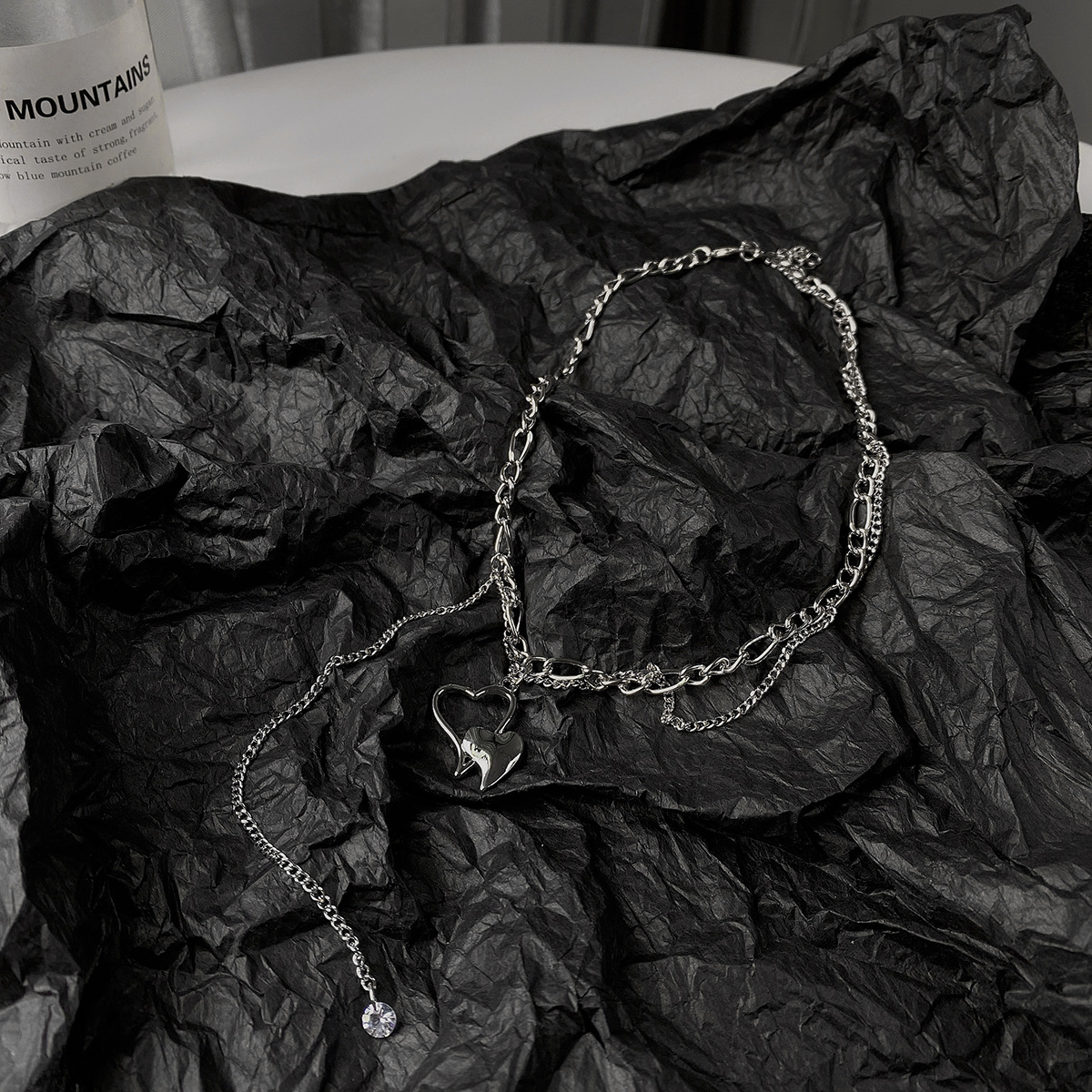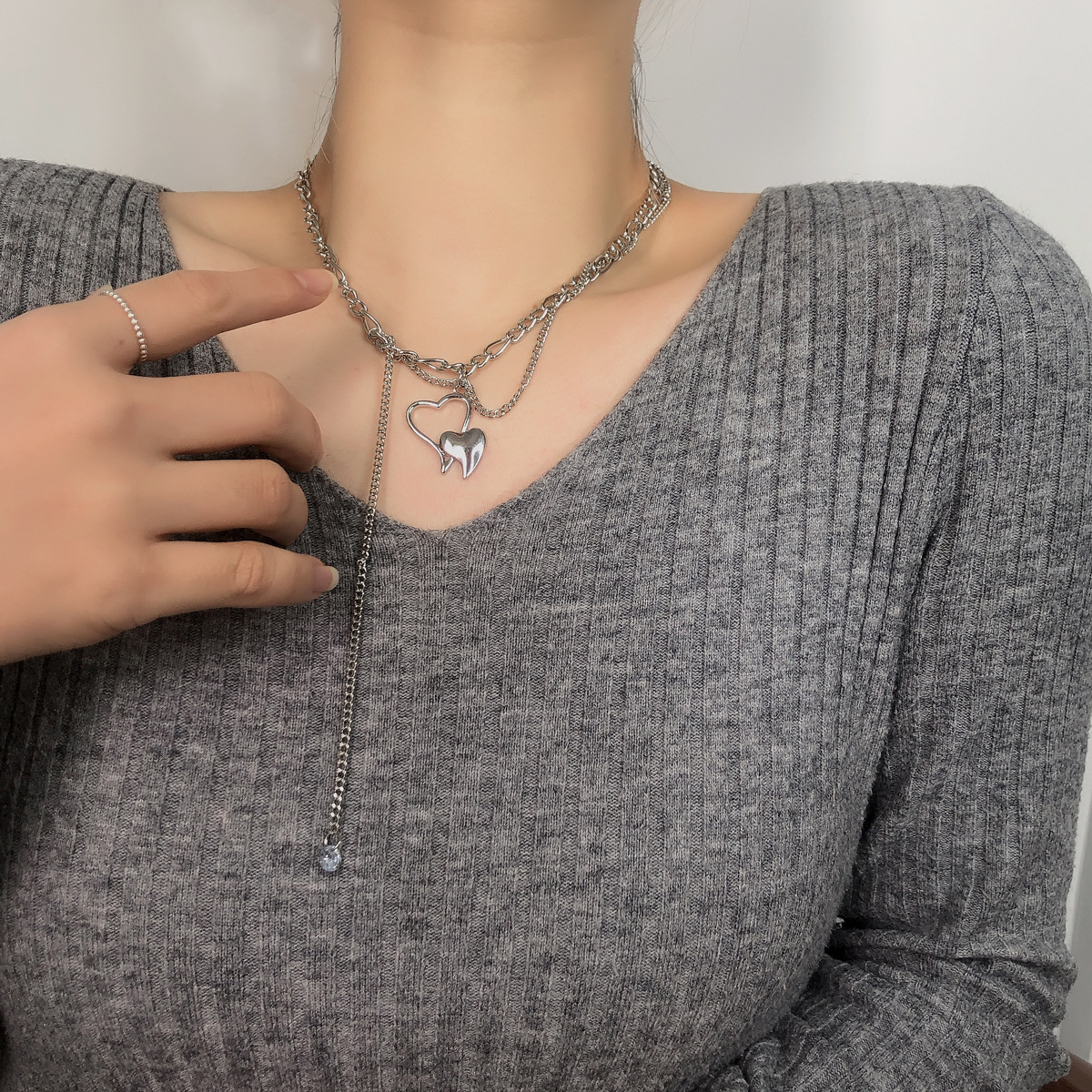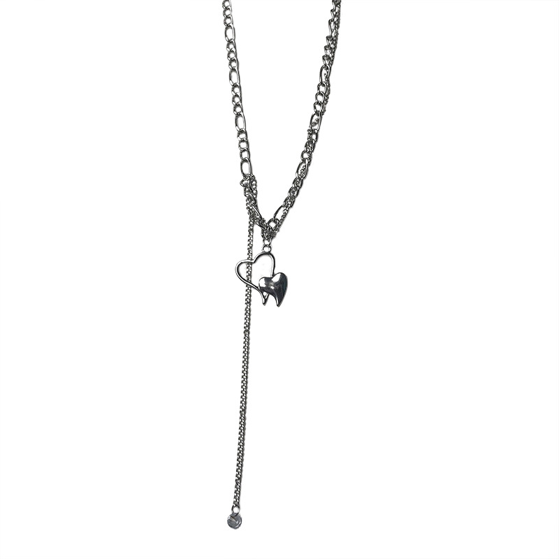 韩版双层爱心项链女ins嘻哈酷帅个性百搭锁骨链子配饰短款毛衣链