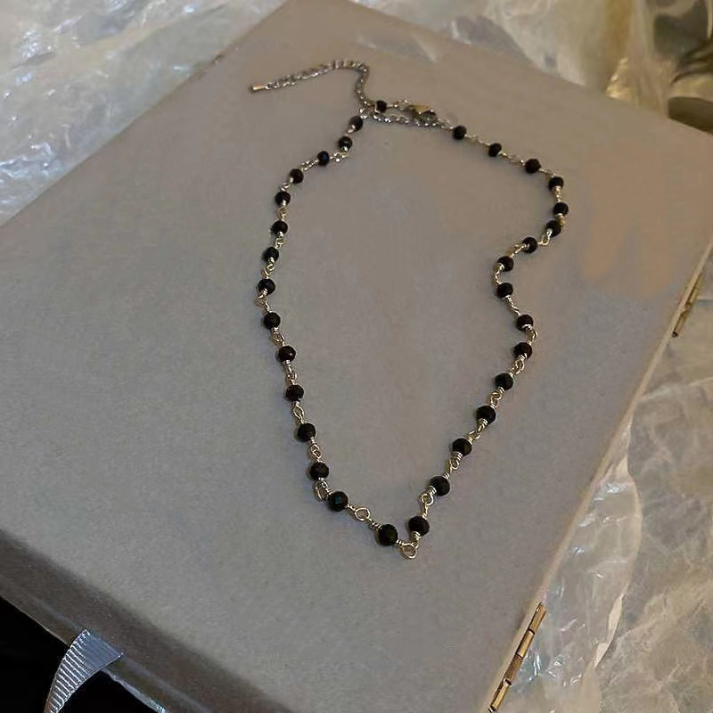 韩国新款戴黑钻链条串珠项链女小众设计甜酷辣妹暗黑风锁骨链潮