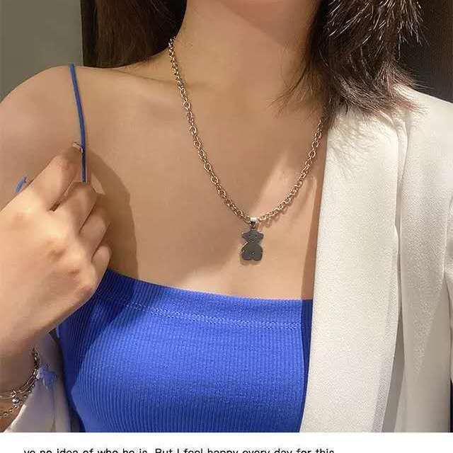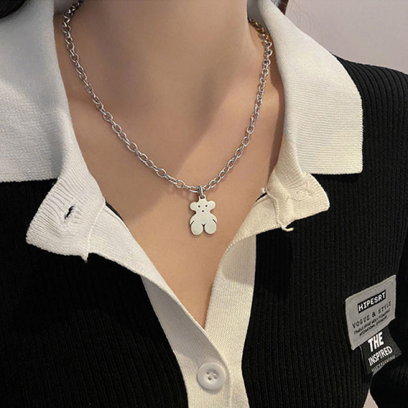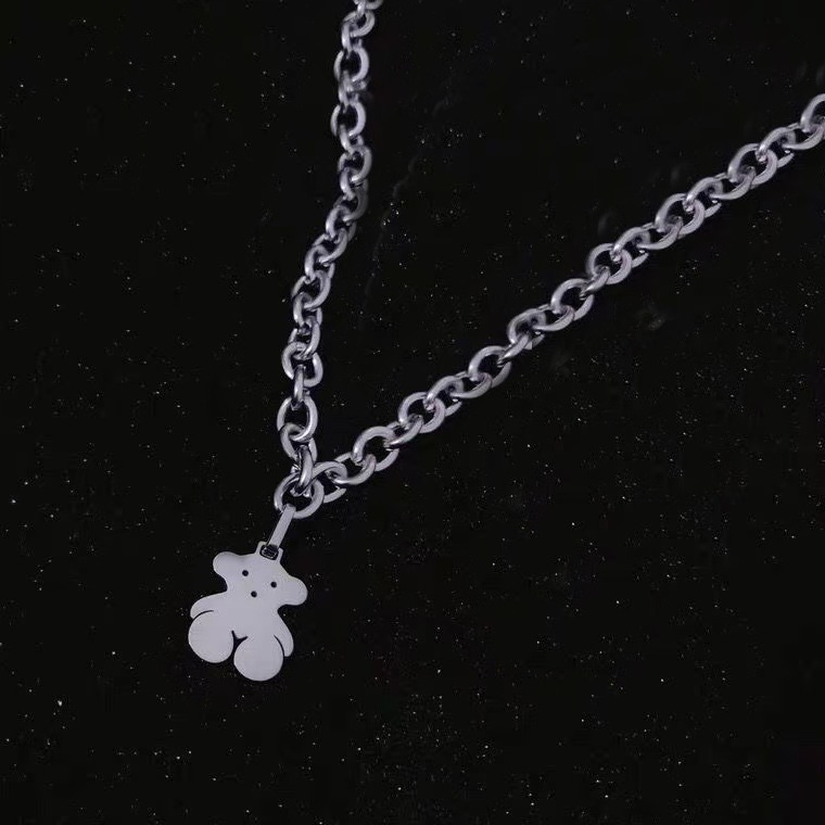 韩国ins嘻哈不锈钢粗链小熊吊坠项链土酷少女蹦迪学生网 红配饰潮