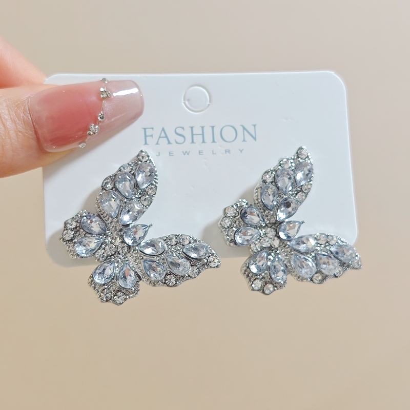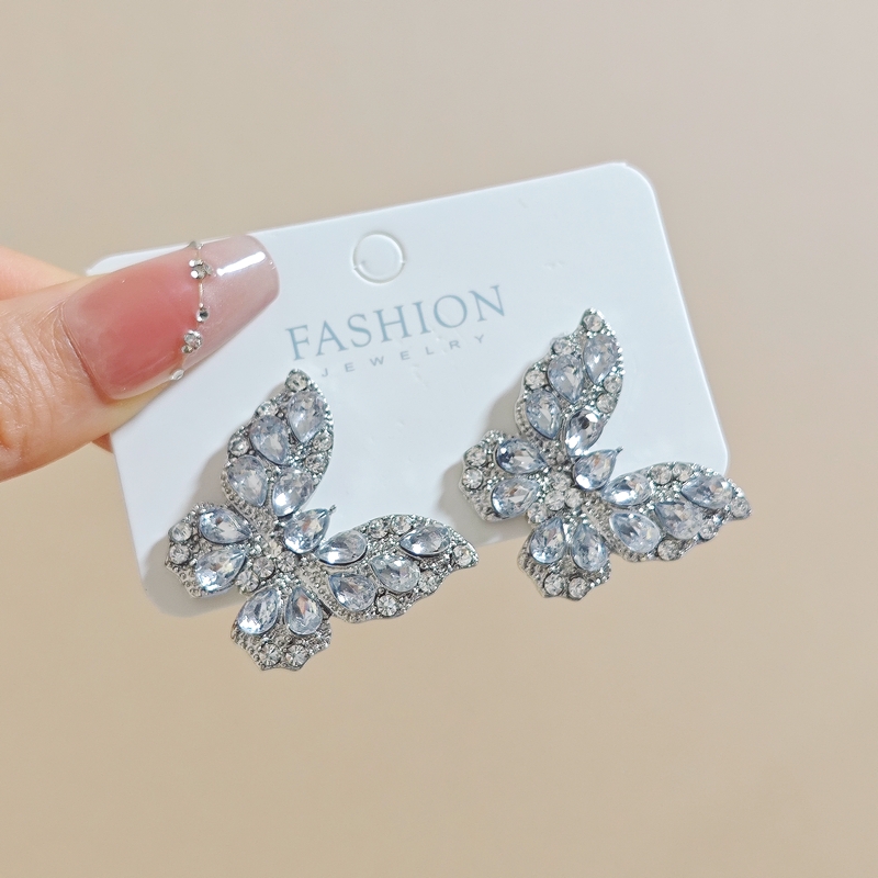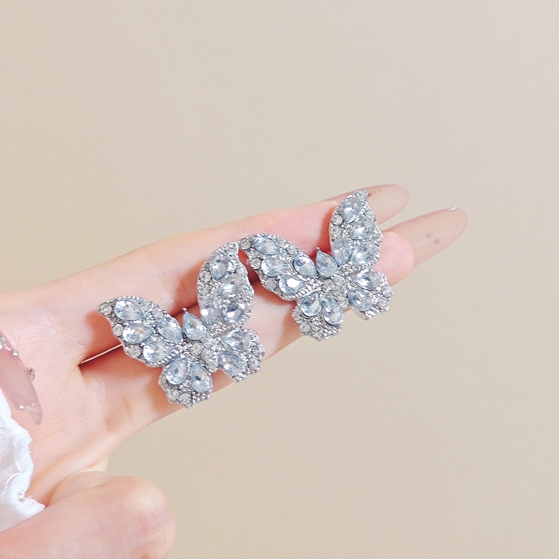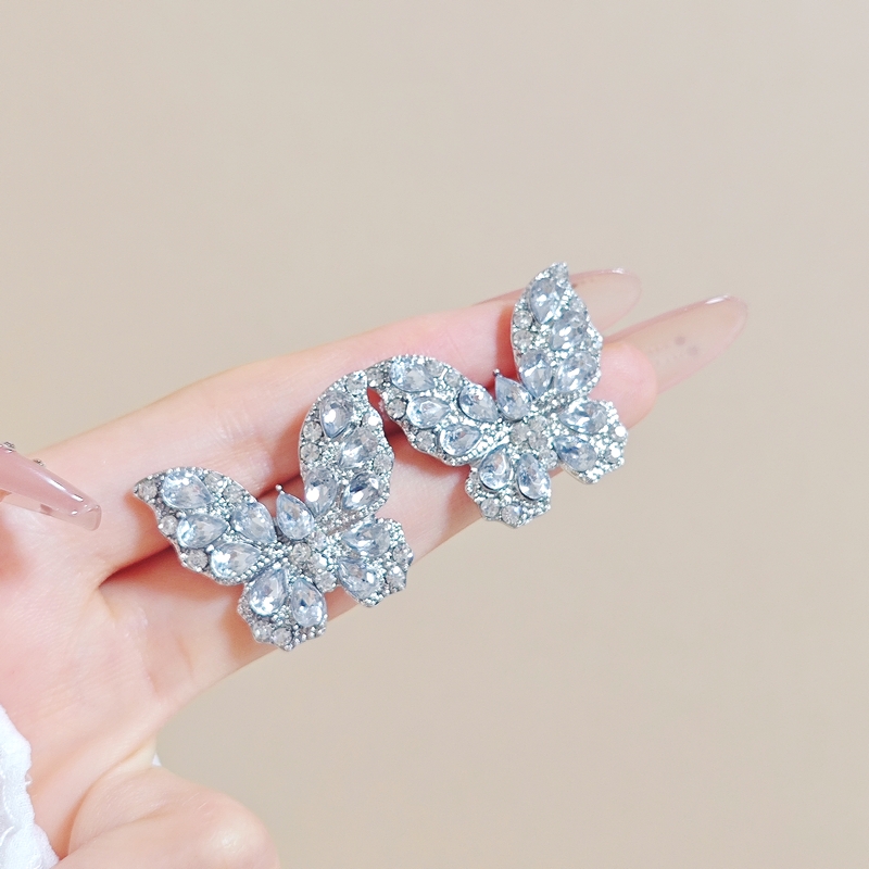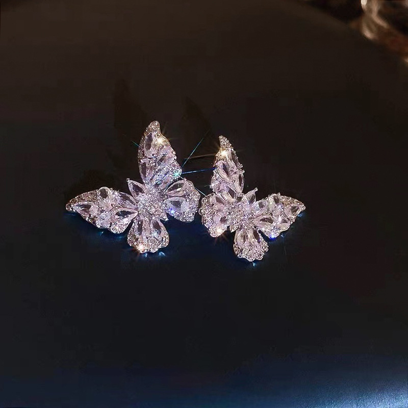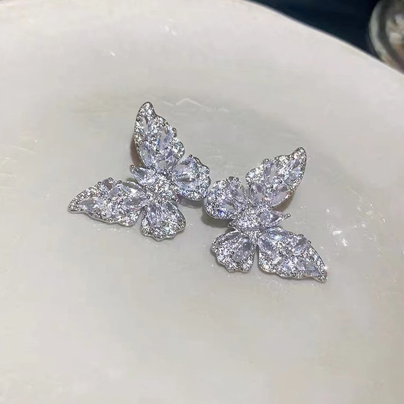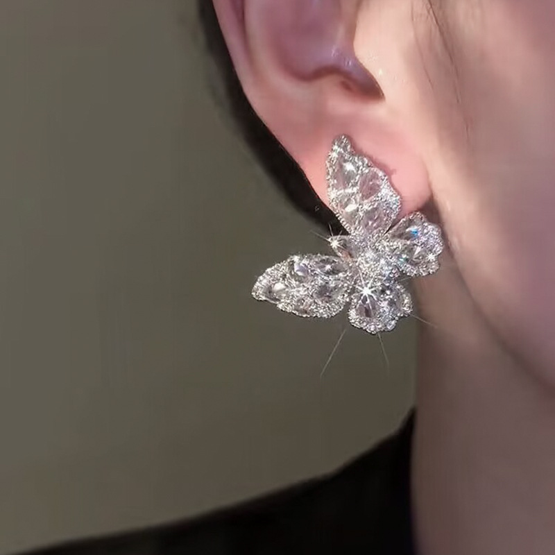 超闪满钻蝴蝶锆石耳钉女时尚气质2024新款爆款小众设计高级感耳环