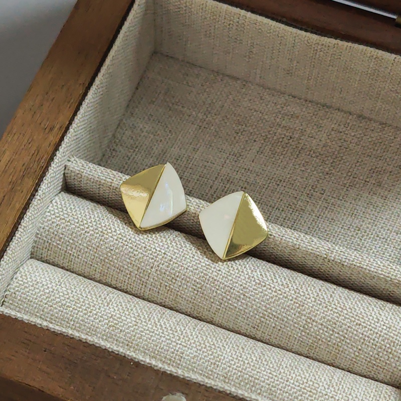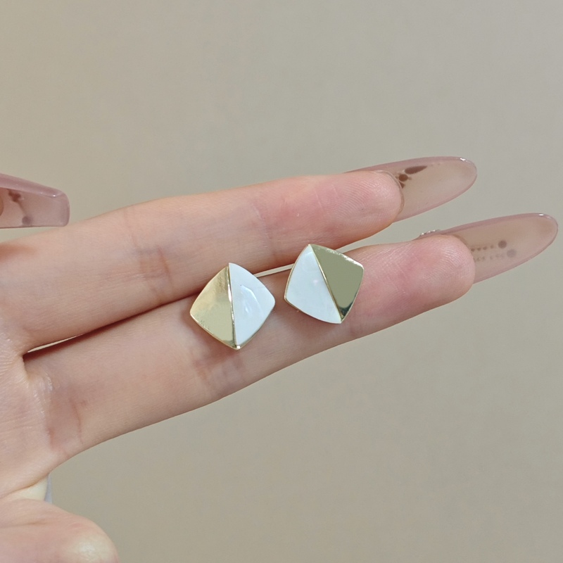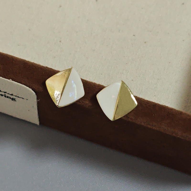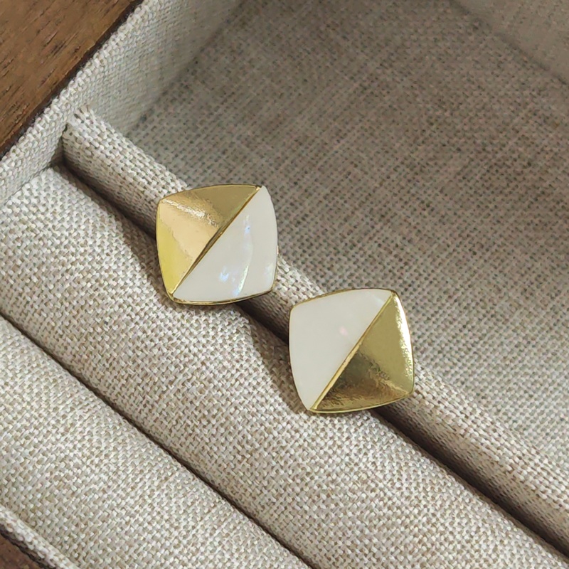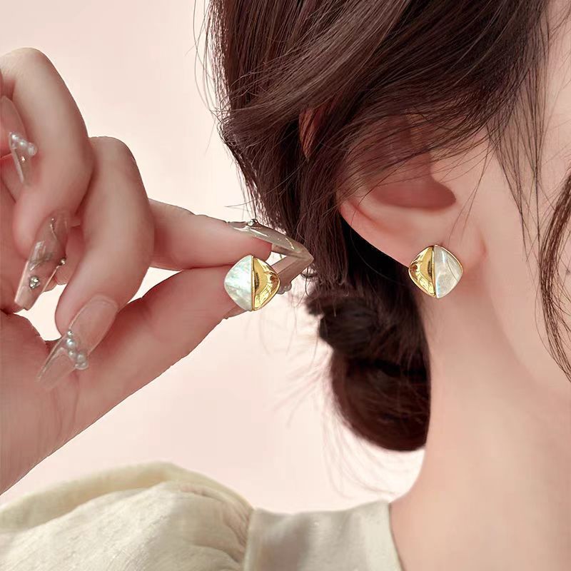 韩国轻奢小众金属感贝壳拼接耳钉女2024新款潮百搭时尚菱形双拼耳钉