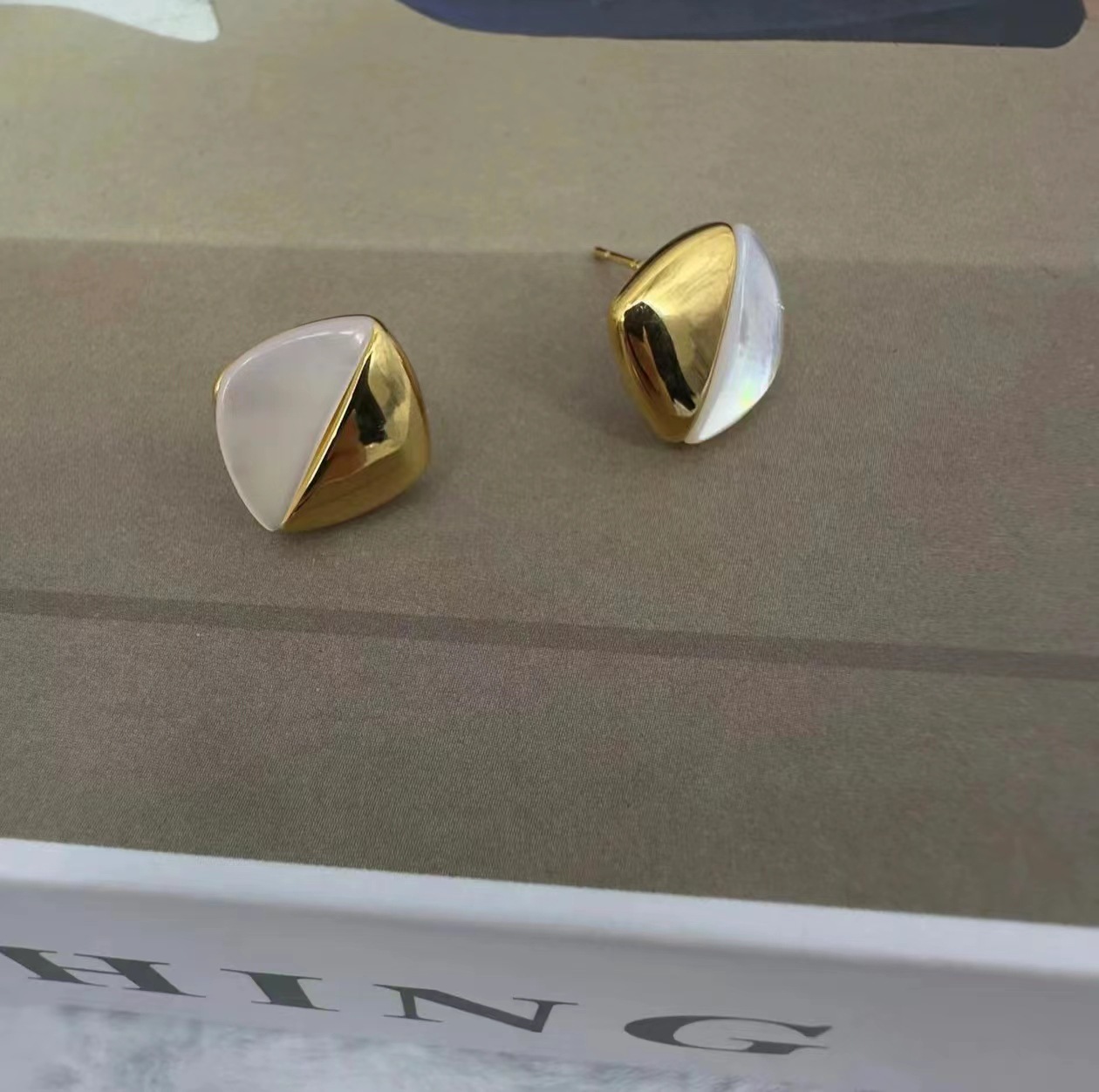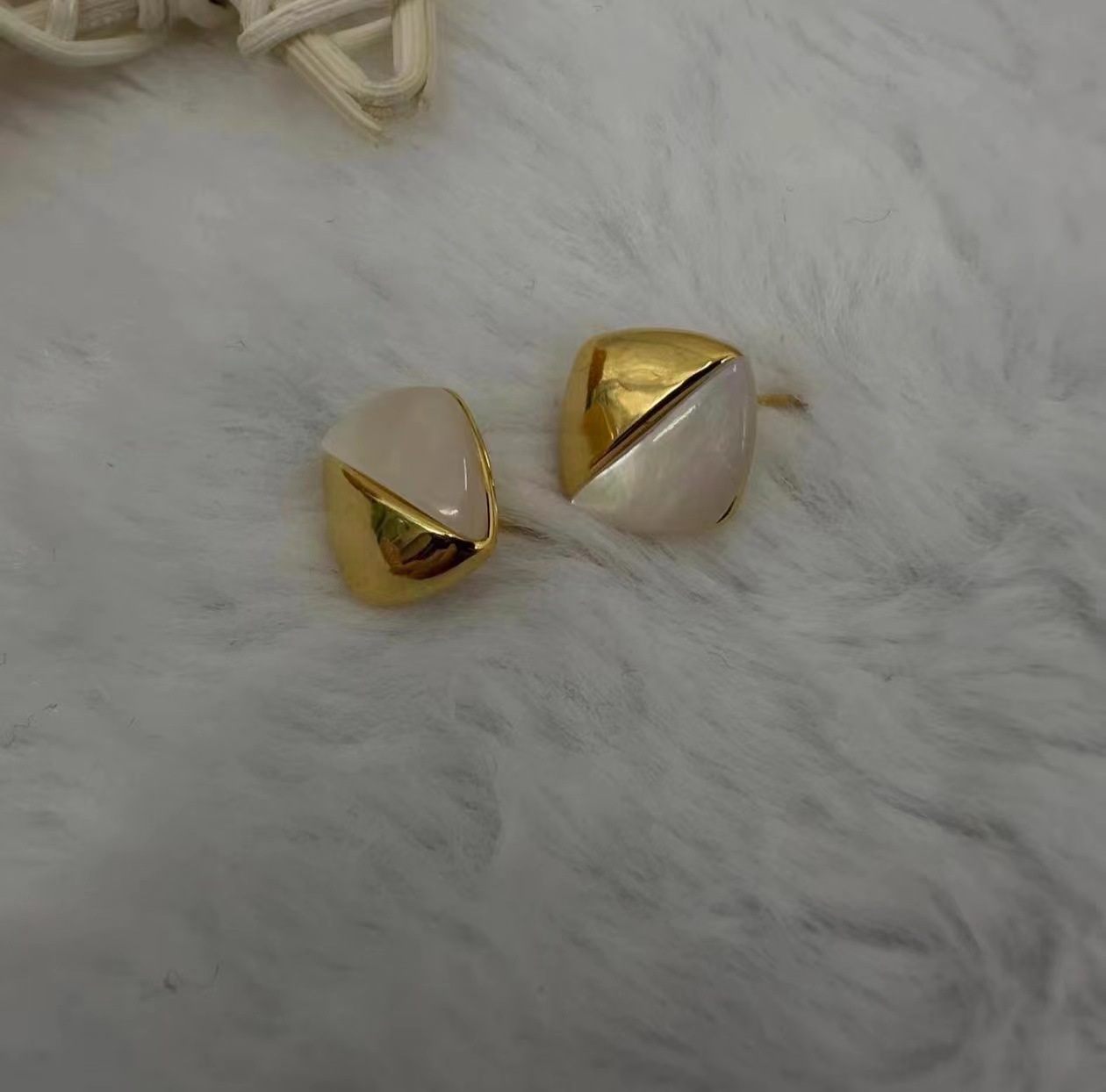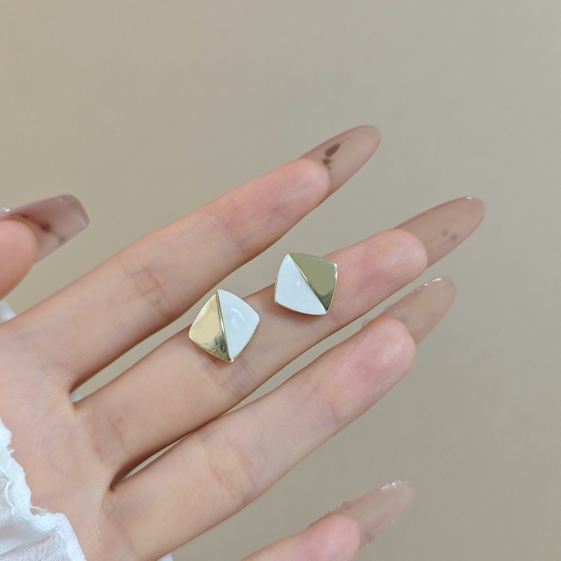 韩国轻奢小众金属感贝壳拼接耳钉女2024新款潮百搭时尚菱形双拼耳钉