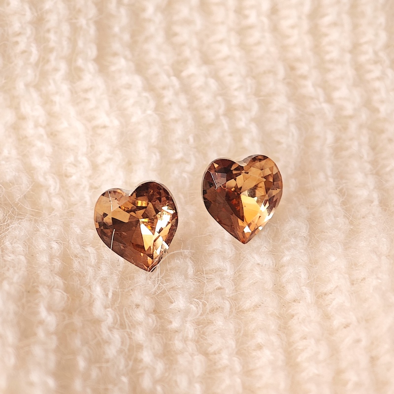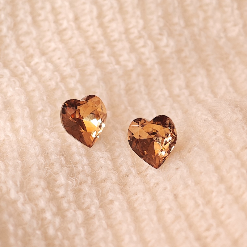 韩国咖色爱心锆石耳钉ins女气质小众个性迷你耳骨钉心形耳饰