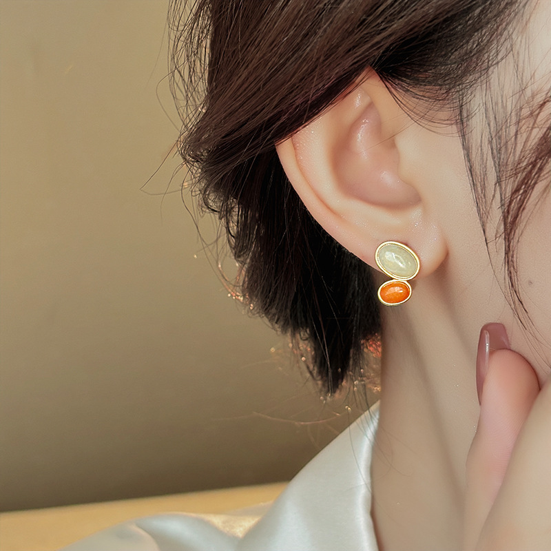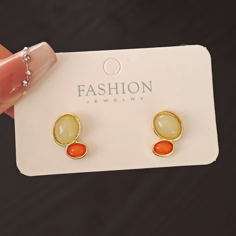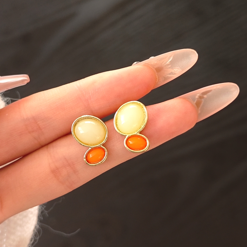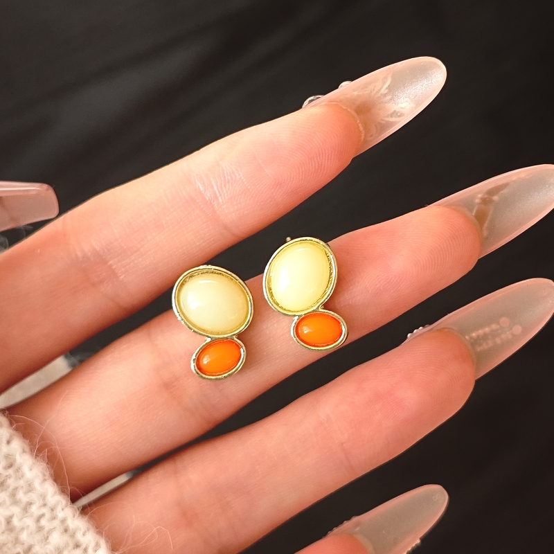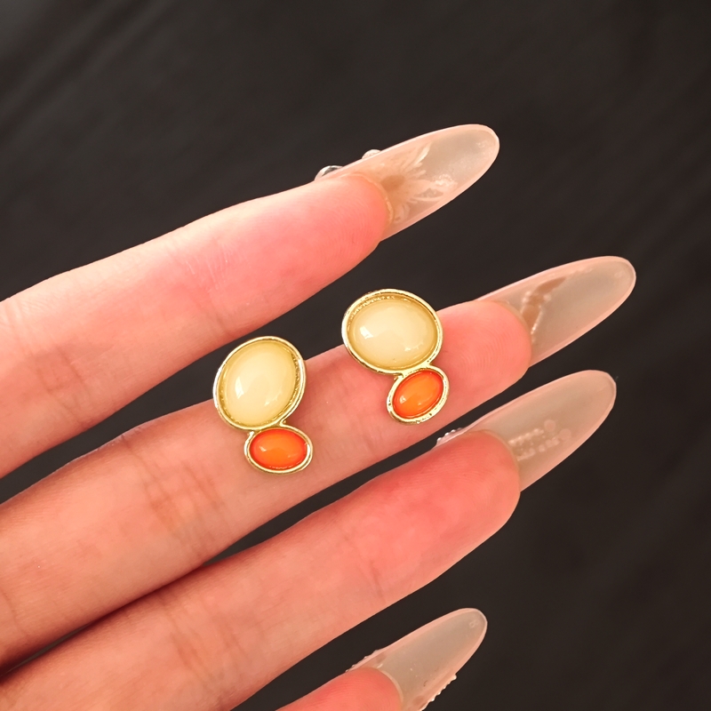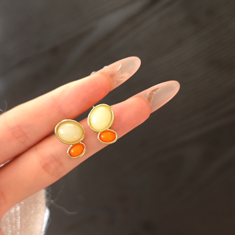 韩国撞色豆豆耳环新款小众复古轻奢高级感耳钉简约气质时尚百搭耳饰品