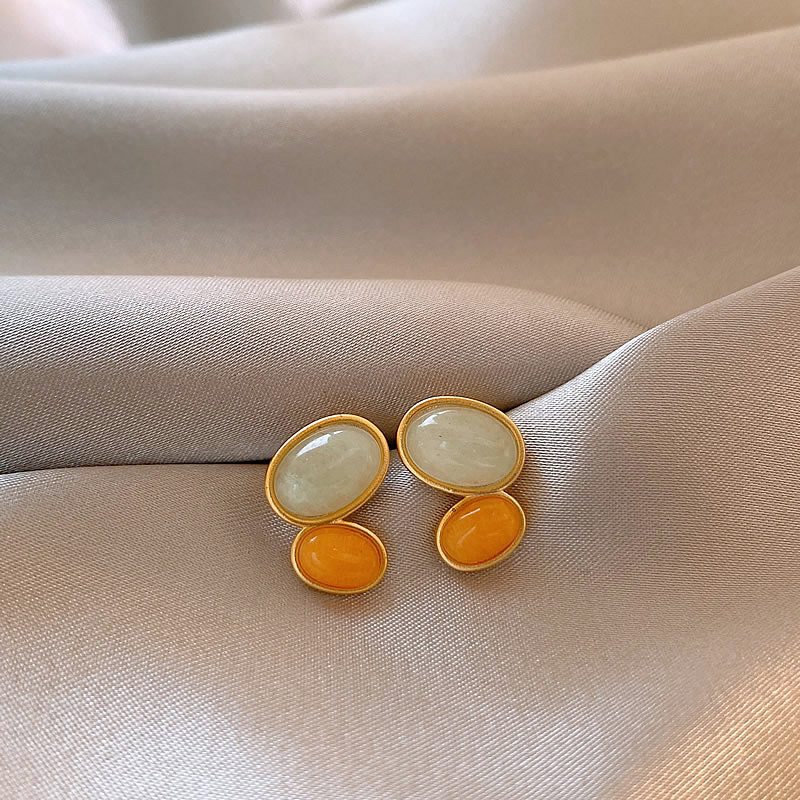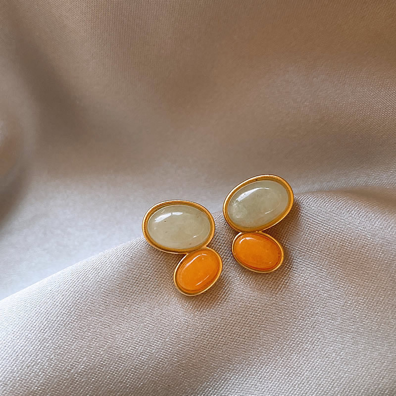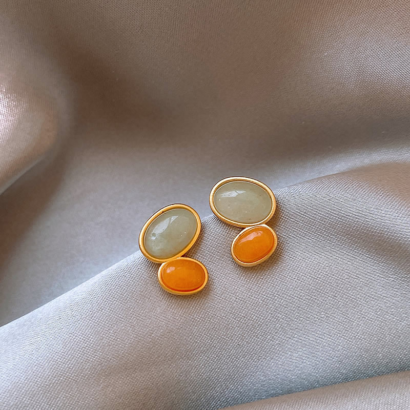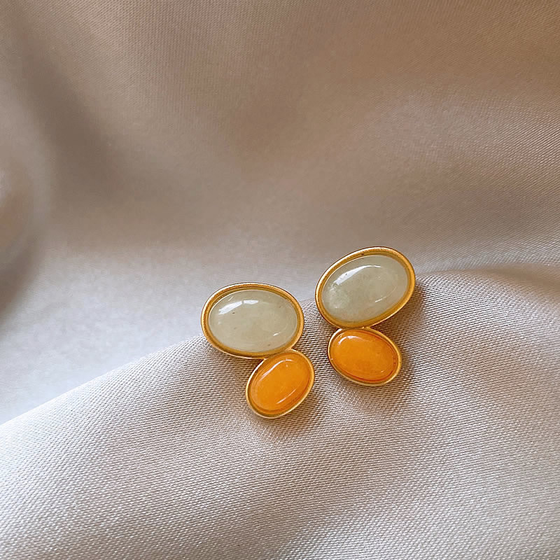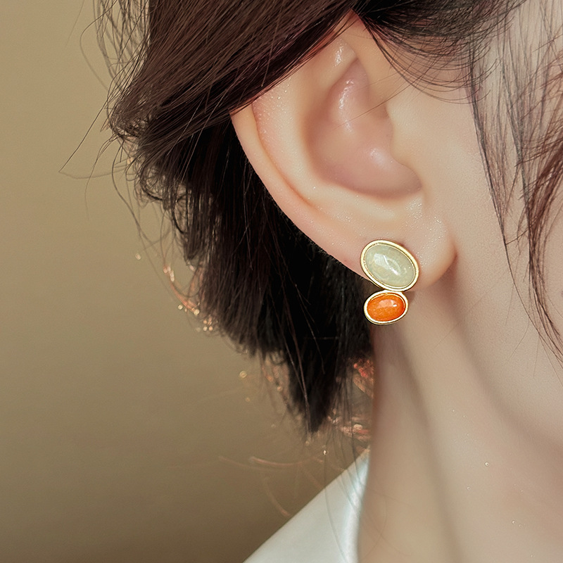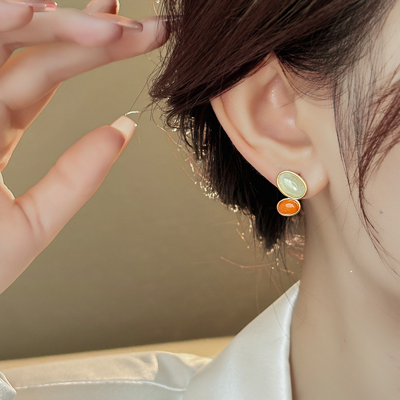 韩国撞色豆豆耳环新款小众复古轻奢高级感耳钉简约气质时尚百搭耳饰品