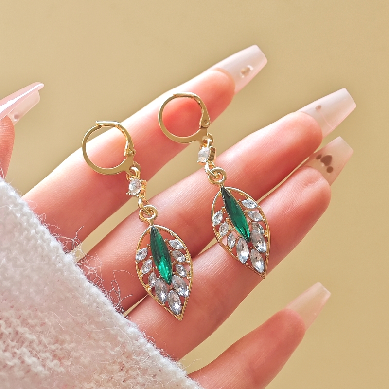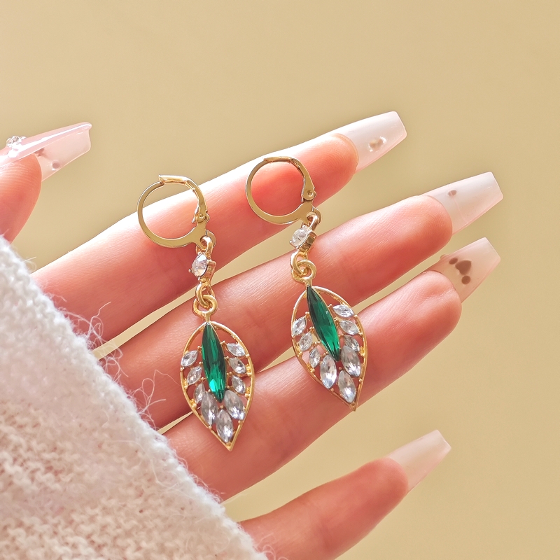 @特价2024闪耀锆石绿色叶子耳环气质女百搭耳扣轻奢高级气质耳饰新款潮