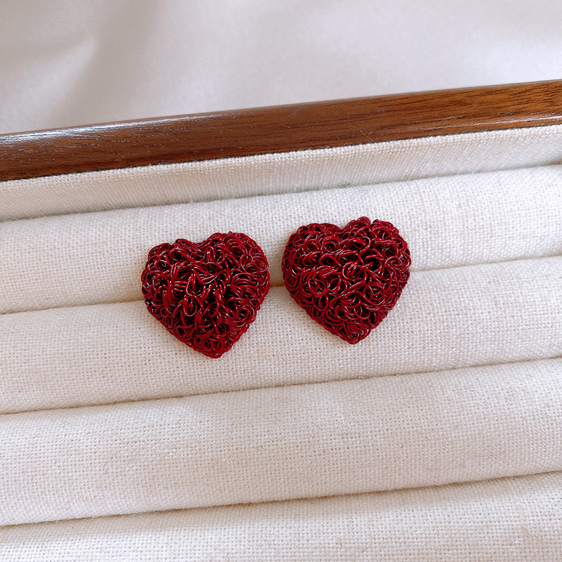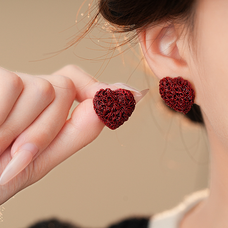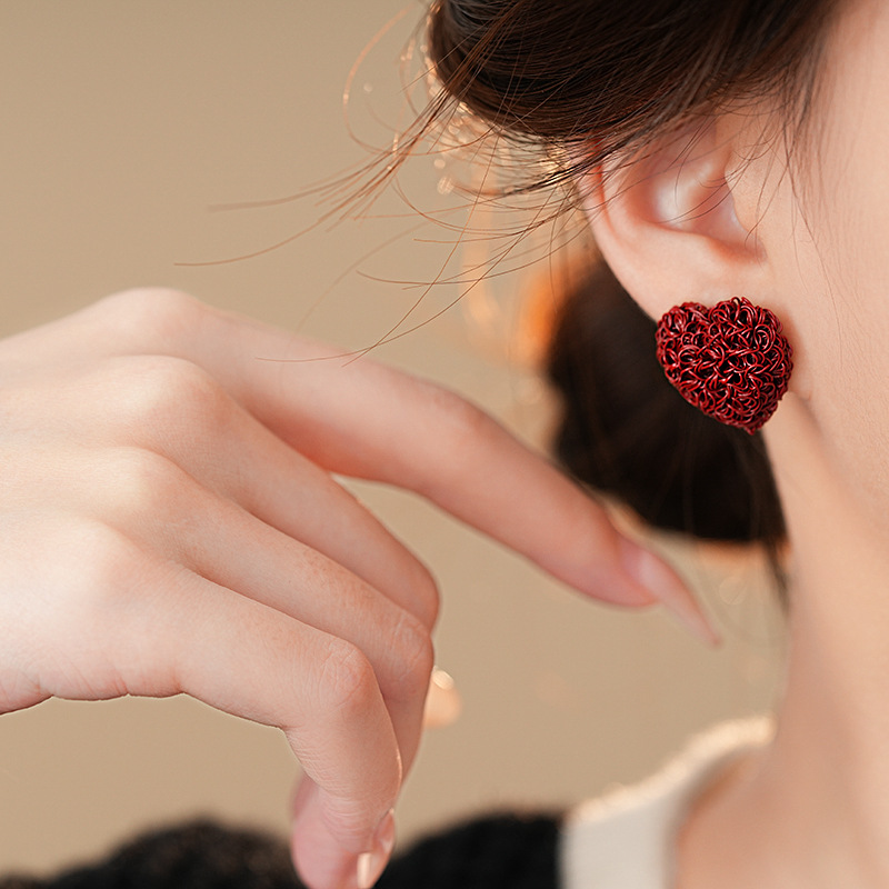 韩国个性缠绕爱心纹路耳钉港风复古高级感耳环轻奢新款耳饰批发女