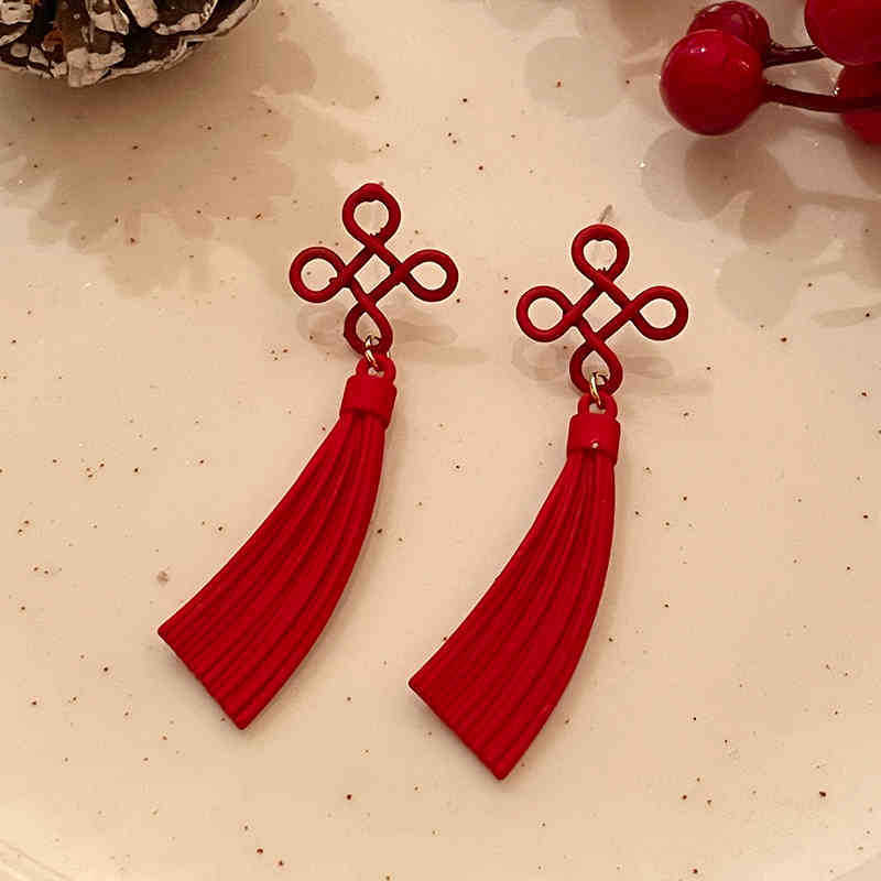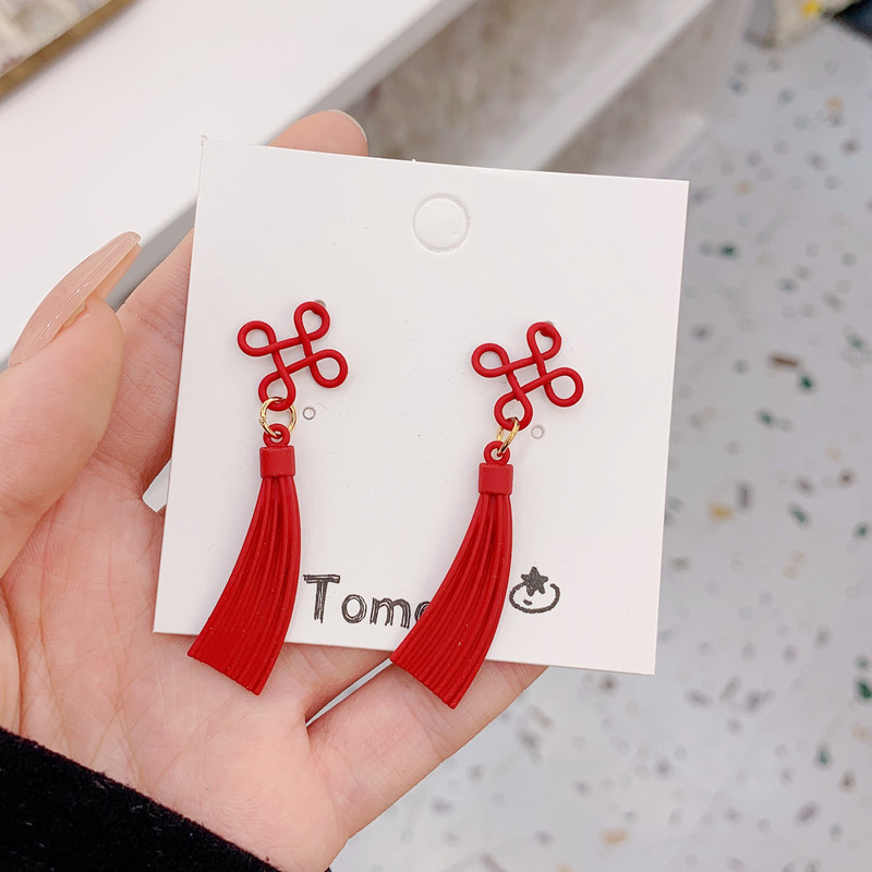 红色中国结耳环新年喜庆时尚长款流苏耳坠过年中国风国潮耳钉女
