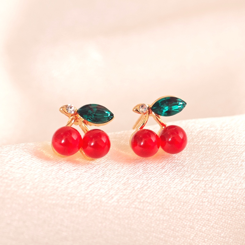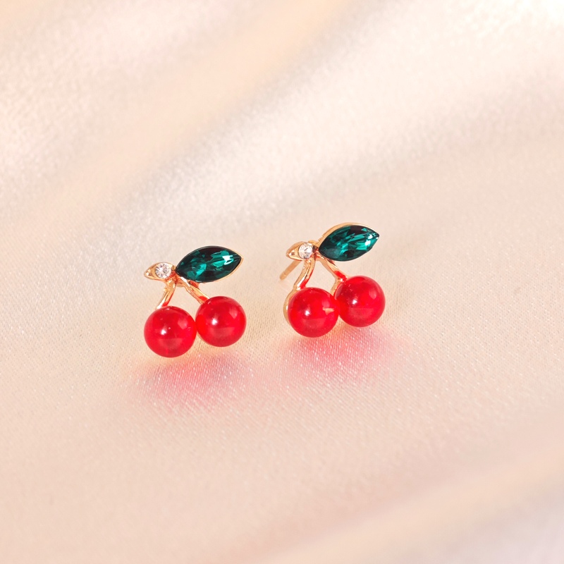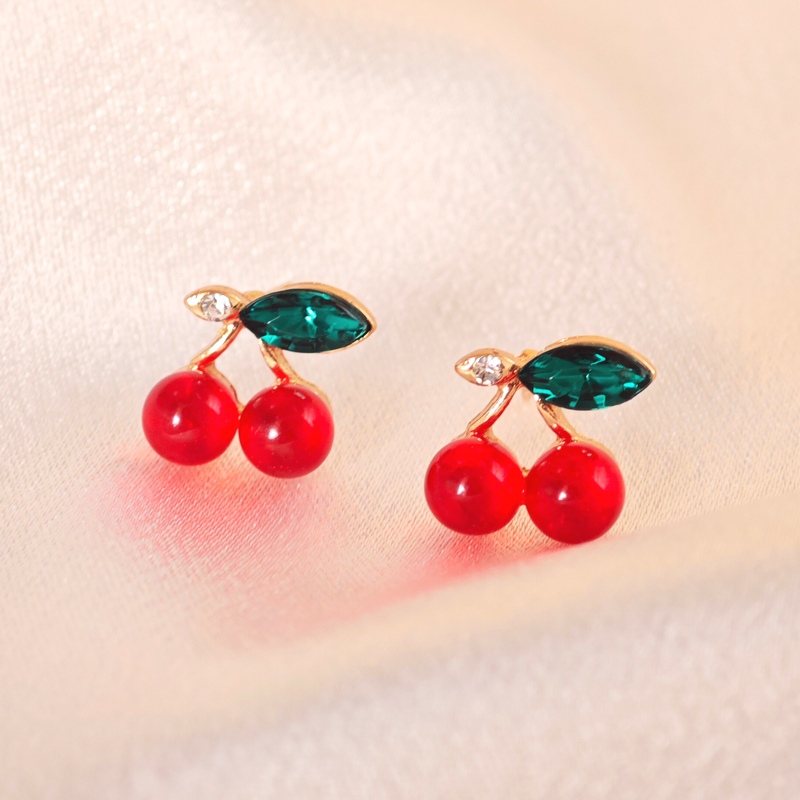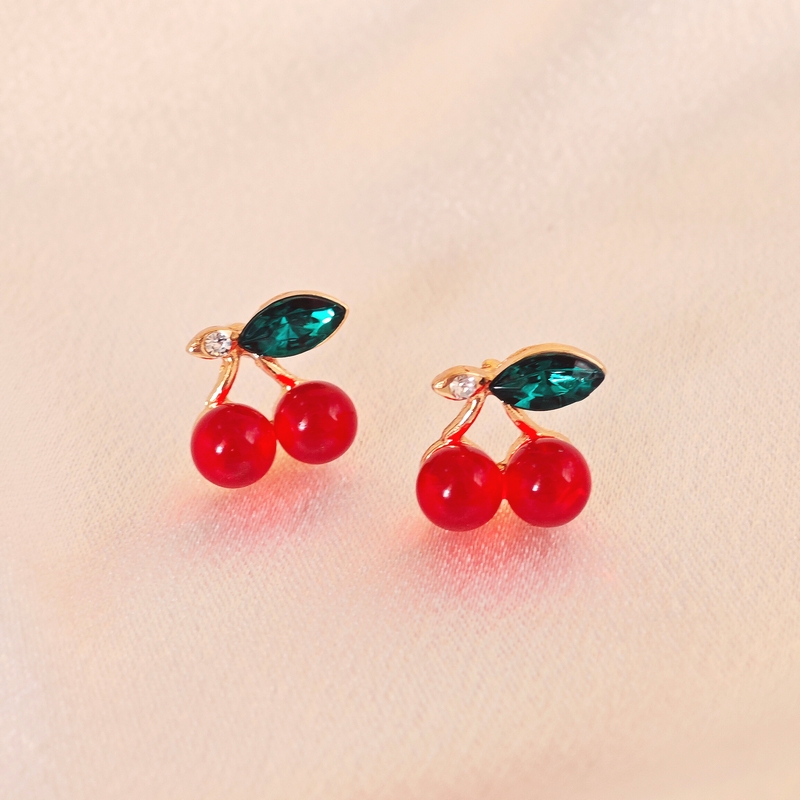 日韩热卖红色的樱桃耳环水果夏季多多巴胺四季百搭时尚高级感耳环