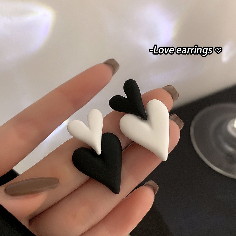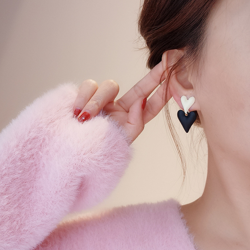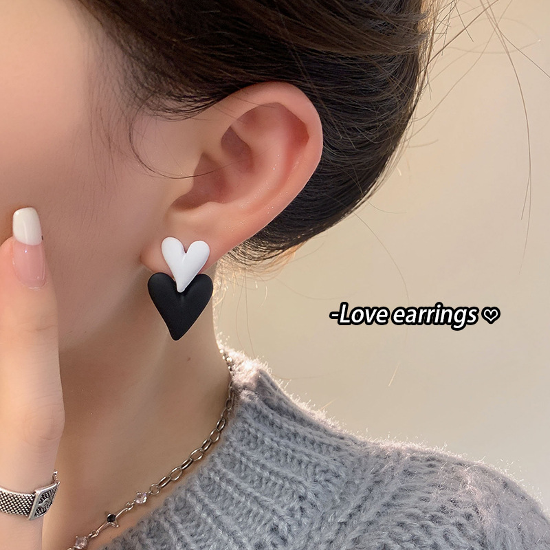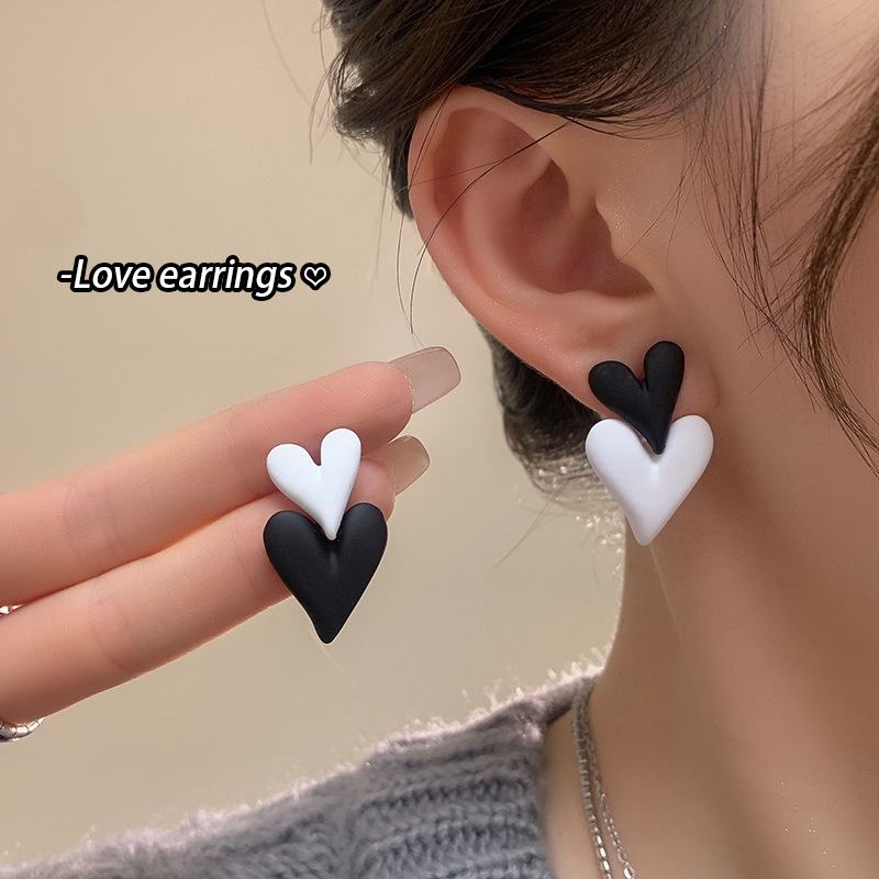 黑白拼色耳钉女时尚气质辣妹耳环气质轻奢高级感甜酷耳饰 秋冬耳坠