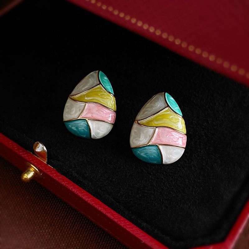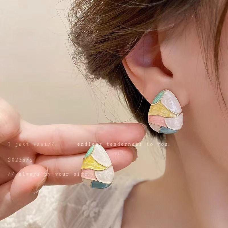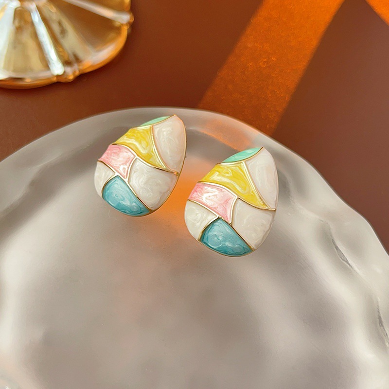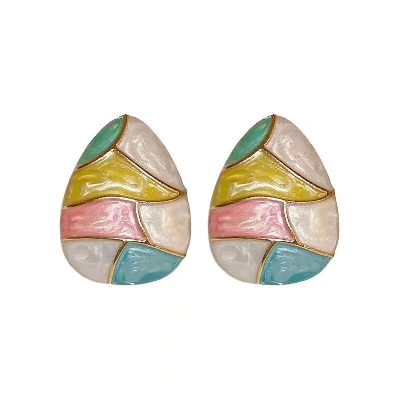 白百合同款个性撞色油画风耳钉复古港风耳环简约几何耳饰