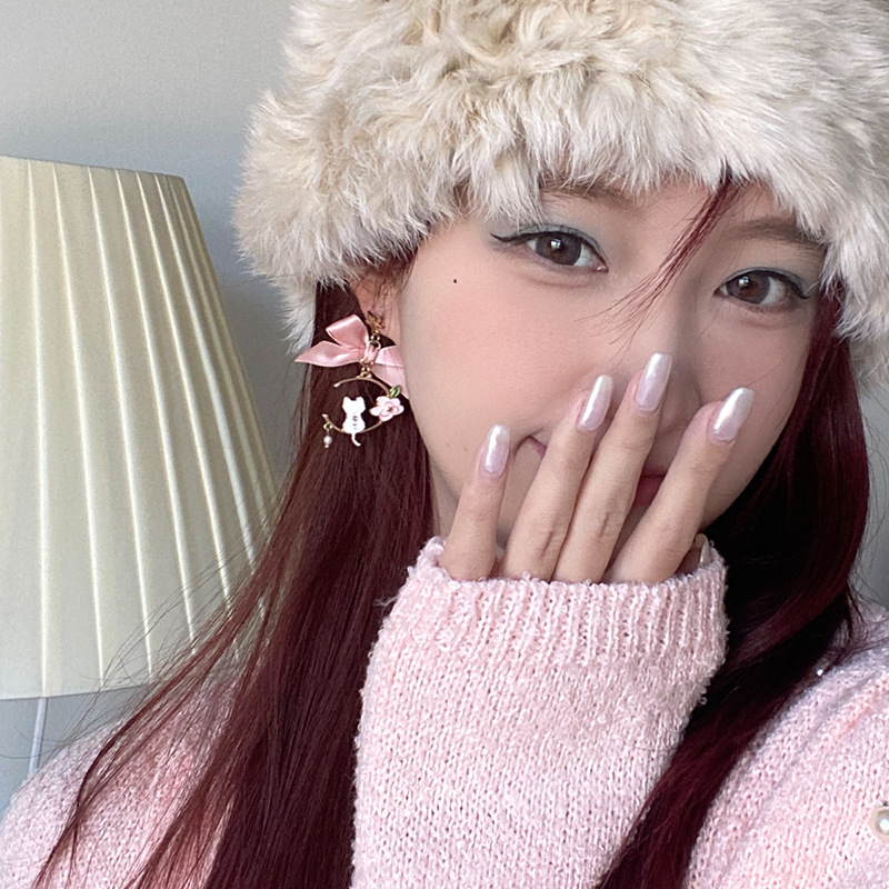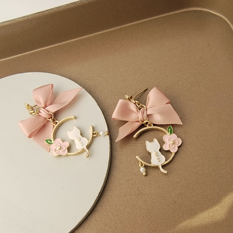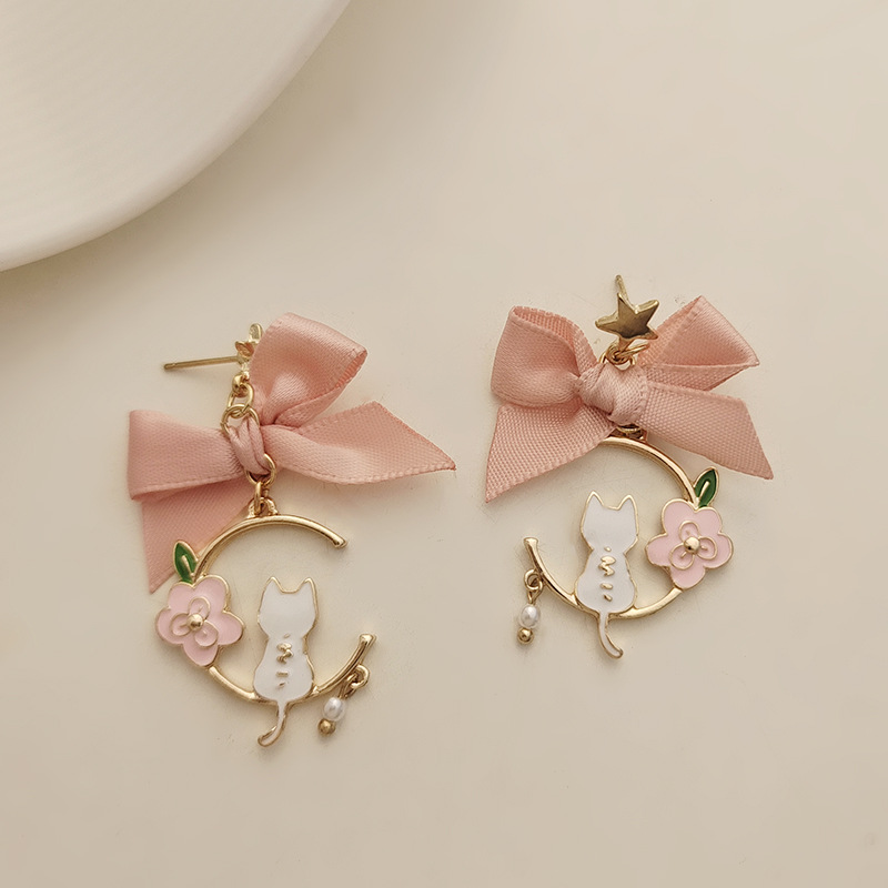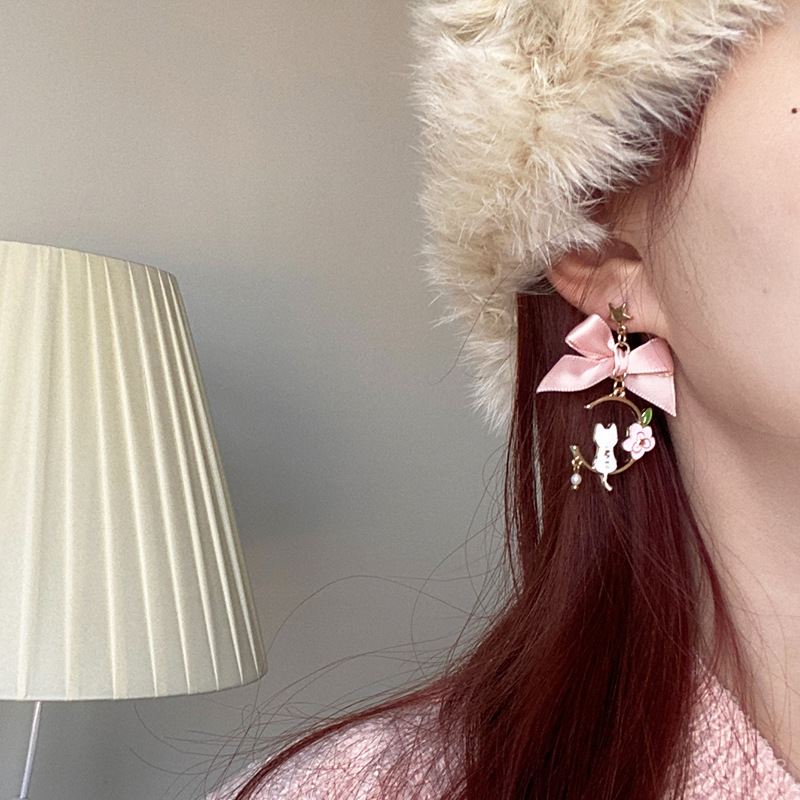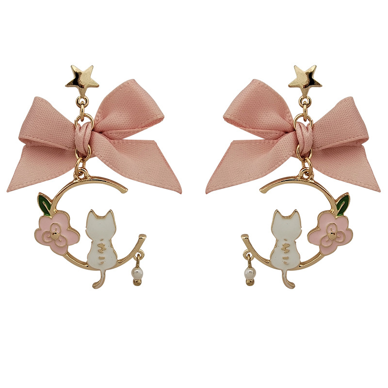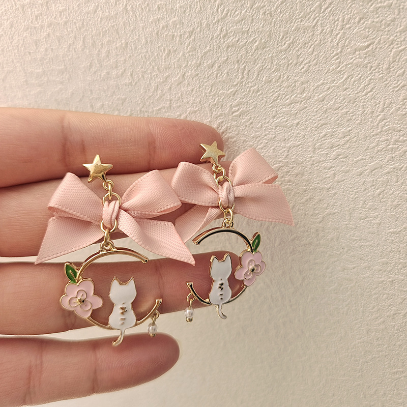 日韩新款创意蝴蝶结耳钉滴油仿珍珠星星花朵小猫耳钉耳环