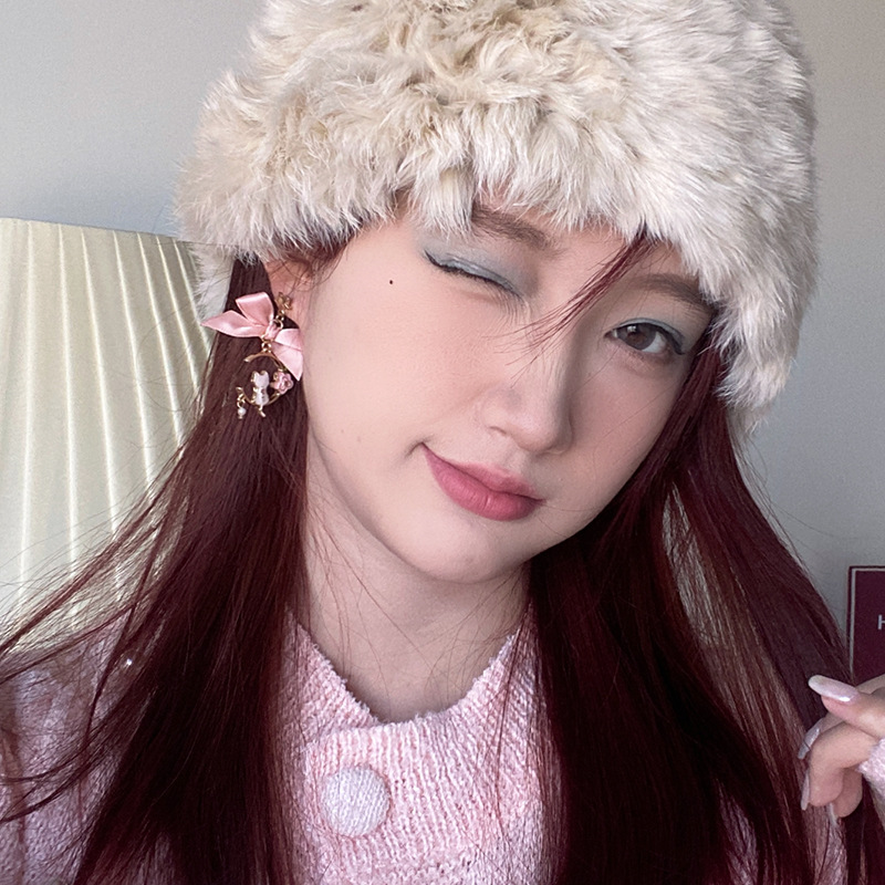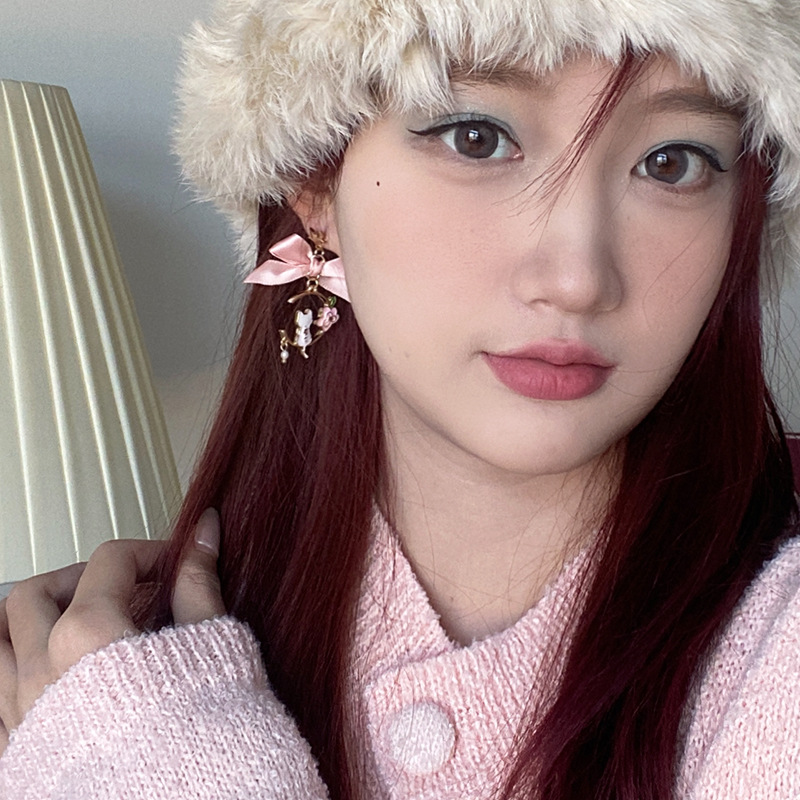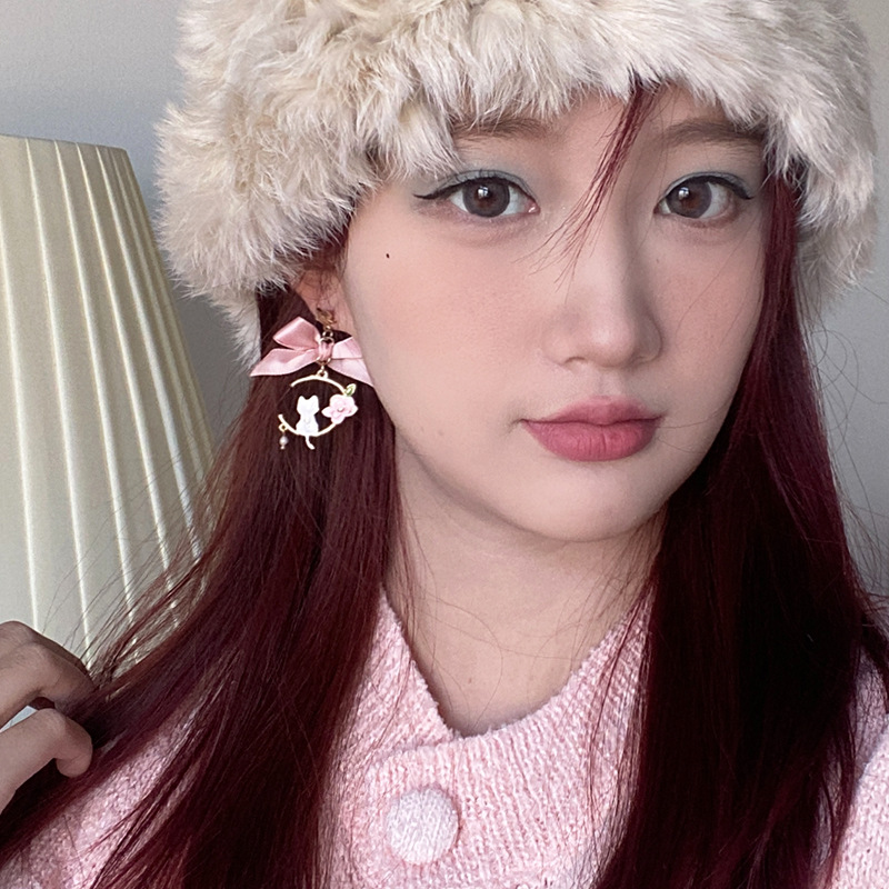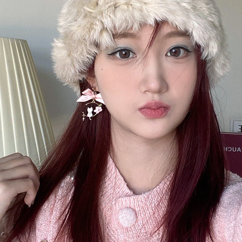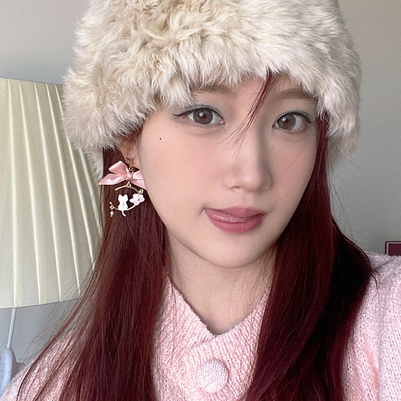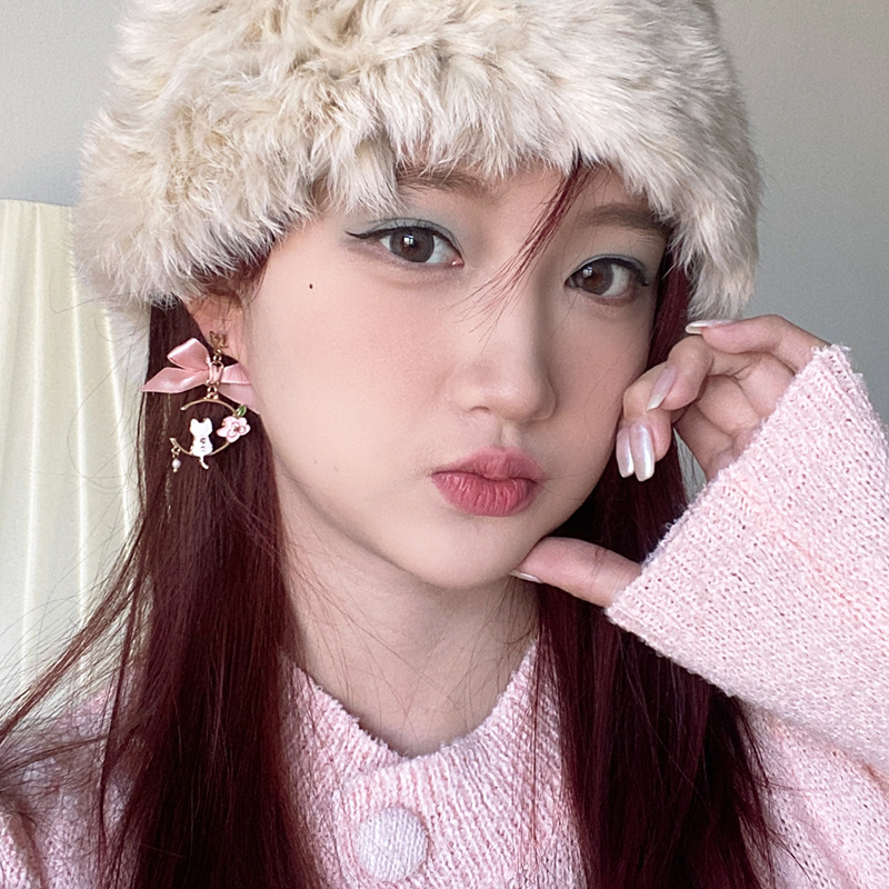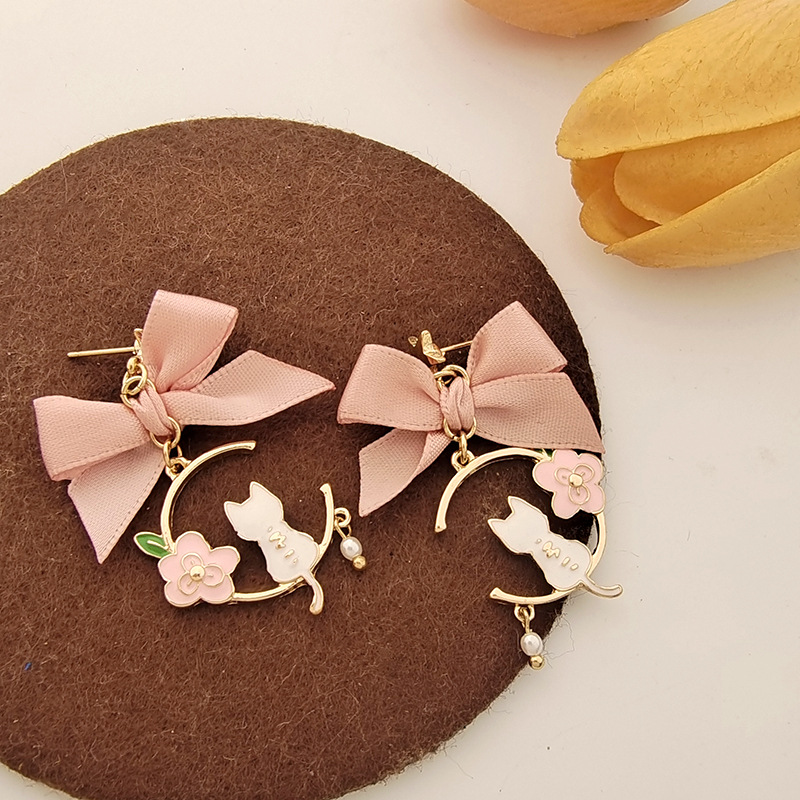 日韩新款创意蝴蝶结耳钉滴油仿珍珠星星花朵小猫耳钉耳环