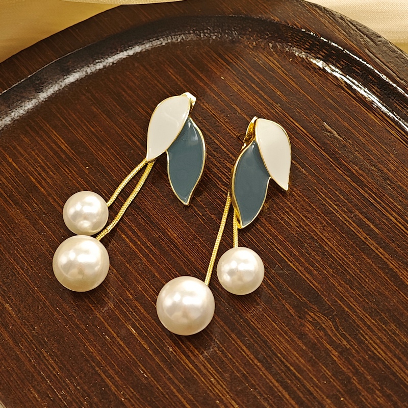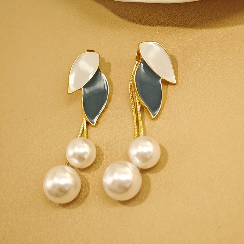 珍珠叶子流苏耳环小众设计感气质轻奢树叶耳钉蚊香盘无耳洞耳夹女