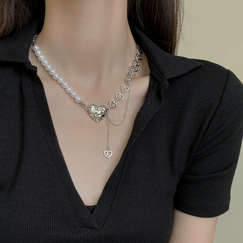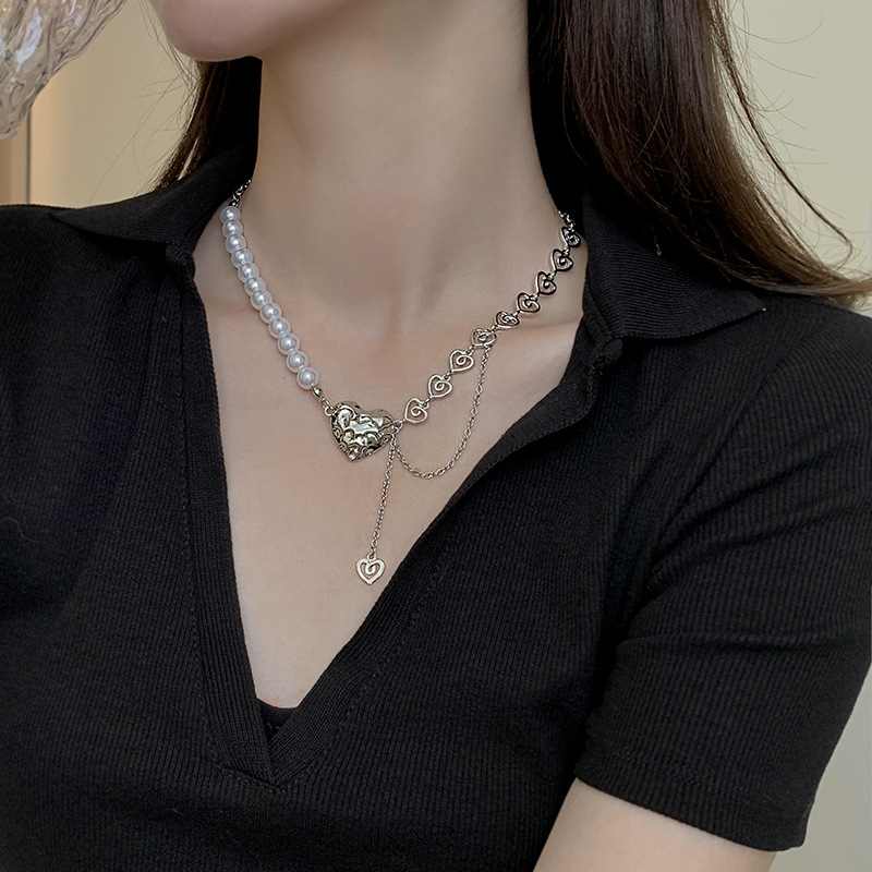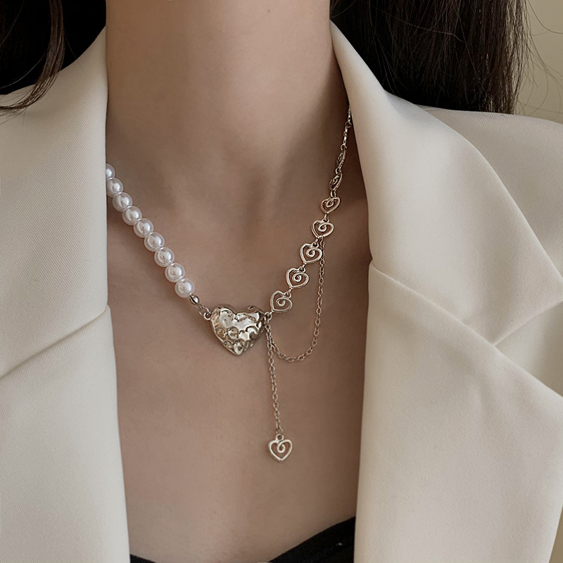 韩国新款小众设计感拼接珍珠项链ins风爱心吊坠锁骨链2025新款潮