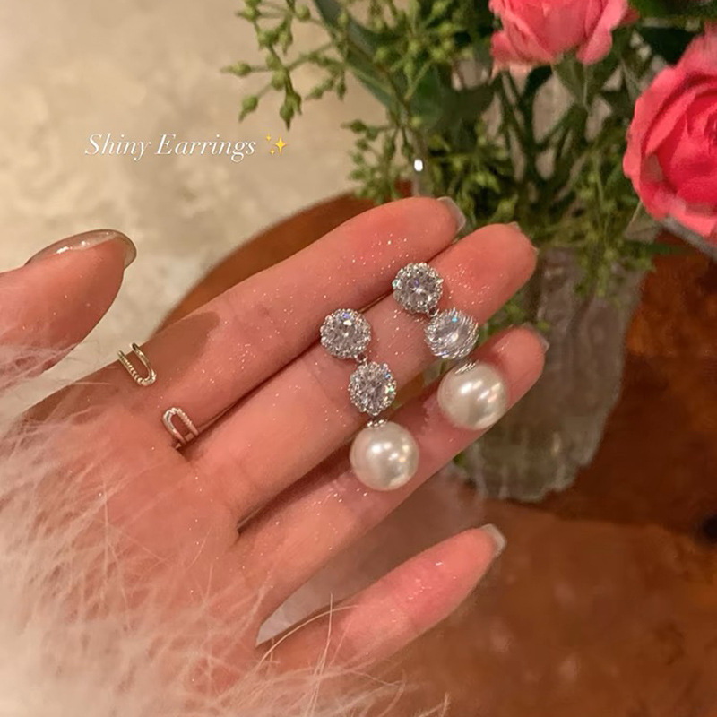 轻奢小众设计镶钻珍珠耳钉女复古法式锆石耳钉通勤时尚清百搭耳饰