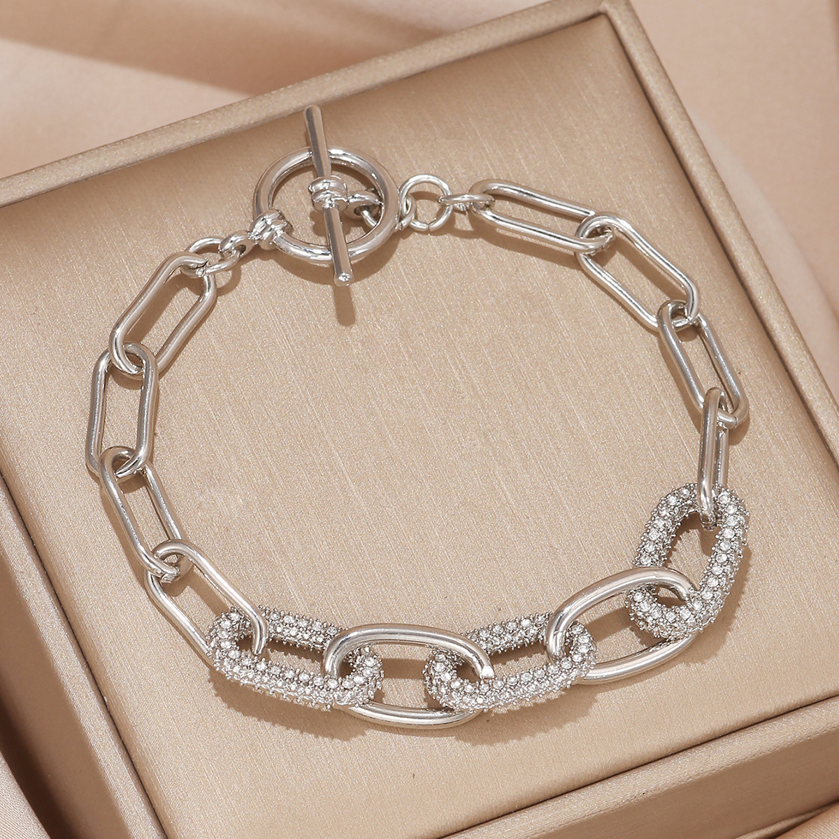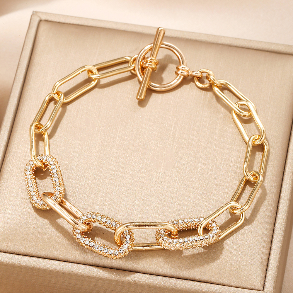 跨境简约时尚环保金属合金镶钻椭圆手链男女日常手链首饰配饰