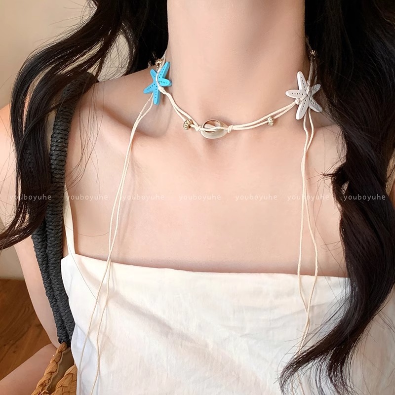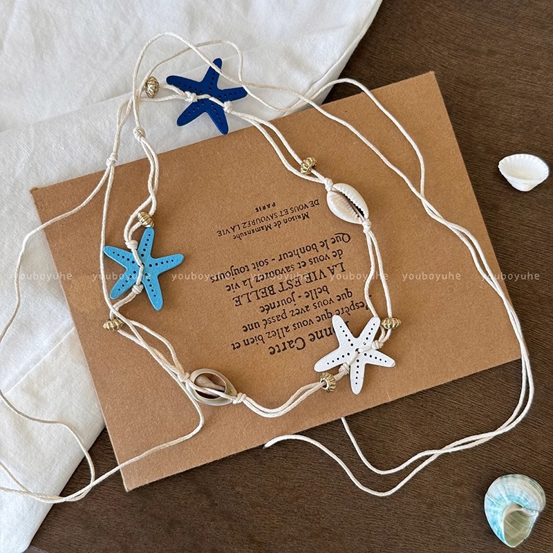 一款多用~ 撞色海星贝壳项链女夏日海边度假风多巴胺细腰配饰腰链