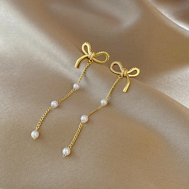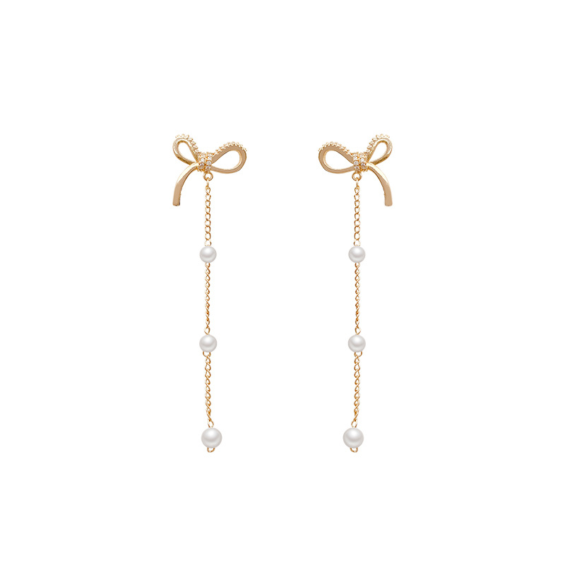 韩国东大门长款流苏耳钉女时尚气质高级感珍珠超仙蝴蝶结耳环耳饰