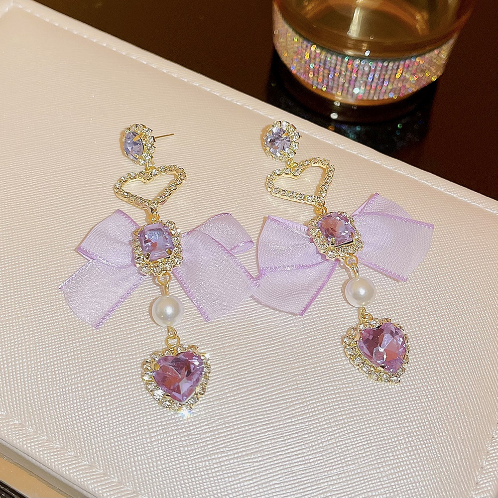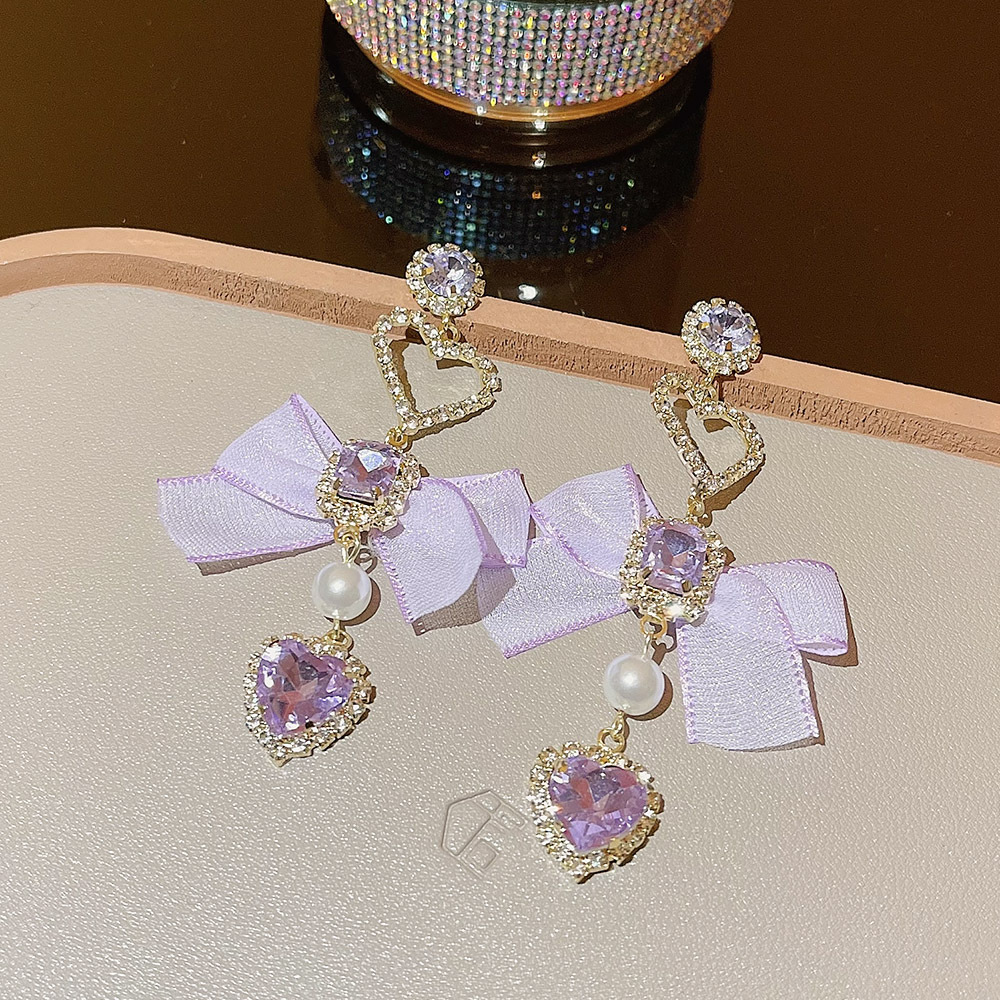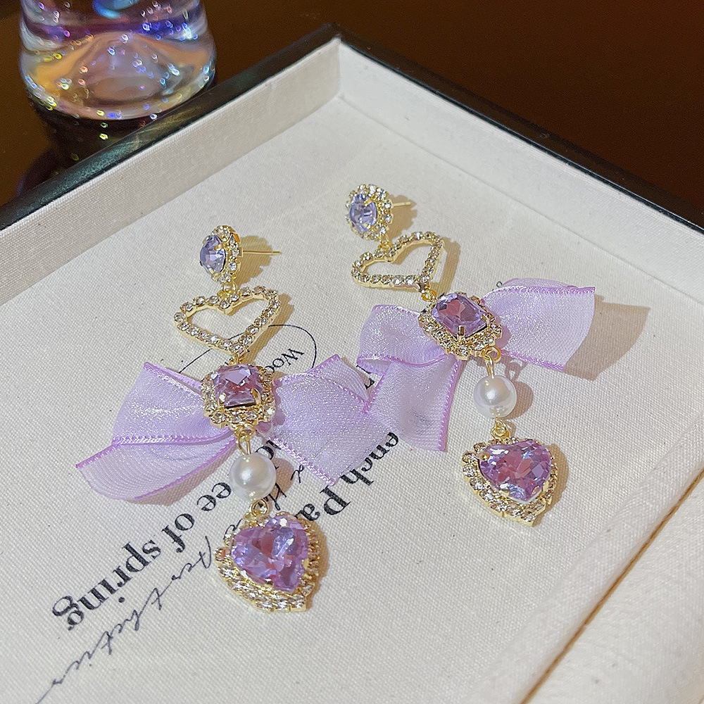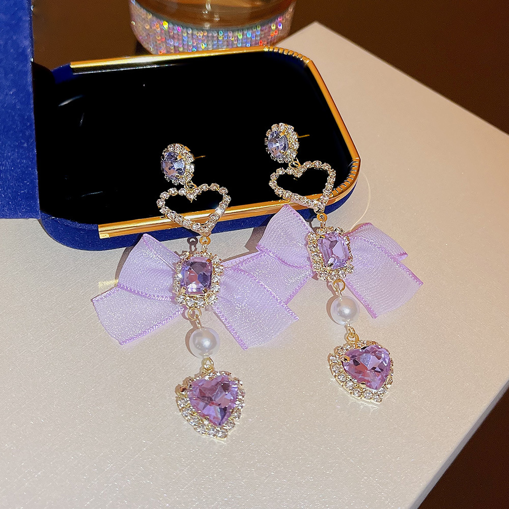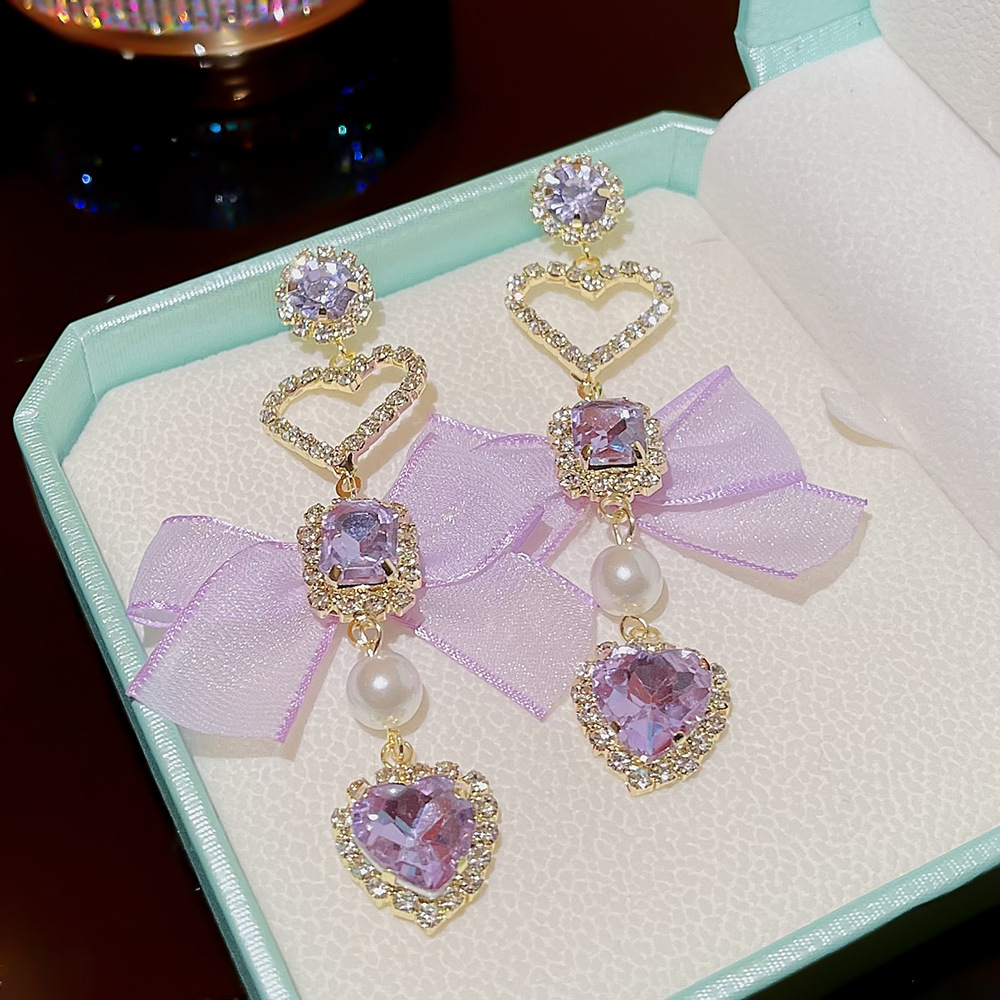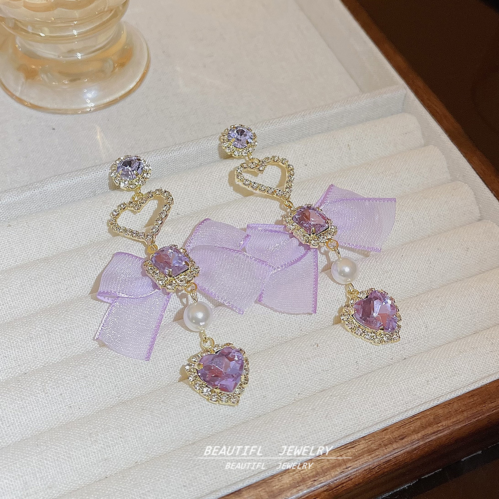 韩版长款精致爱心蝴蝶结流苏耳环夜店名媛风气质轻奢设计感耳饰女