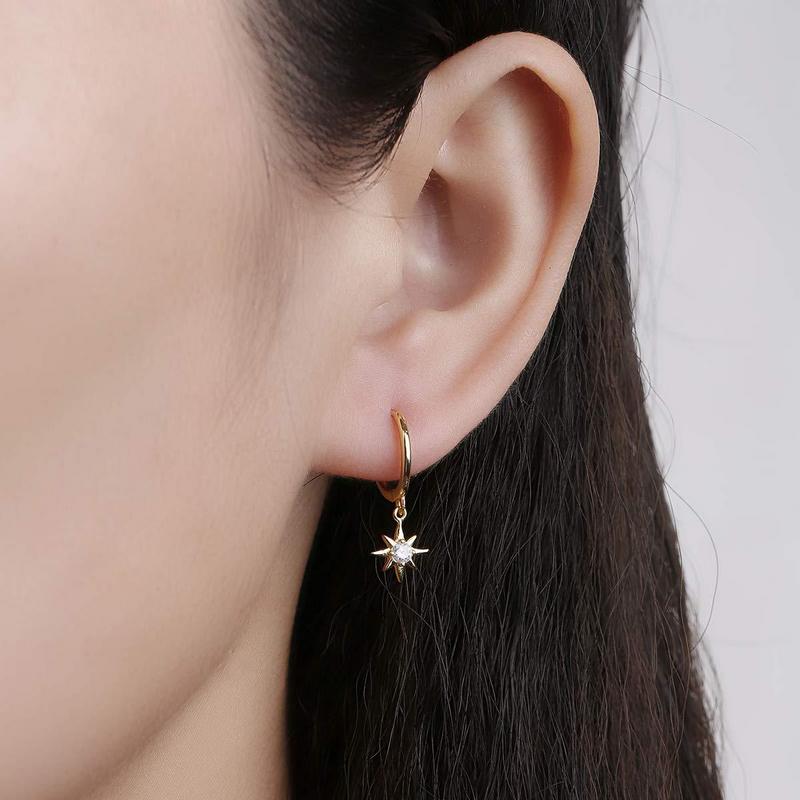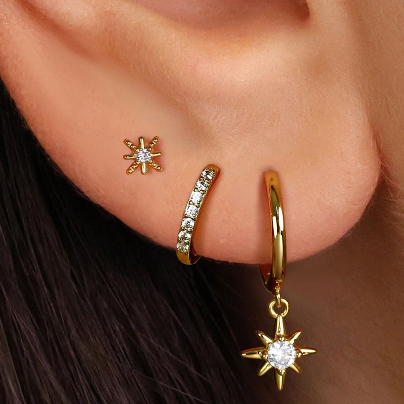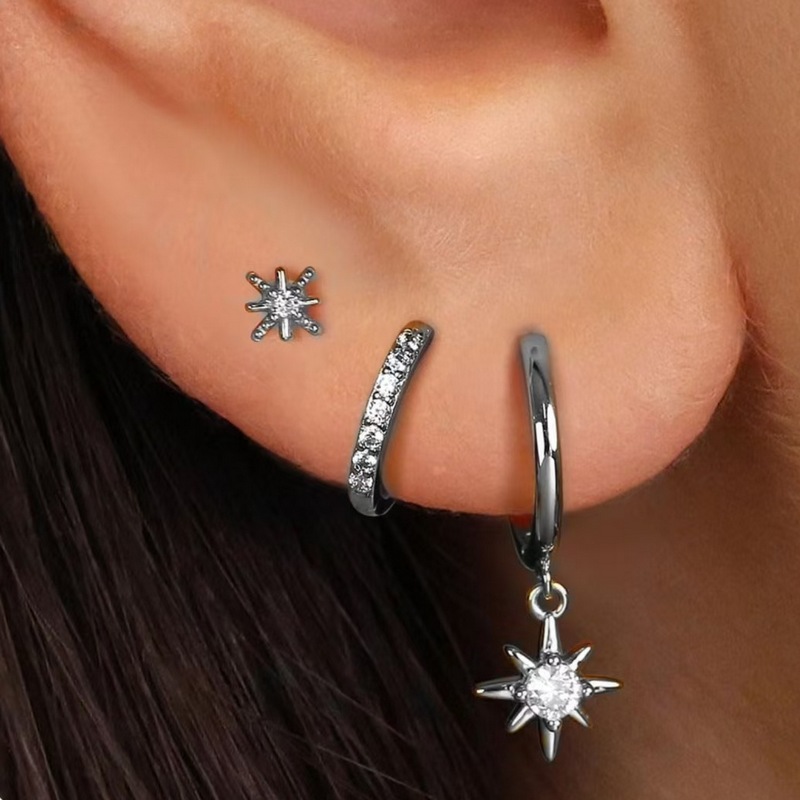 跨境欧美时尚简约气质三件套流行八芒星星耳坠热销百搭气质耳扣 (单边)