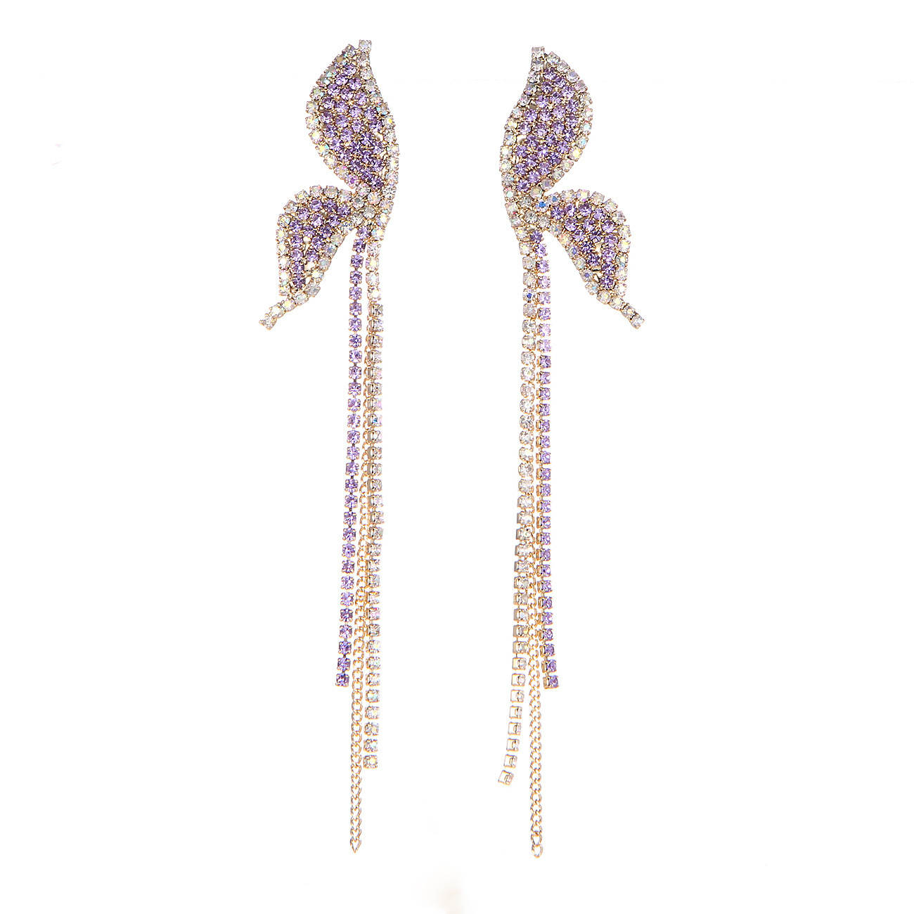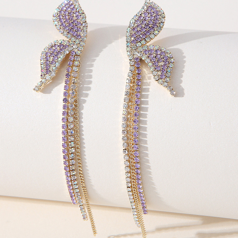 镶钻紫色蝴蝶耳环日韩甜美森系耳坠气质长款流苏耳饰品女