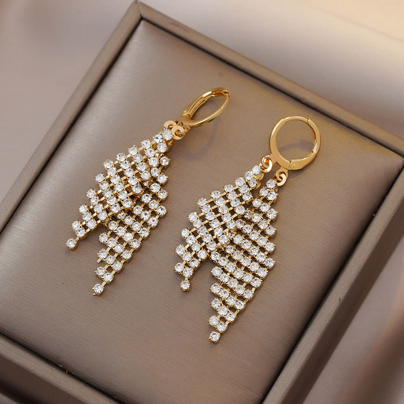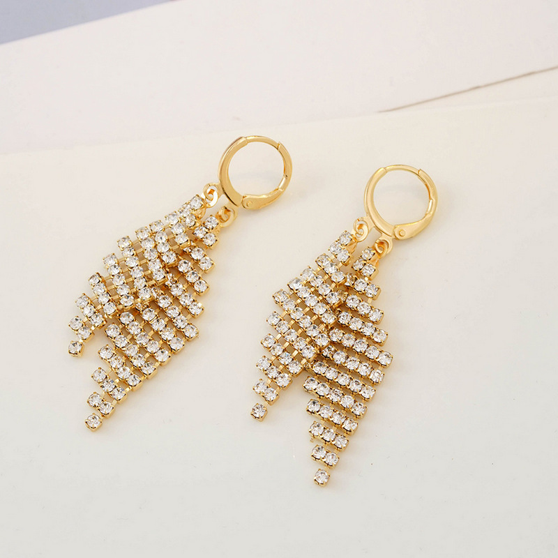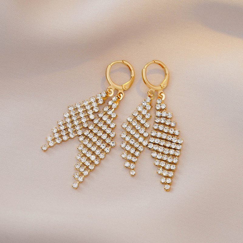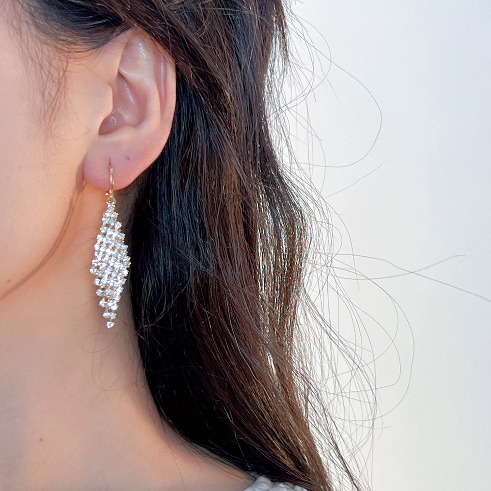 时尚轻奢高级感满钻几何双菱形耳扣个性精致百搭超闪耳坠耳饰批发