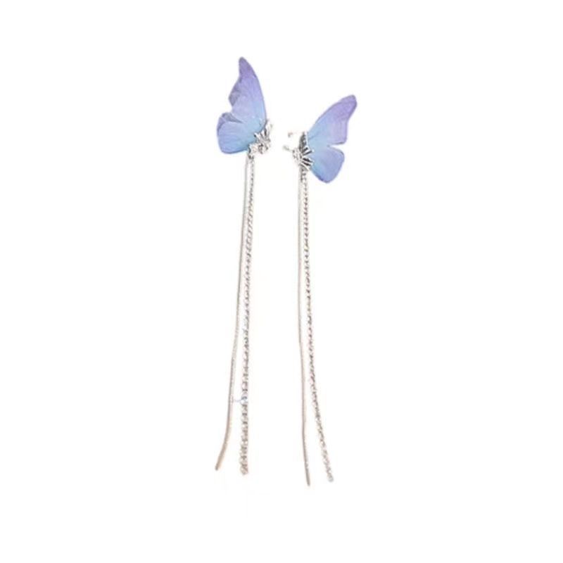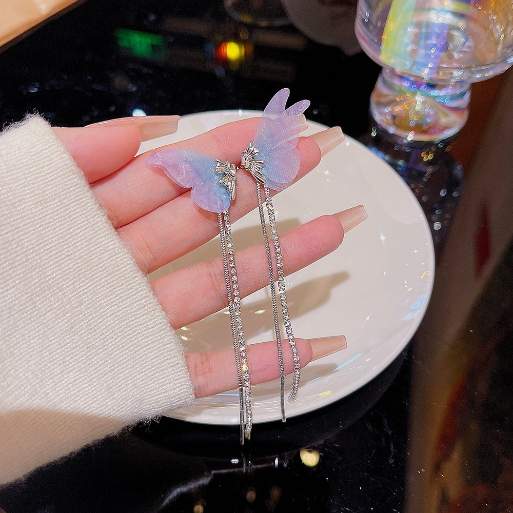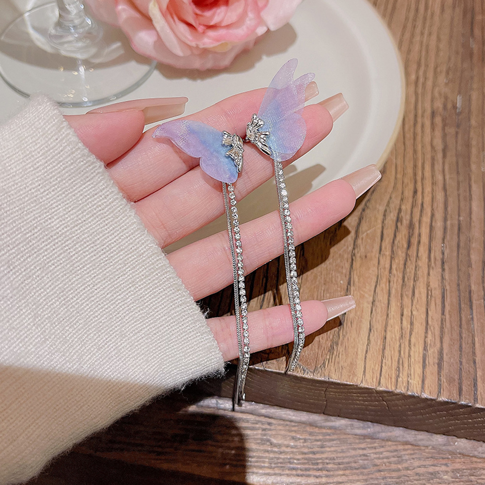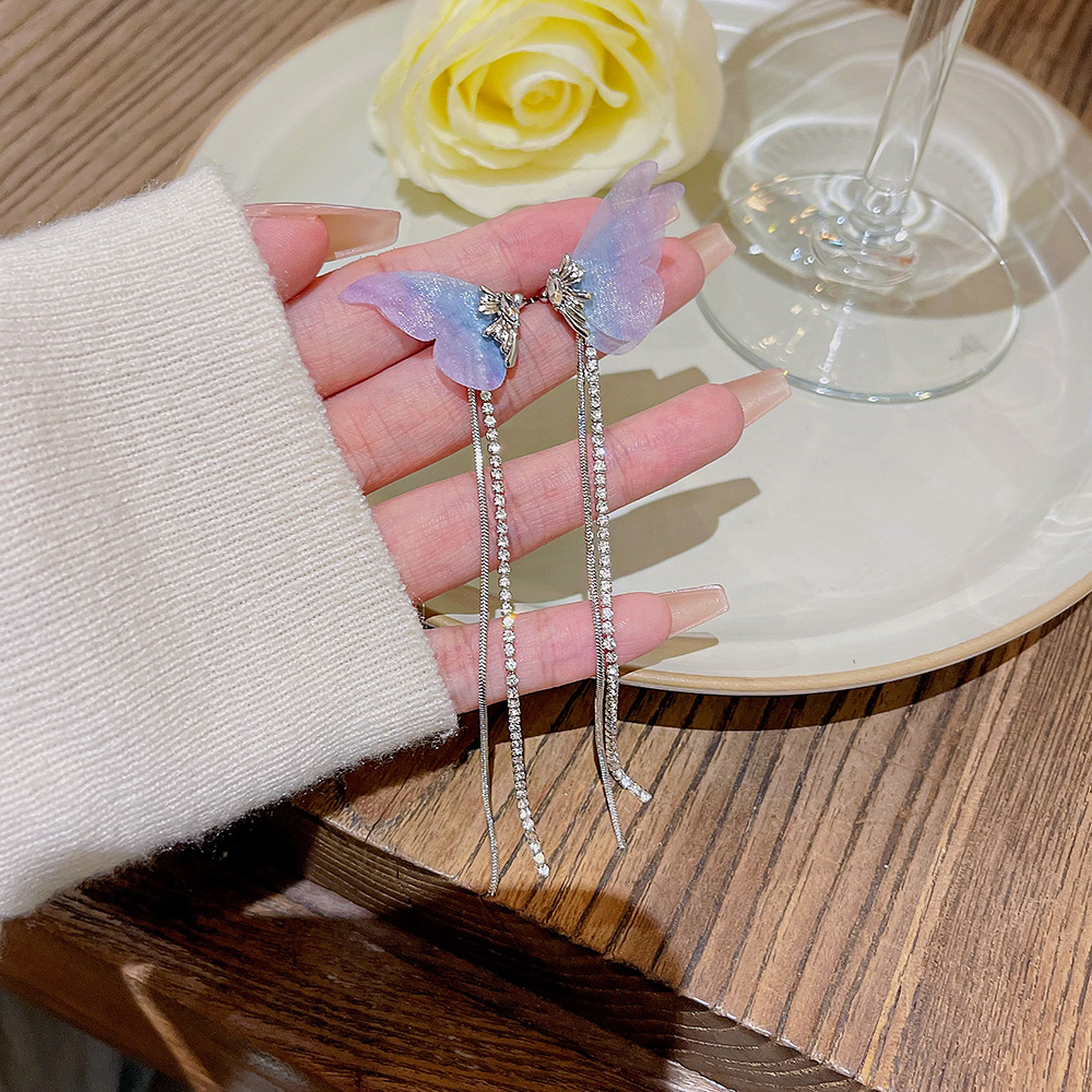 韩版无耳洞耳夹冷淡风设计感耳饰女长款流苏珍珠蝴蝶耳骨夹