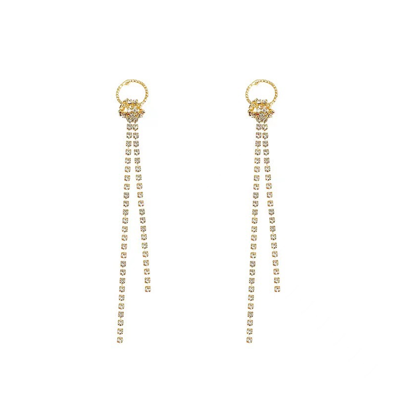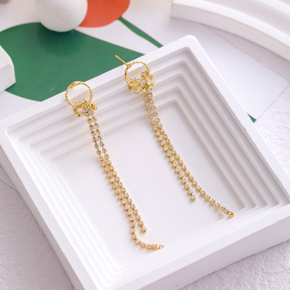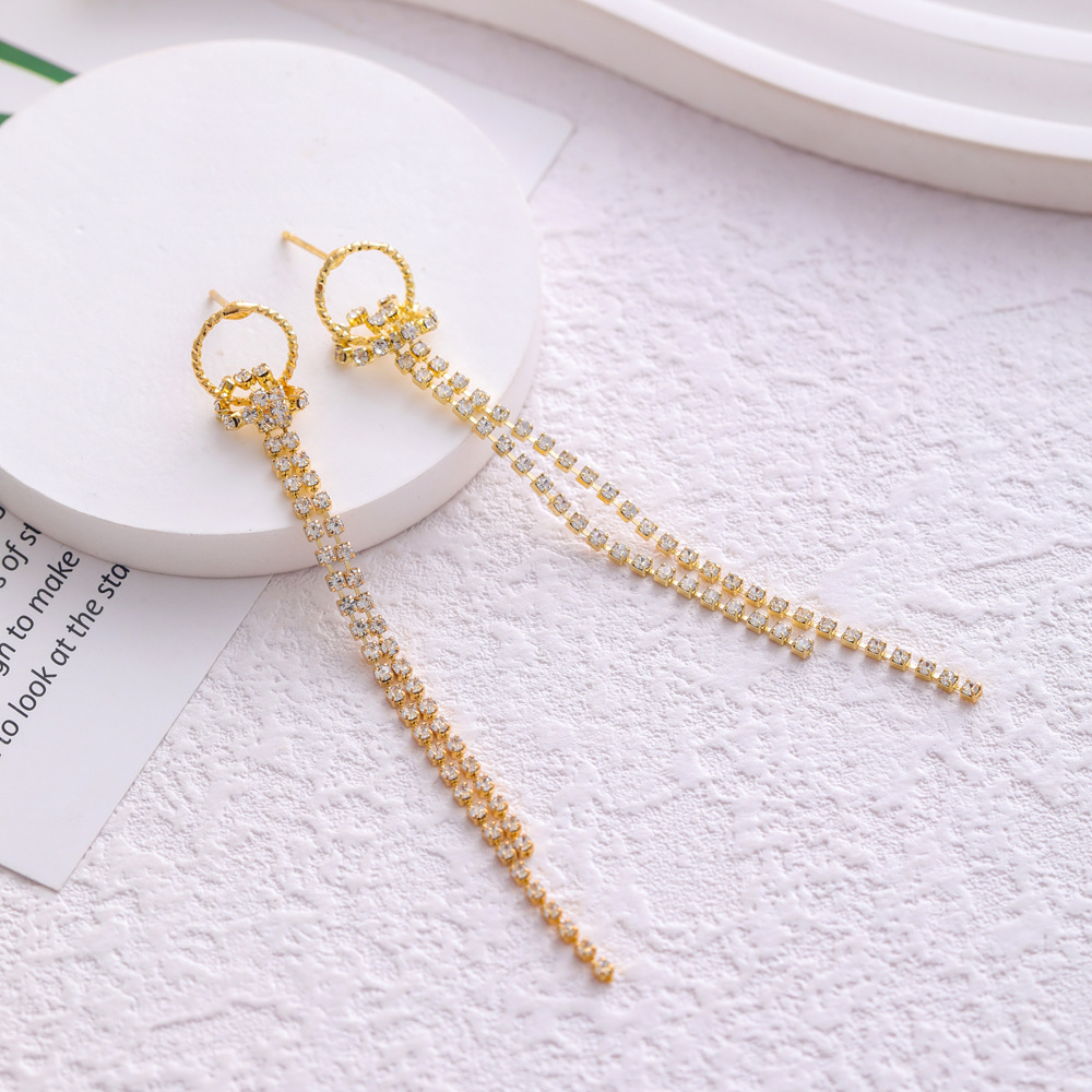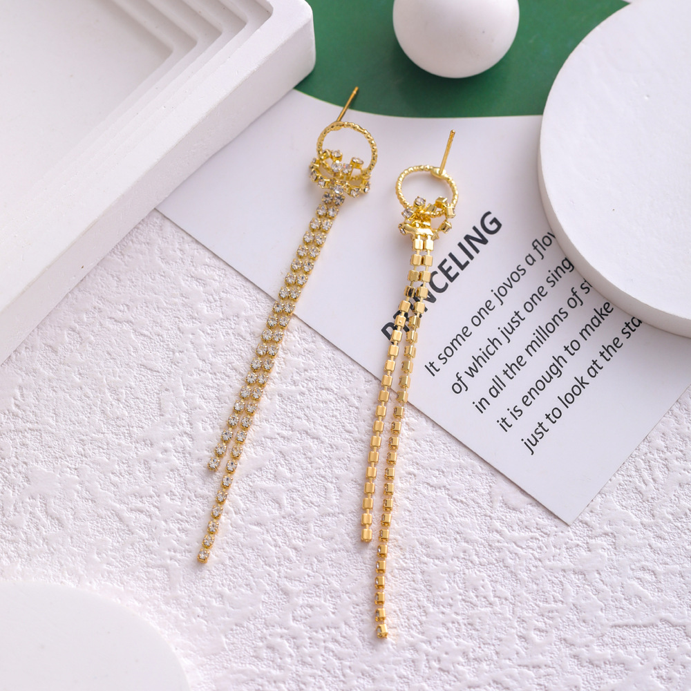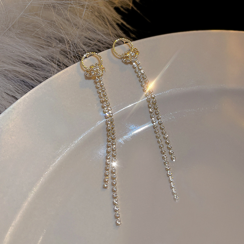 韩国百搭长款流苏耳环女ins潮气质名媛镶钻圆圈耳钉耳饰品