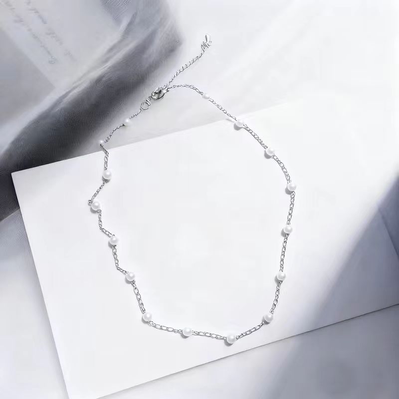 欧美跨境饰品 新款简约珍珠颈链时尚锁骨链choker脖子饰品女速卖
