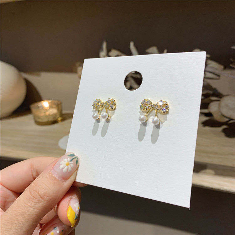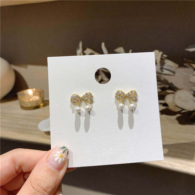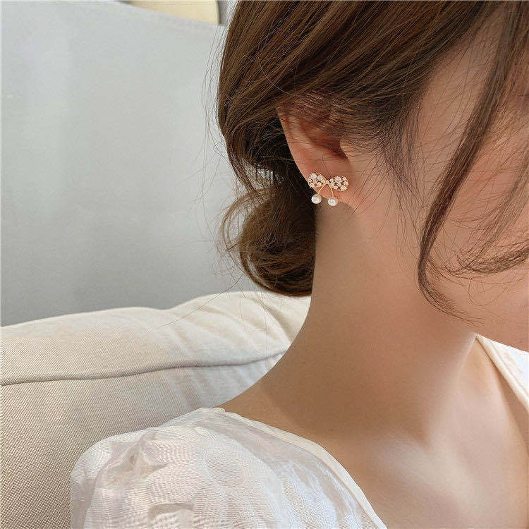 日韩小巧简约镂空蝴蝶结耳钉气质个性网红甜美珍珠耳环