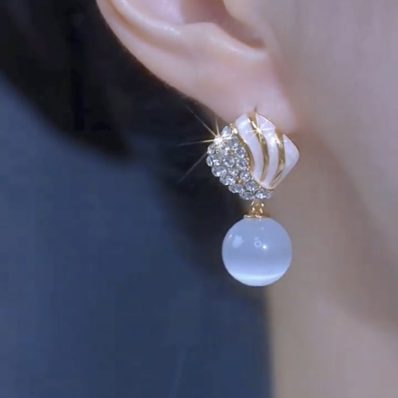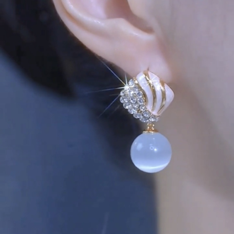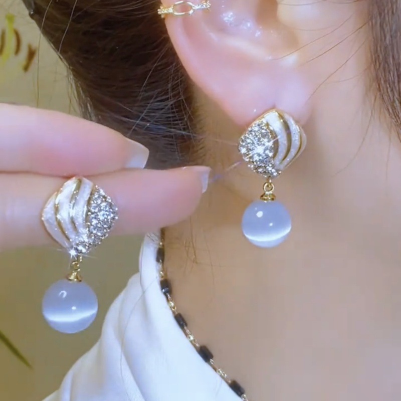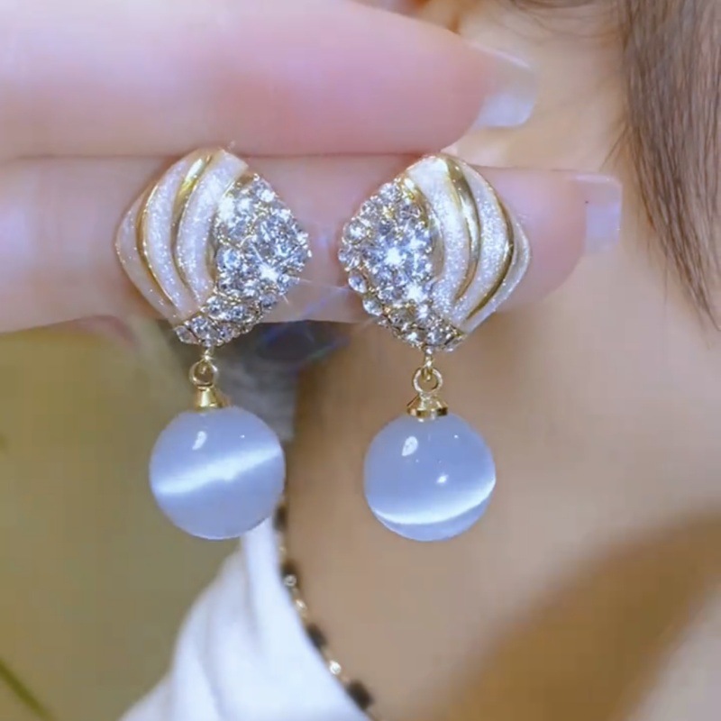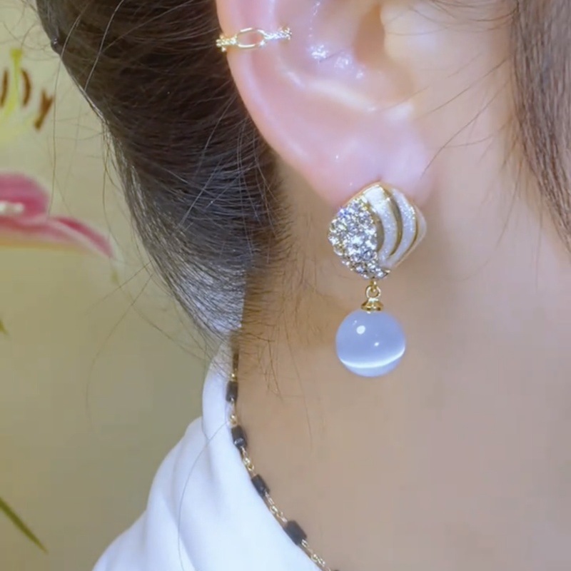 滴油镶钻耳钉轻奢优雅猫眼石耳环女时尚气质高级感耳饰潮