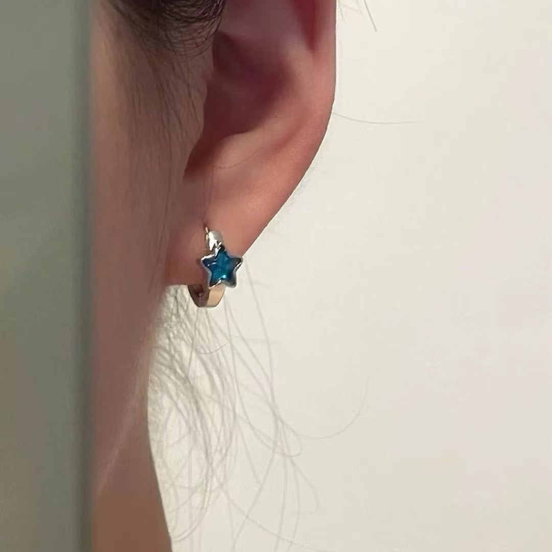 时尚蓝色星星耳钉女2025新款洋气高级感耳圈耳扣小众百搭耳饰批发