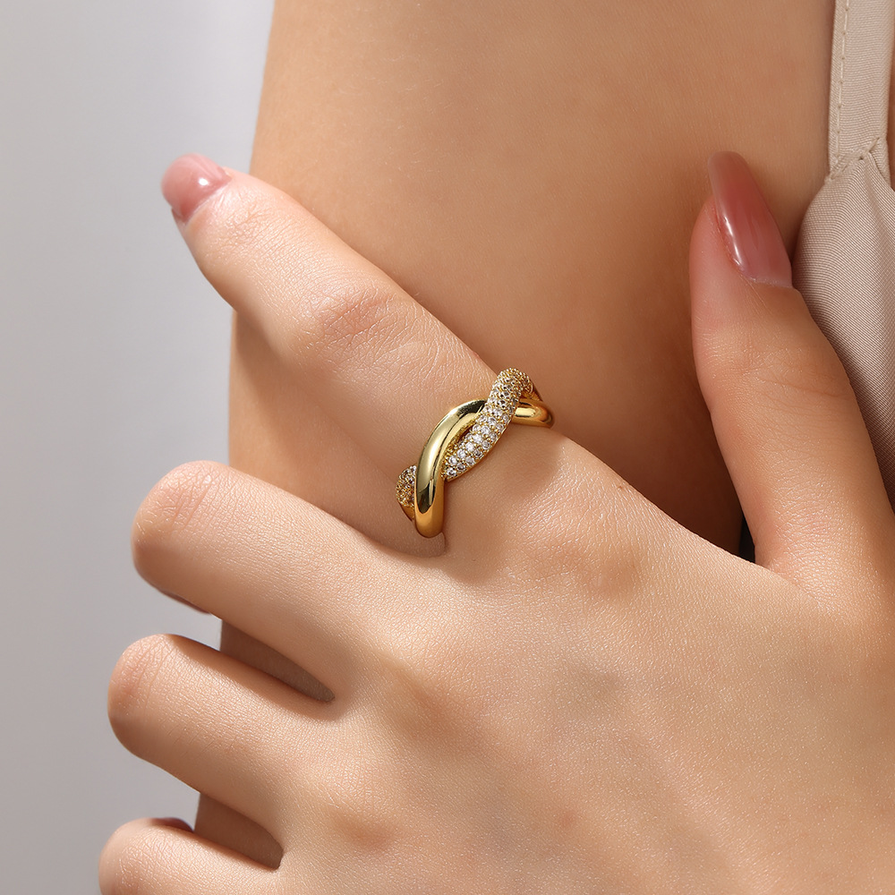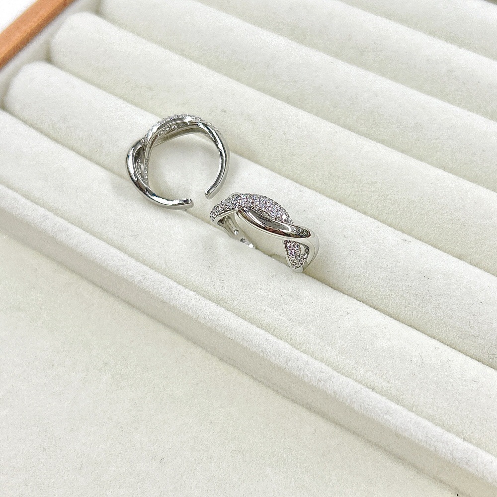 时尚小众设计感轻奢个性波浪纹开口戒指女铜镶锆石缠绕可调节指环