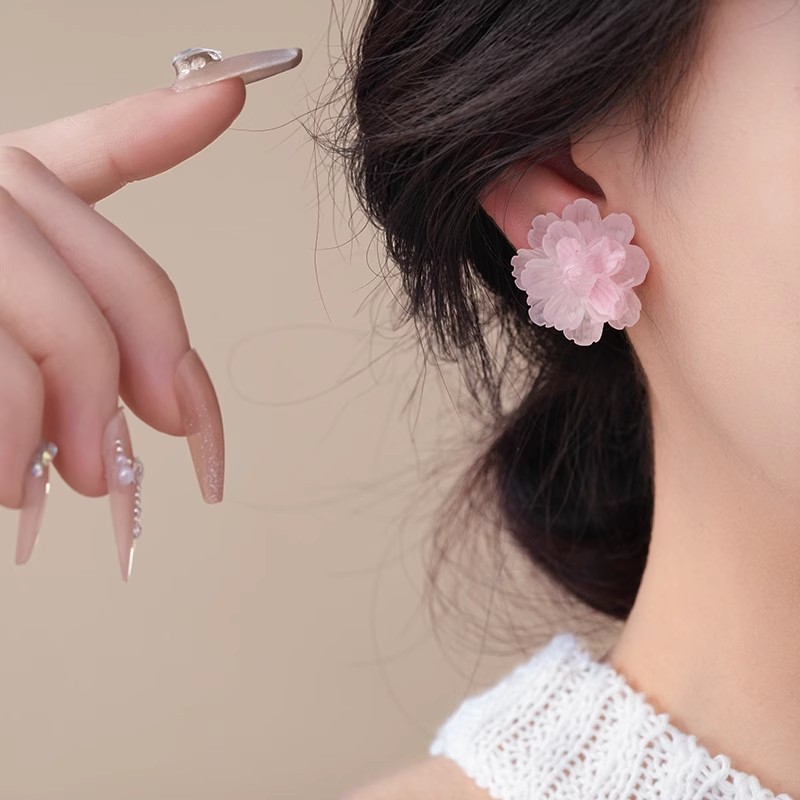 甜美粉色树脂花朵耳环2025新款高级感耳钉超仙百搭气质高级感耳饰
