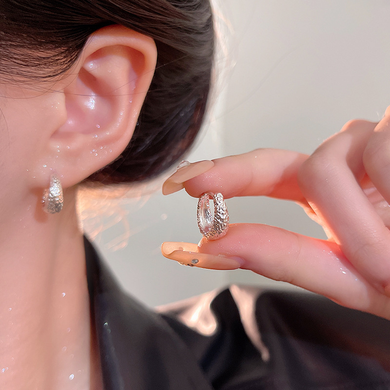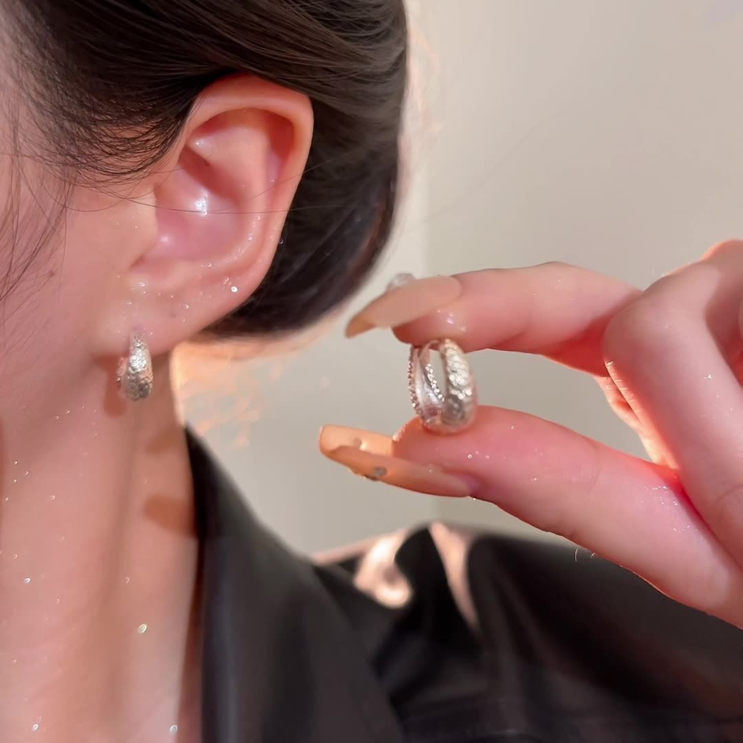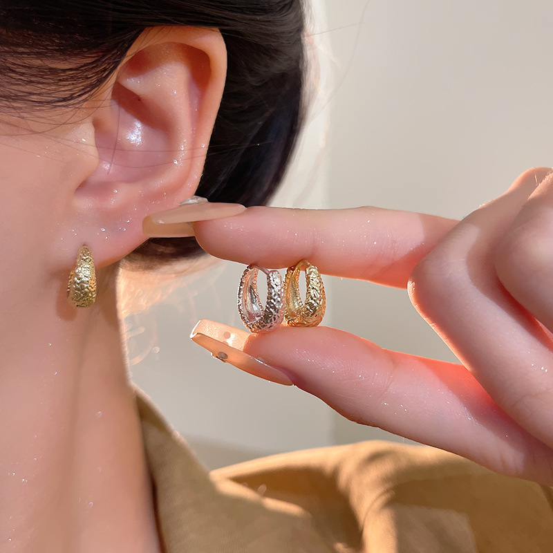 2025爆款小众高级金属感耳环女韩系时尚轻奢百搭气质磨砂耳圈耳扣