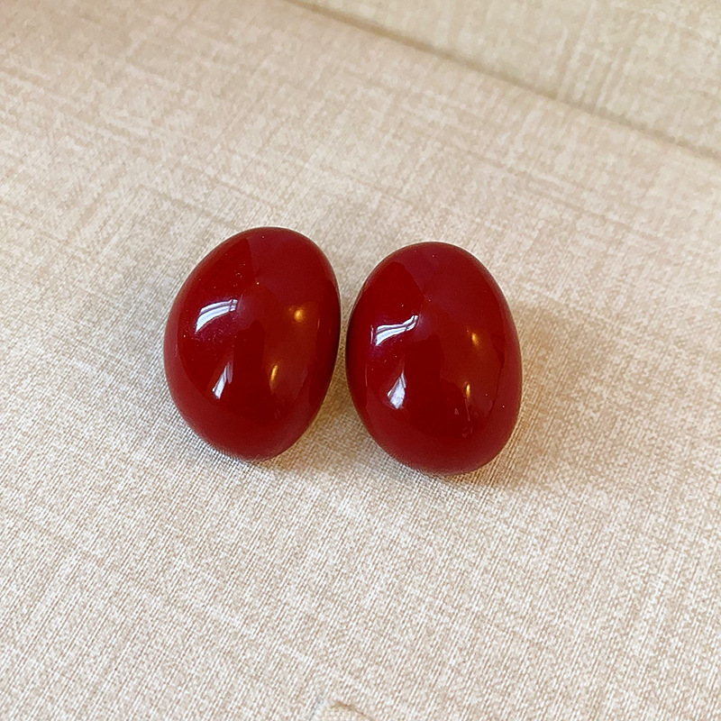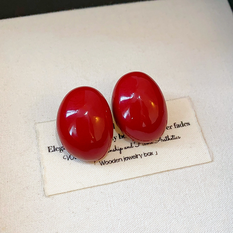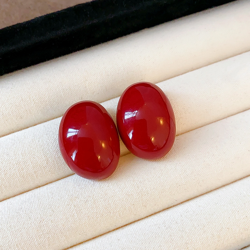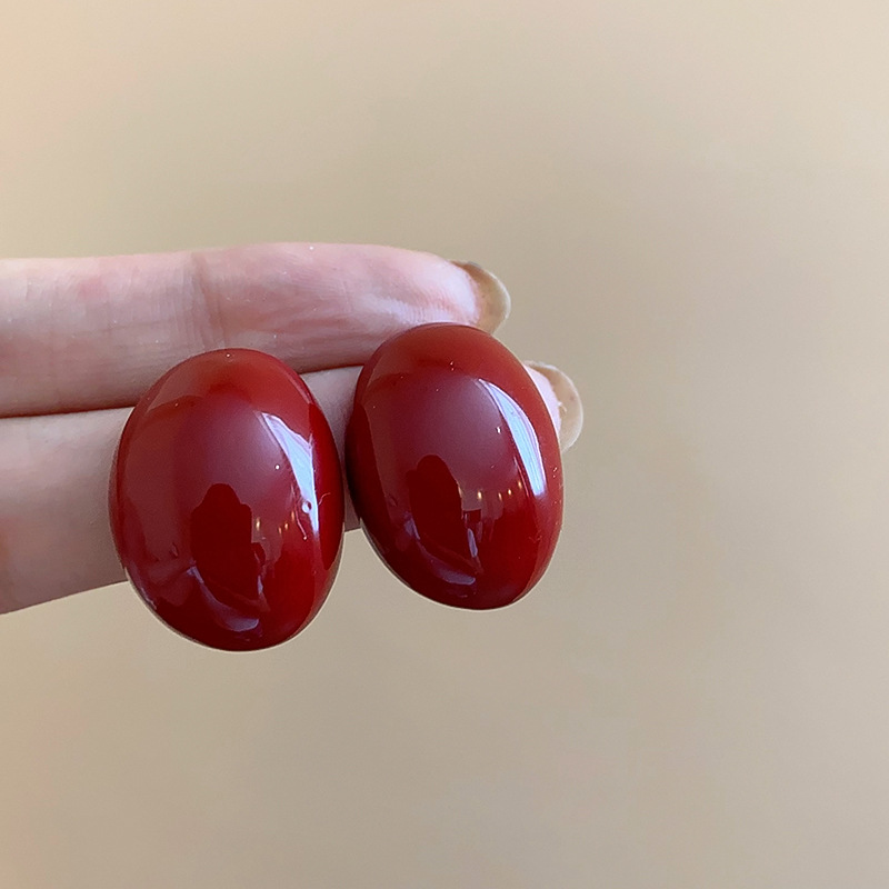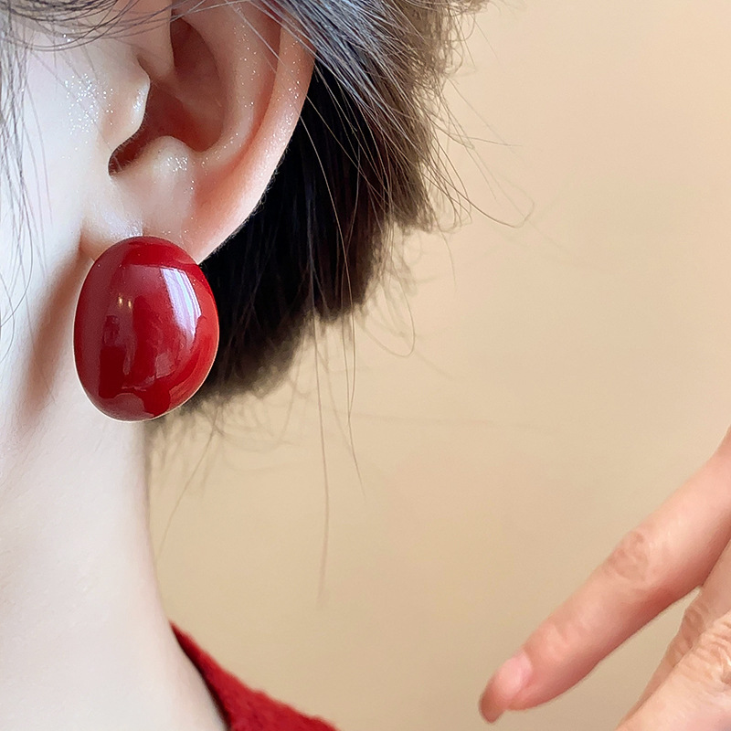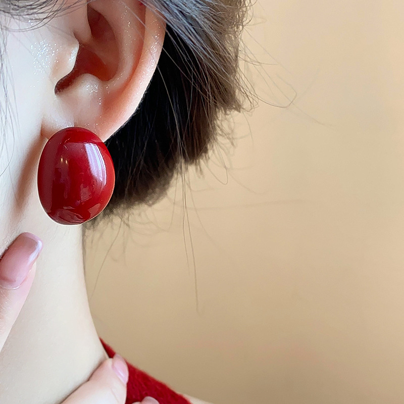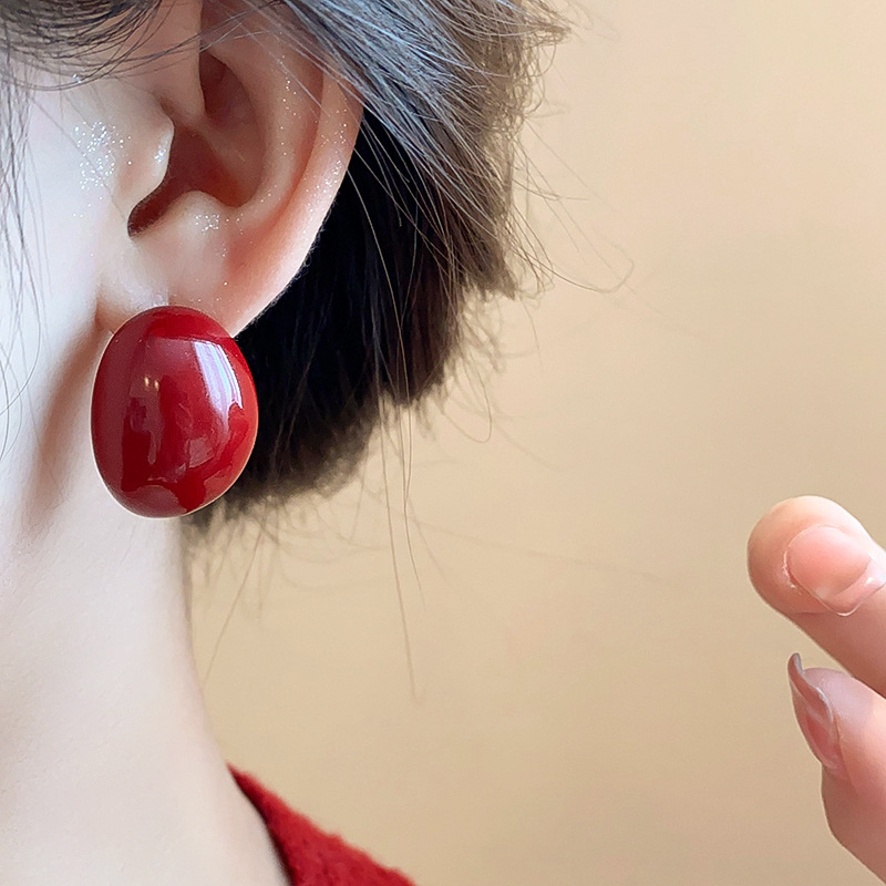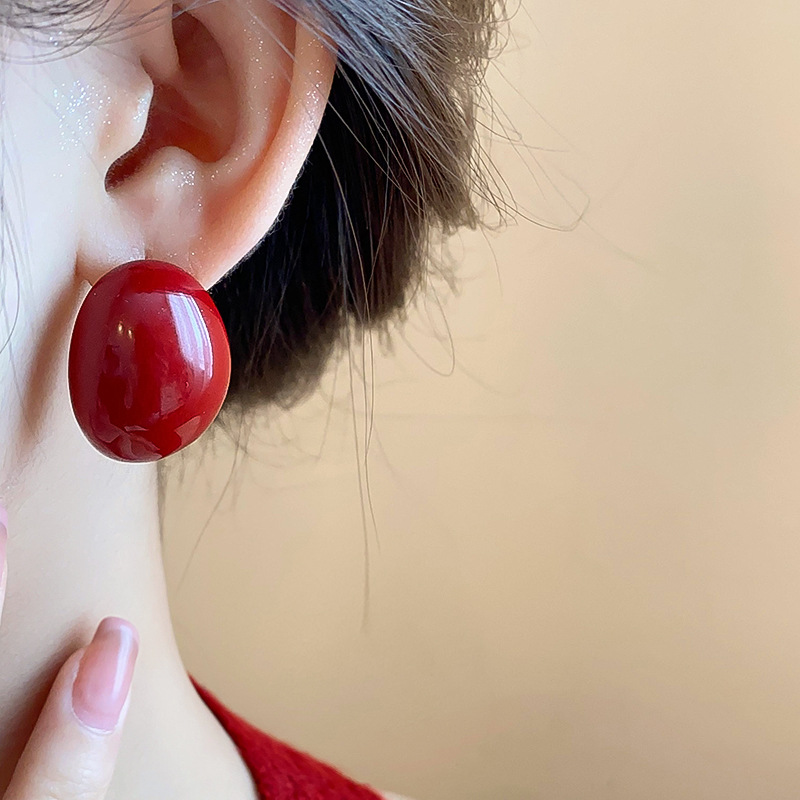 安可拉红色滴油圆形耳环超仙复古时尚耳钉小众设计感气质耳饰
