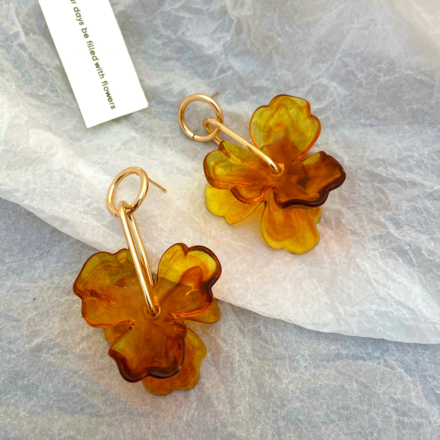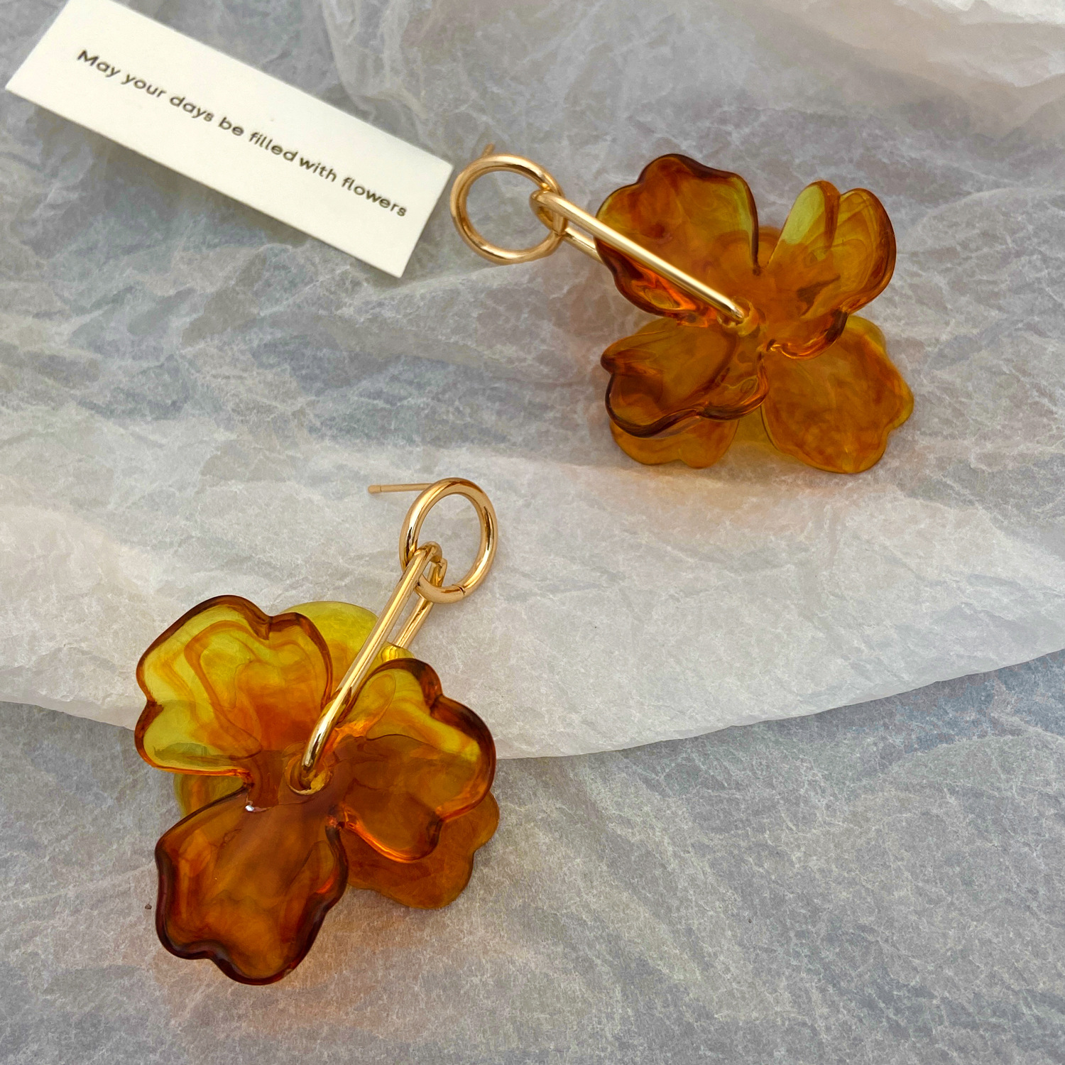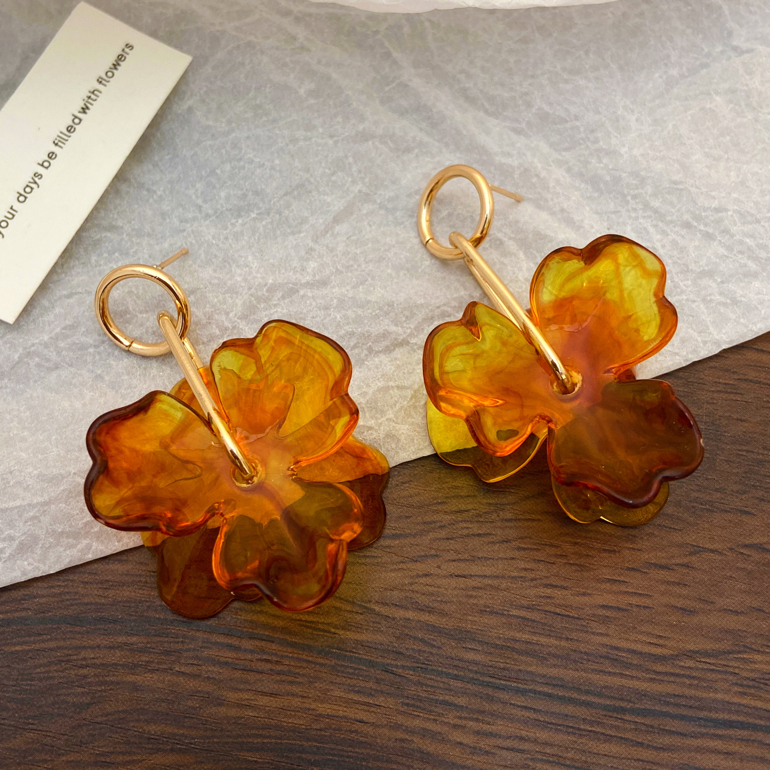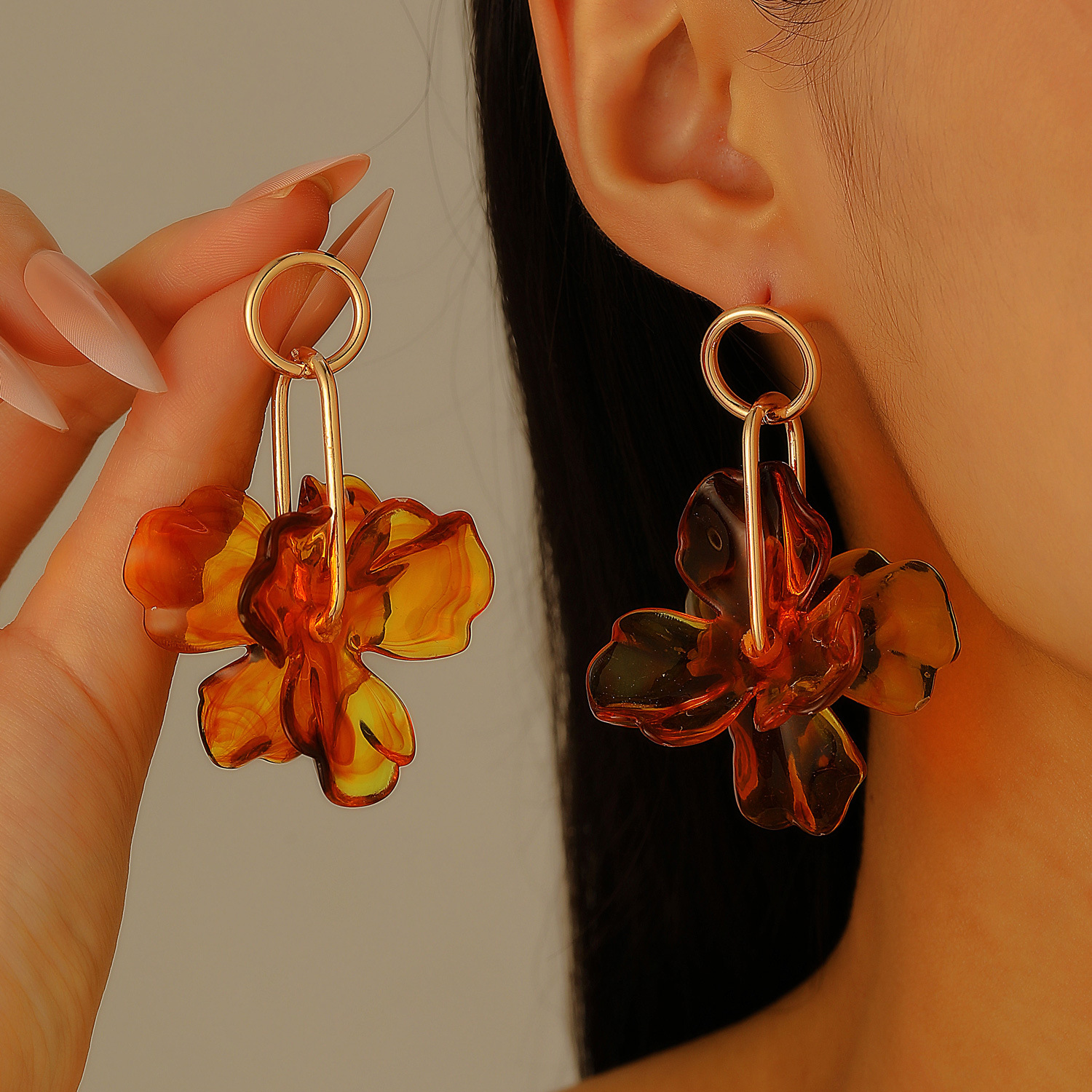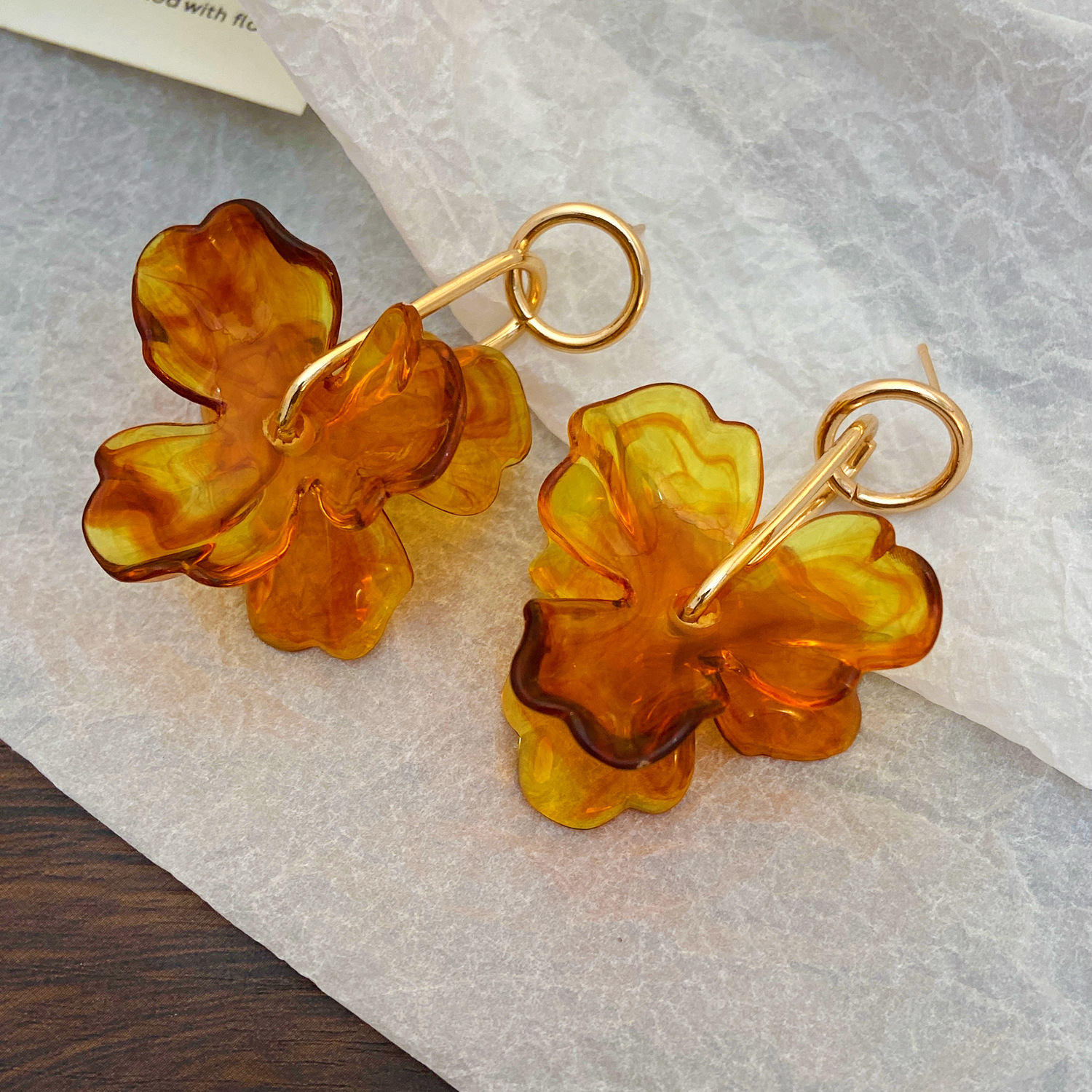 烂漫花园法式复古亚克力花朵夸张耳环轻奢高级气质时髦小众耳饰品