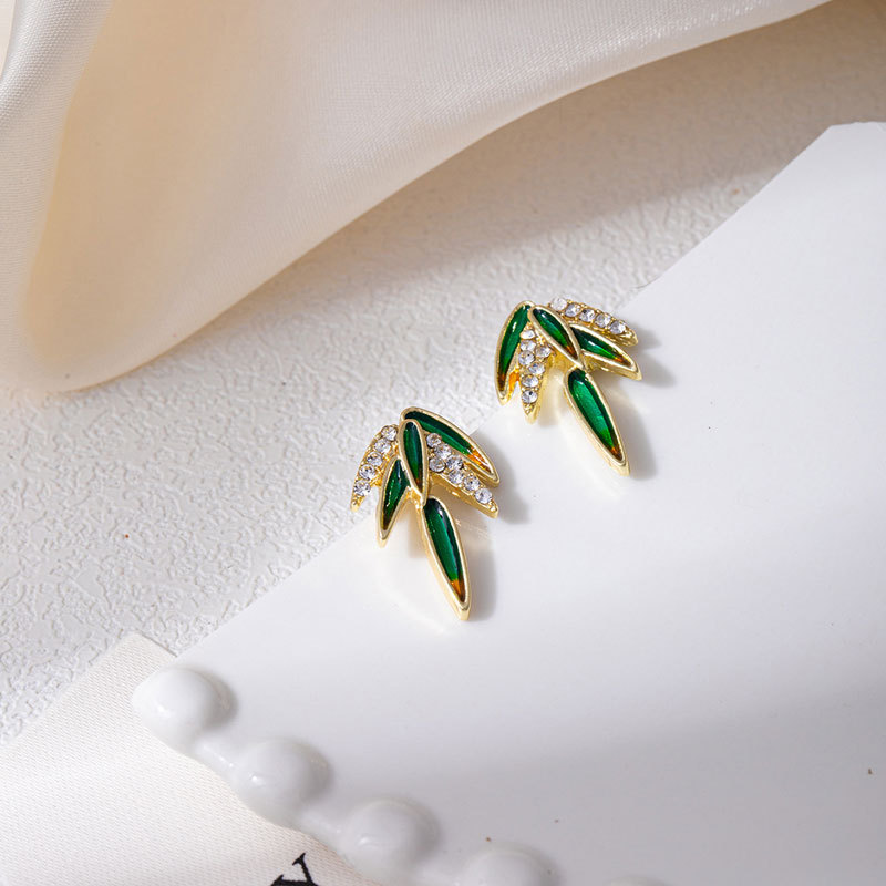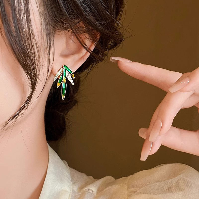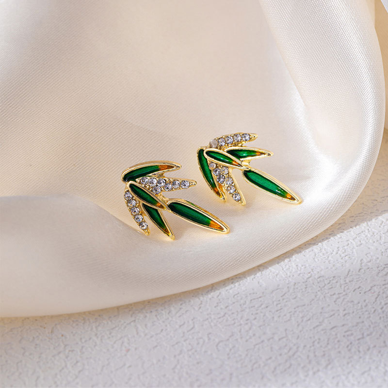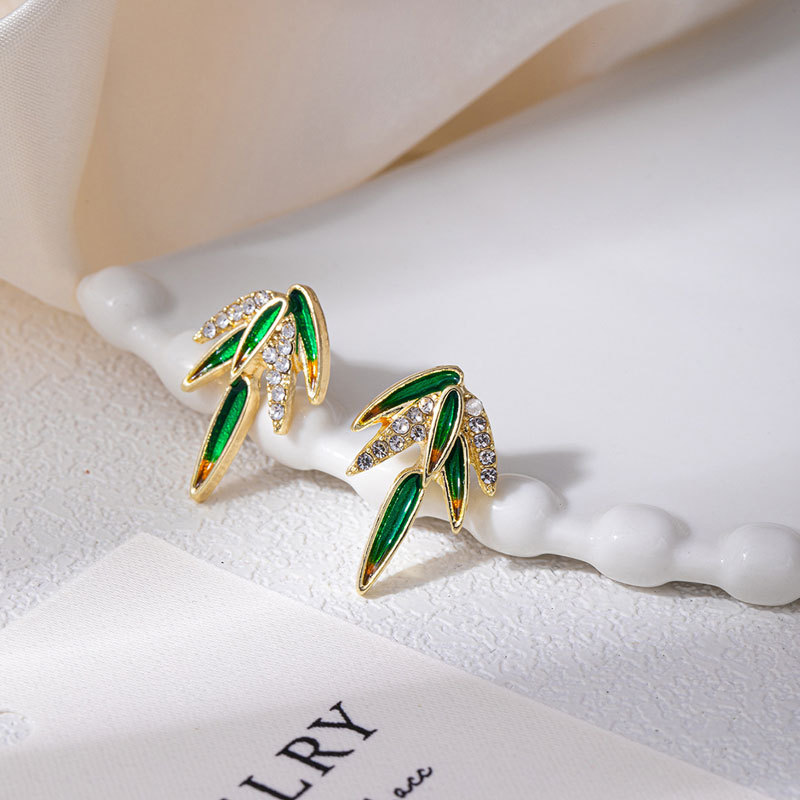 新中式节节高升竹叶镶钻耳钉中国风轻奢高级感简约优雅气质女