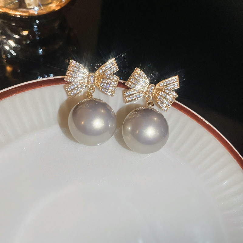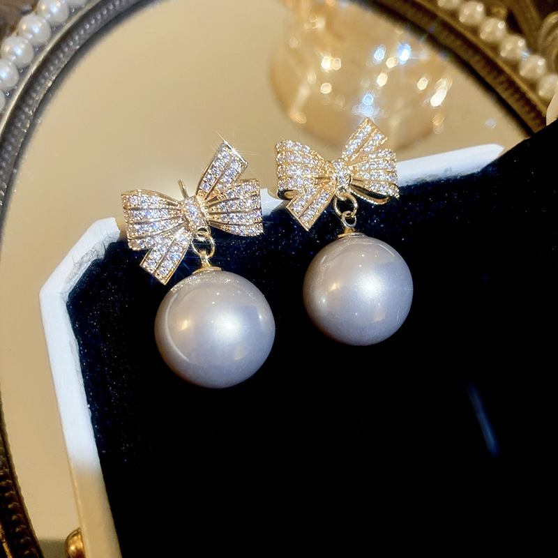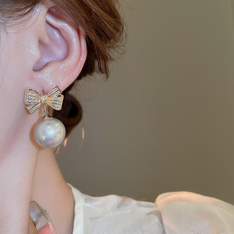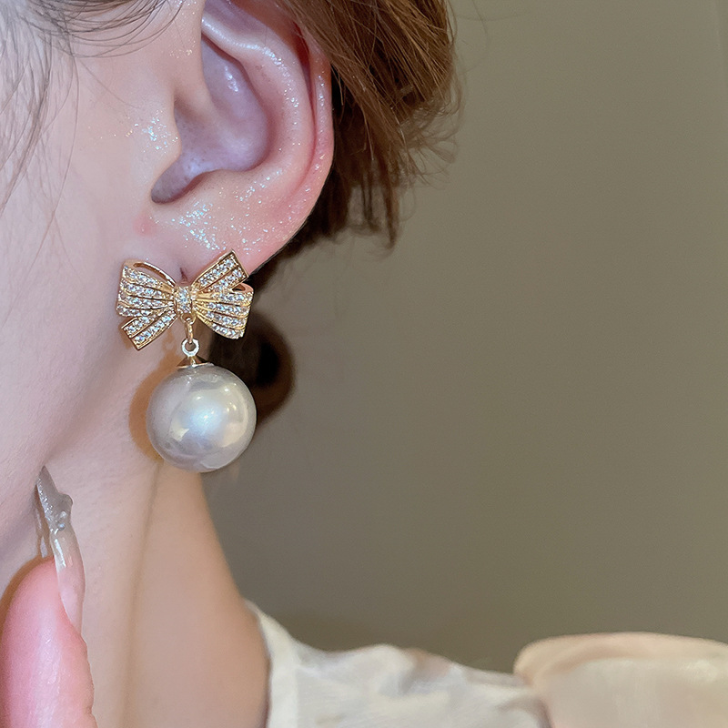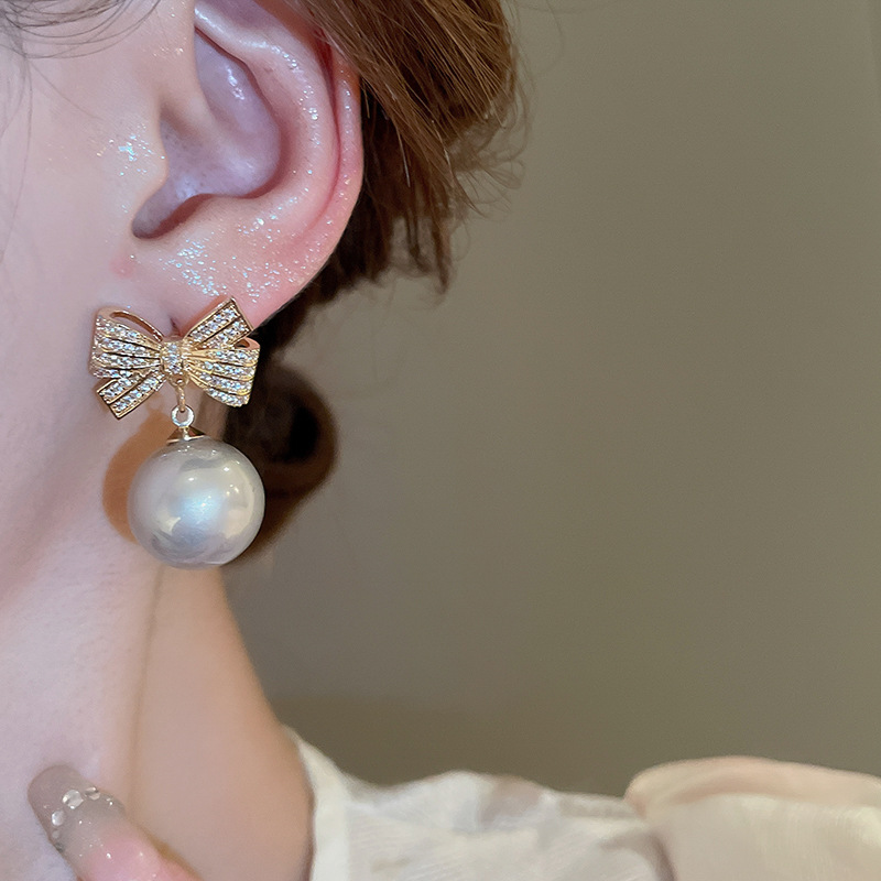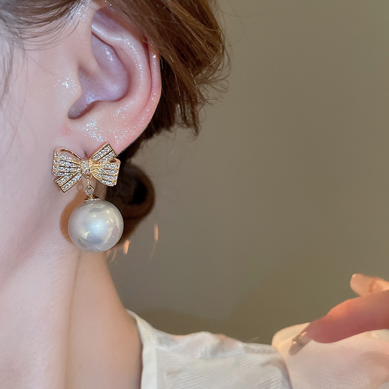 韩国个性蝴蝶结珍珠耳钉精致优雅气质高级感耳环轻奢小众耳饰批发