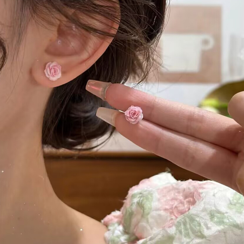 2026新款温柔玫瑰花朵耳钉爆款高级清新气质小众轻奢耳饰