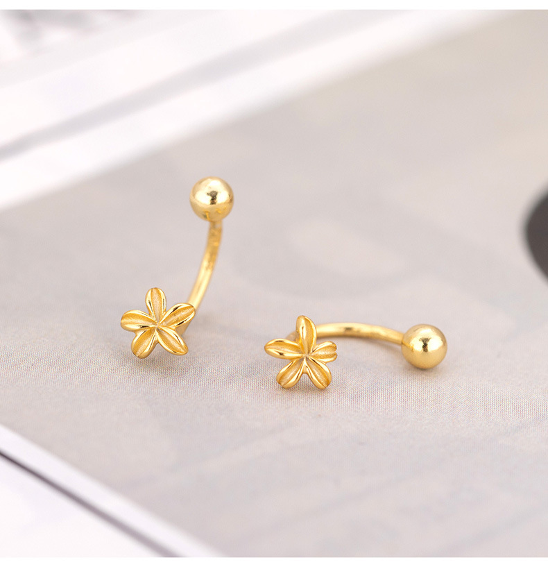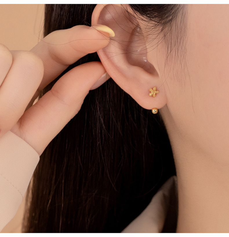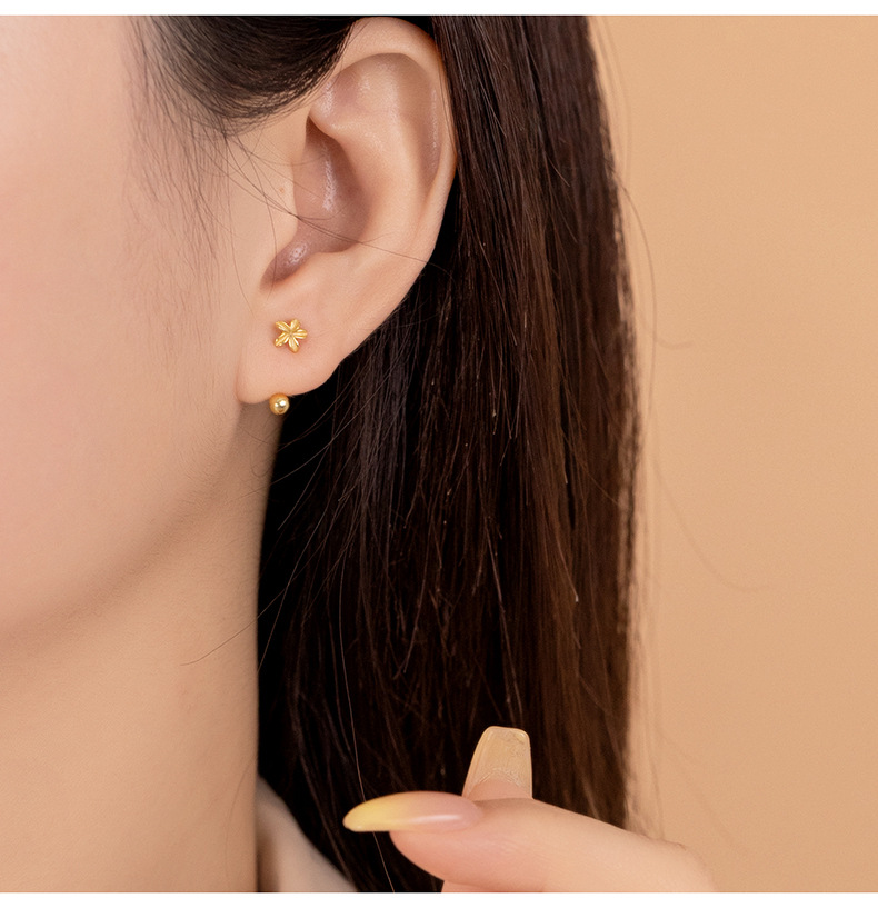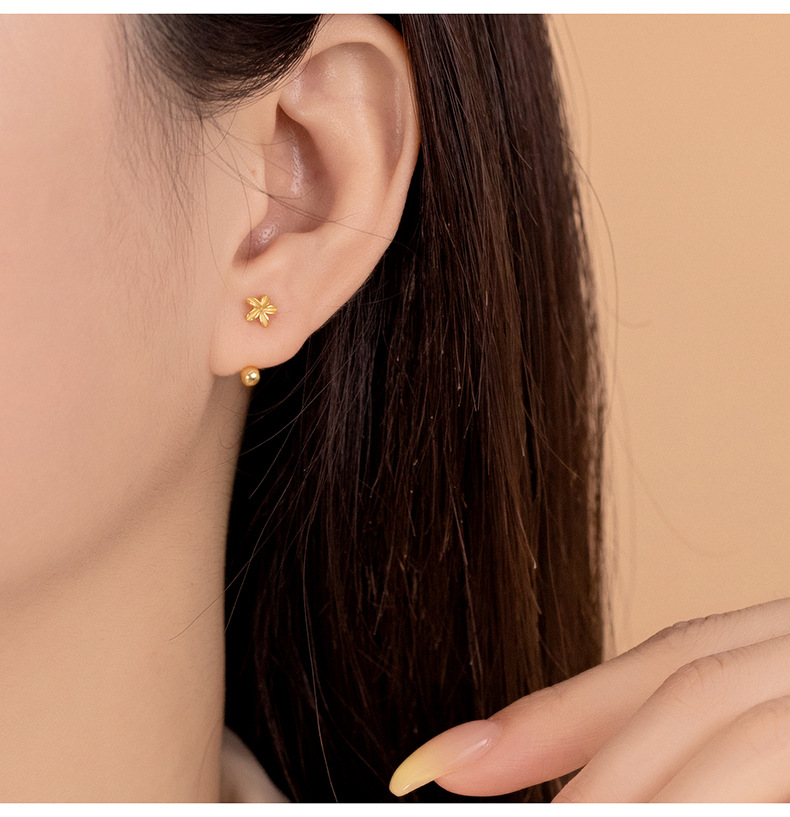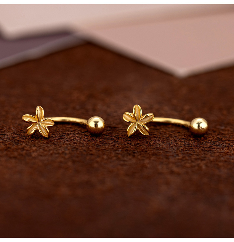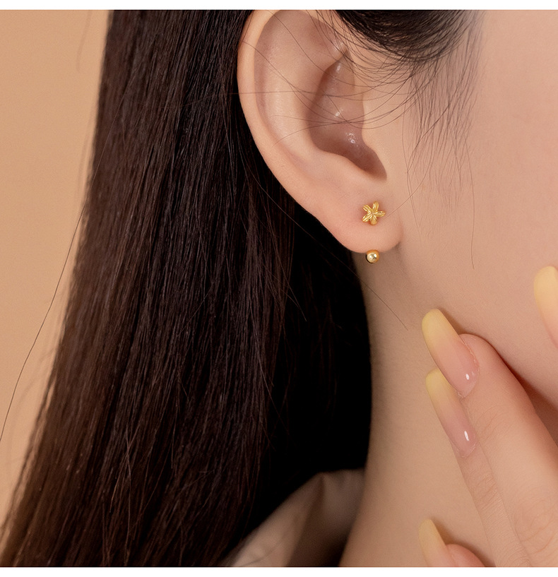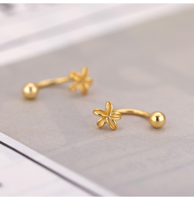 电镀小金花朵u型双耳洞耳钉耳骨钉女新中式螺丝拧扣耳环耳饰品