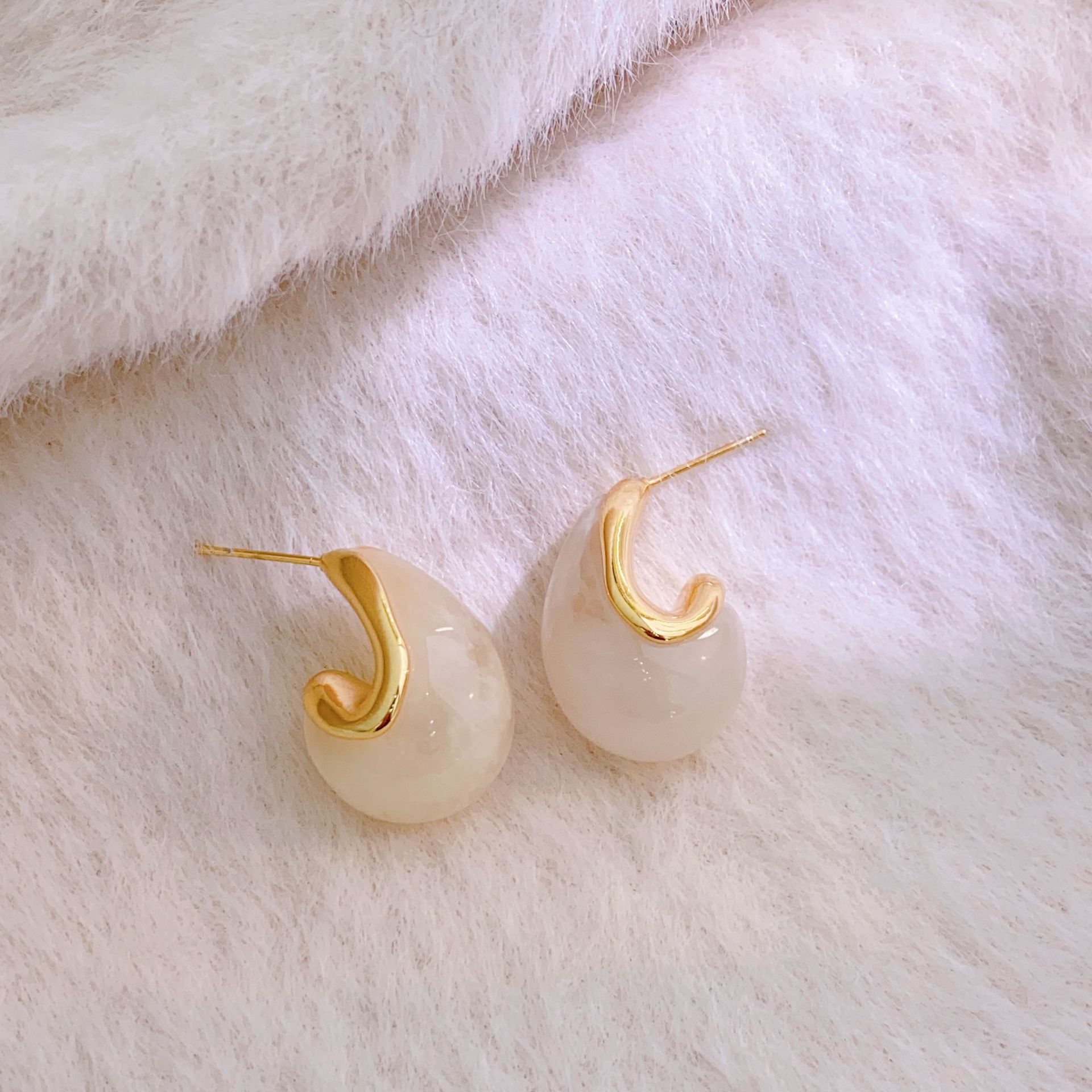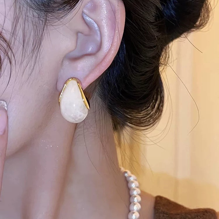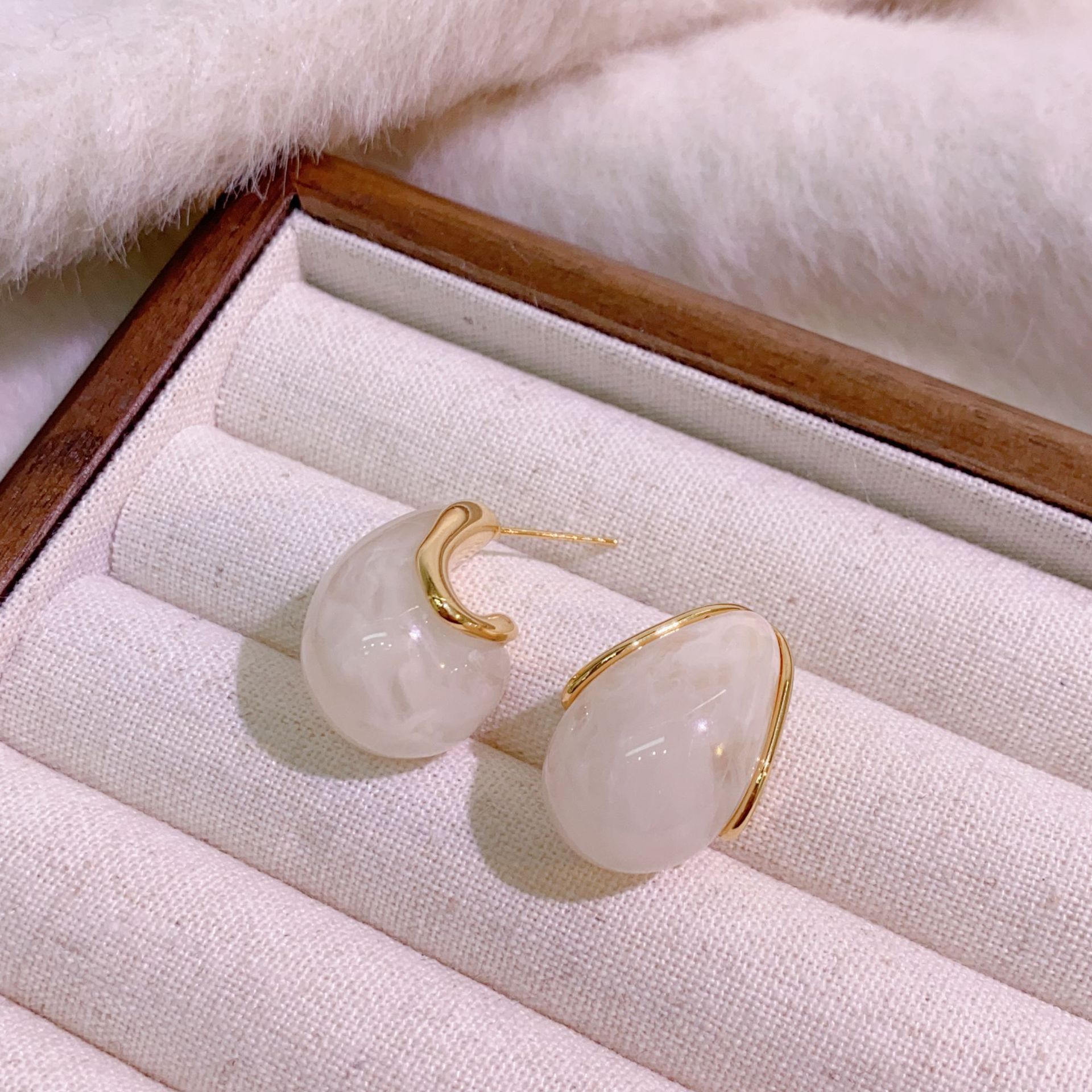 法式复古百搭小众个性设计水滴耳环树脂高级感气质不锈钢耳饰批发