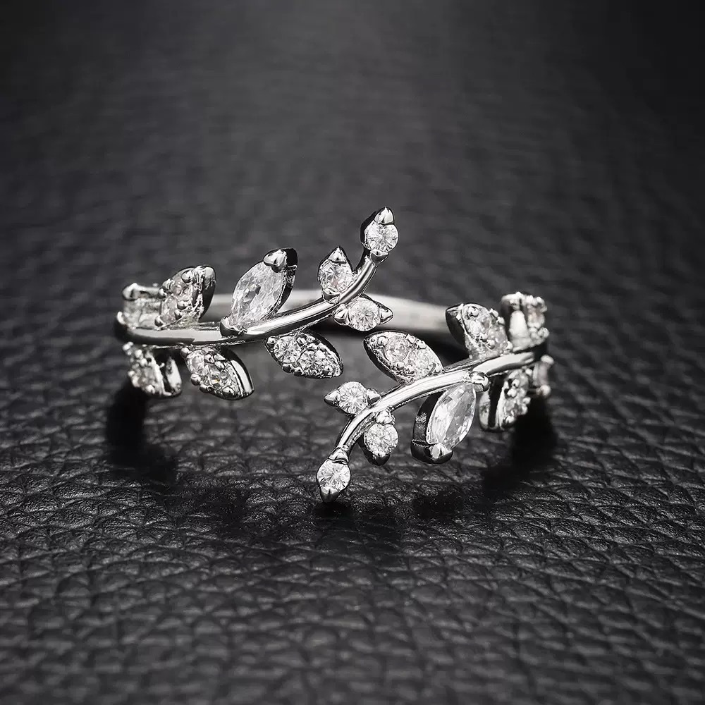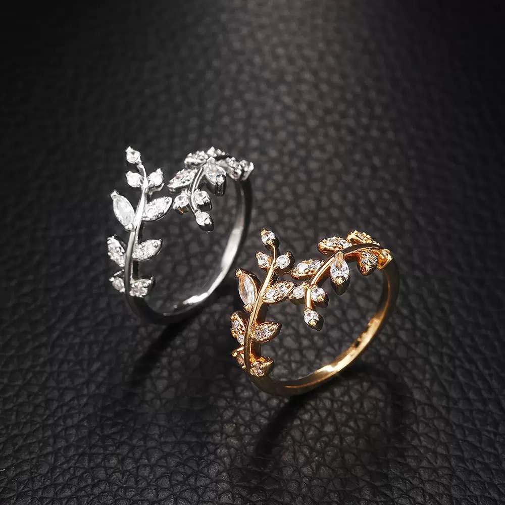 跨境新款潮叶子戒指女 时尚个性冷淡风ins潮食指戒开口可调节指