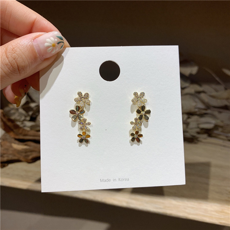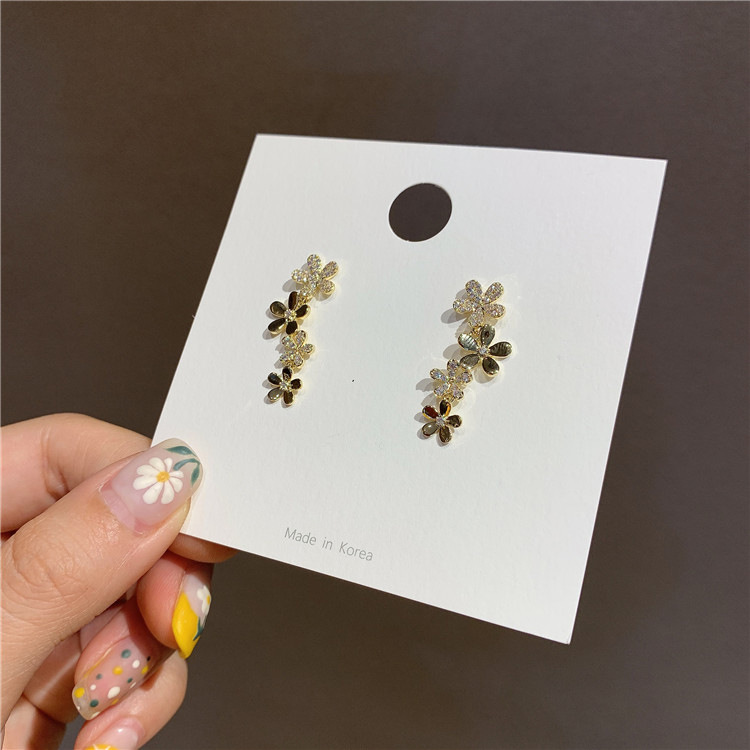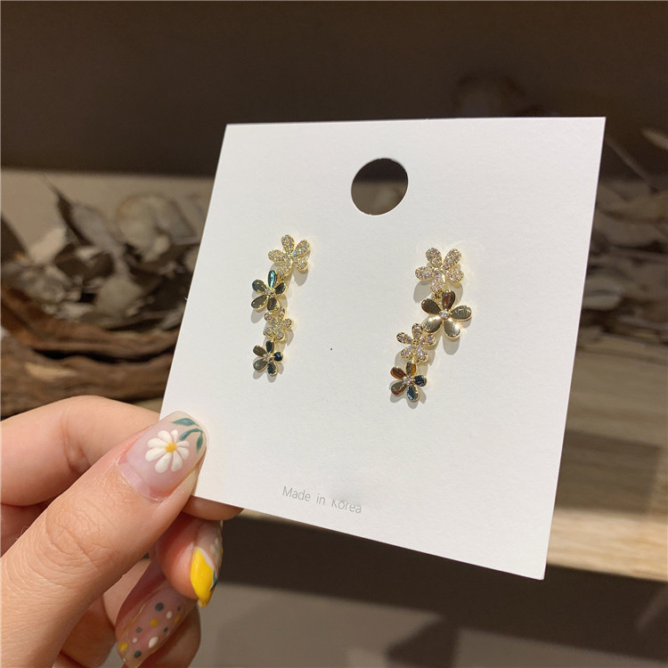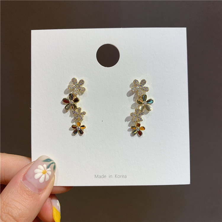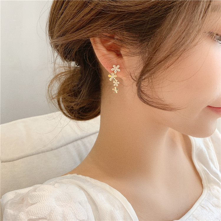 跨境环保精致花朵耳钉女长款气质小众设计高级感耳环耳饰轻奢