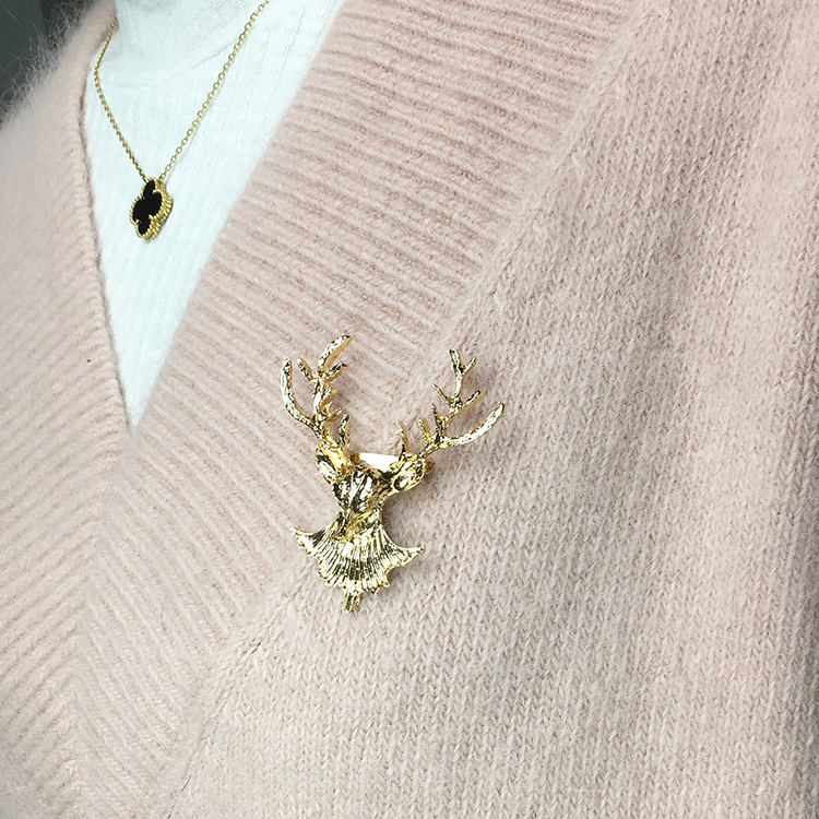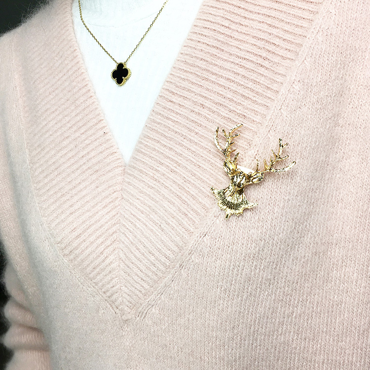 欧美饰品复古长角鹿别针胸章麋鹿头小鹿胸针圣诞节男女情侣款胸花