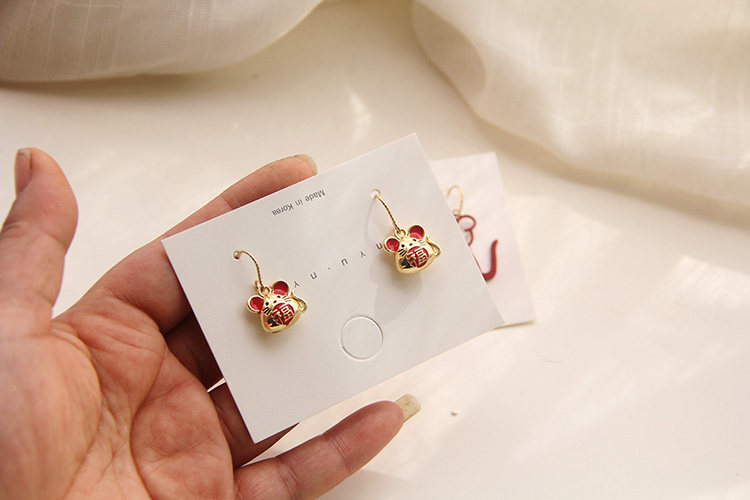 红色小老鼠2020年新款小老鼠福字春季网红耳环