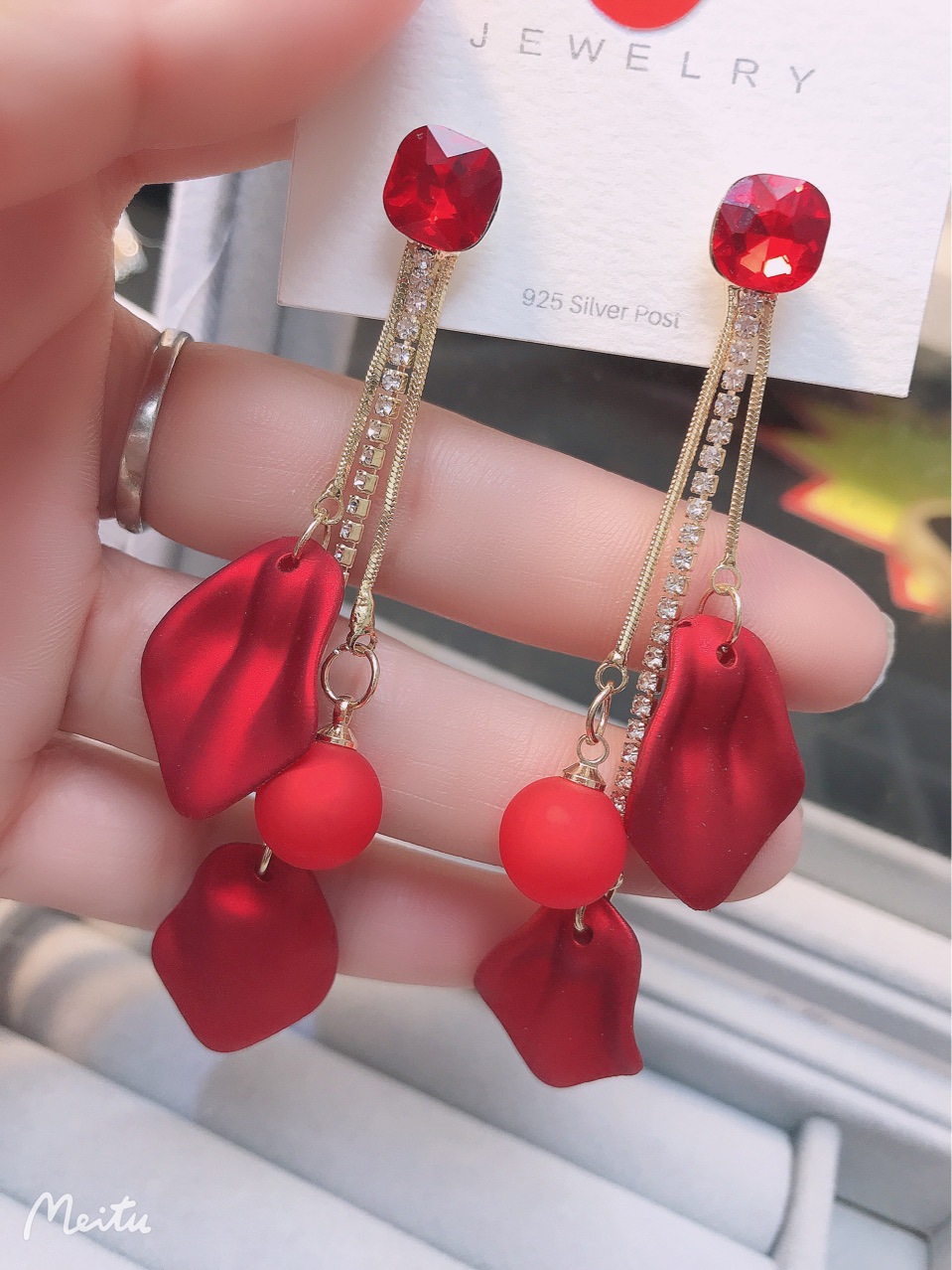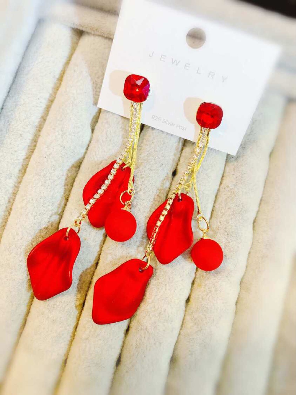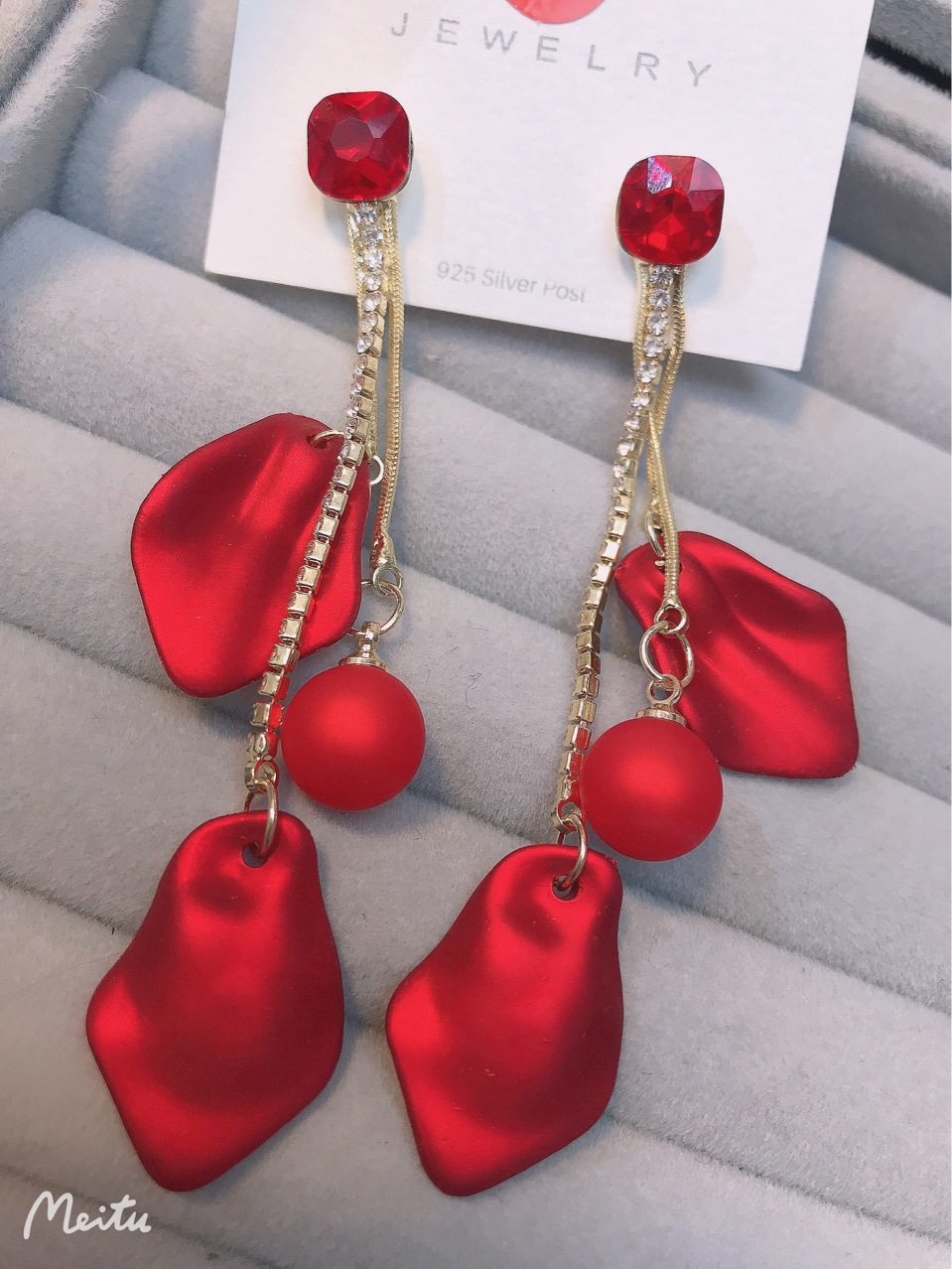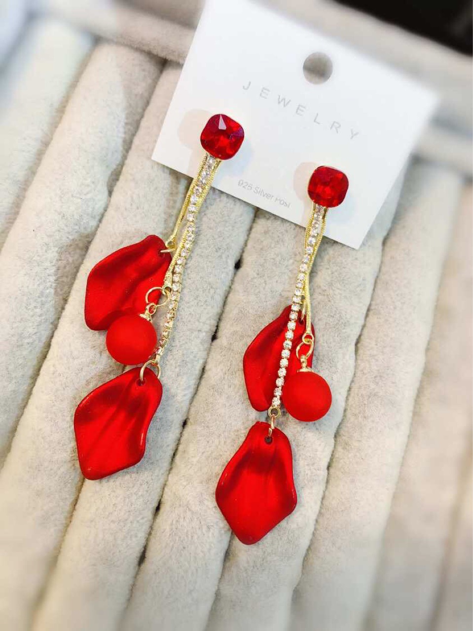 【真金电镀】 韩国超仙气质红色花瓣流苏过年戴的耳环网红显瘦耳饰品