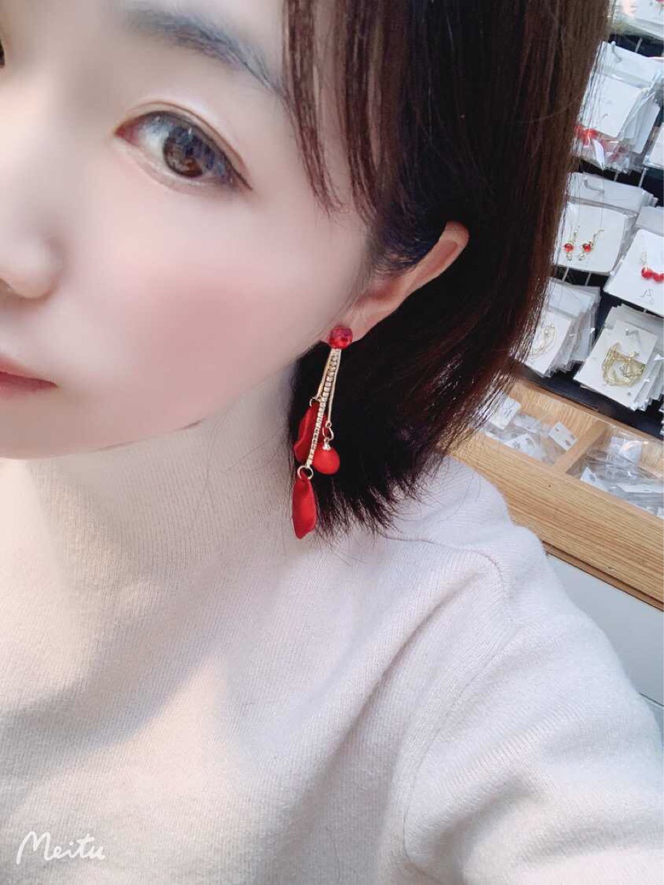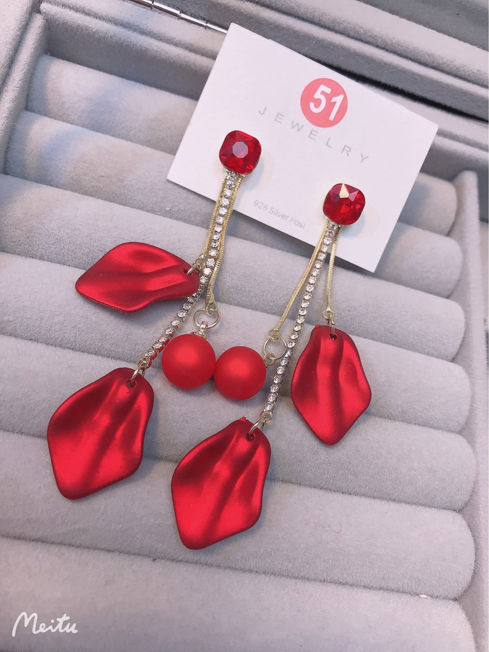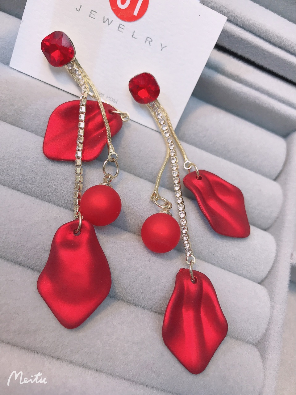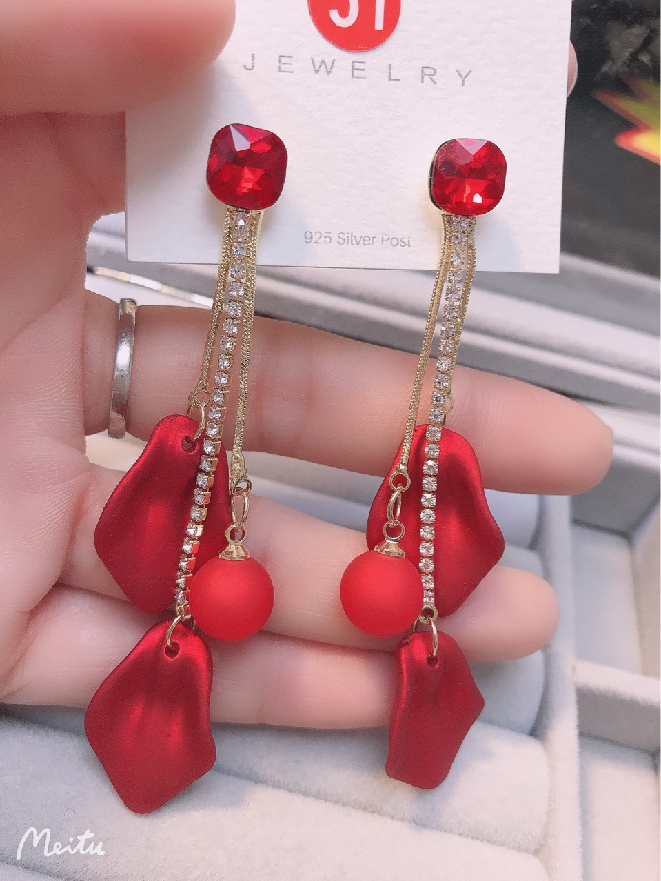 【真金电镀】 韩国超仙气质红色花瓣流苏过年戴的耳环网红显瘦耳饰品
