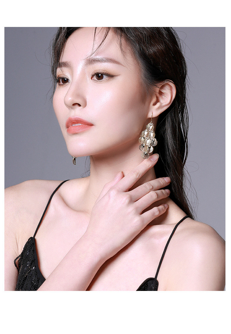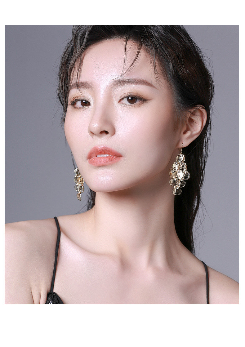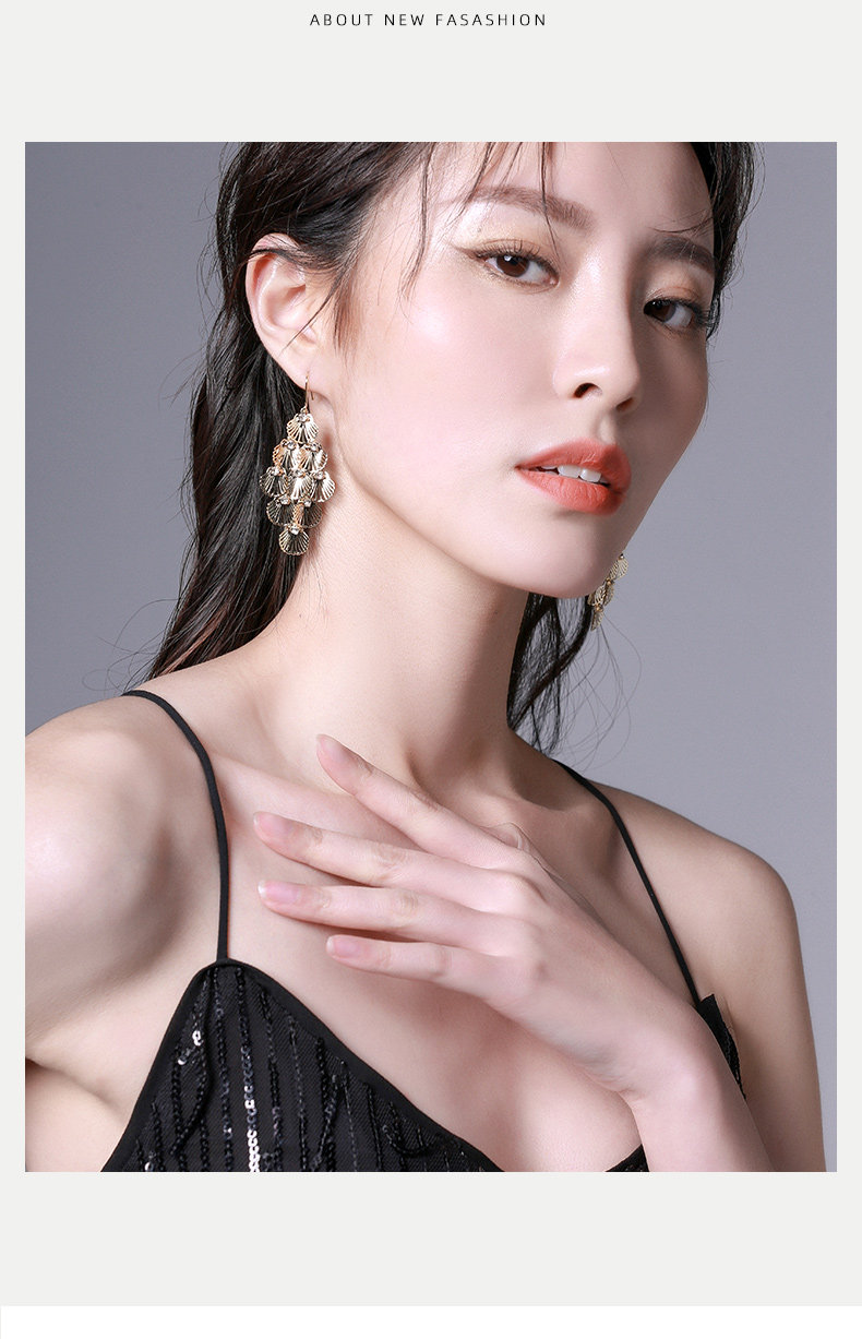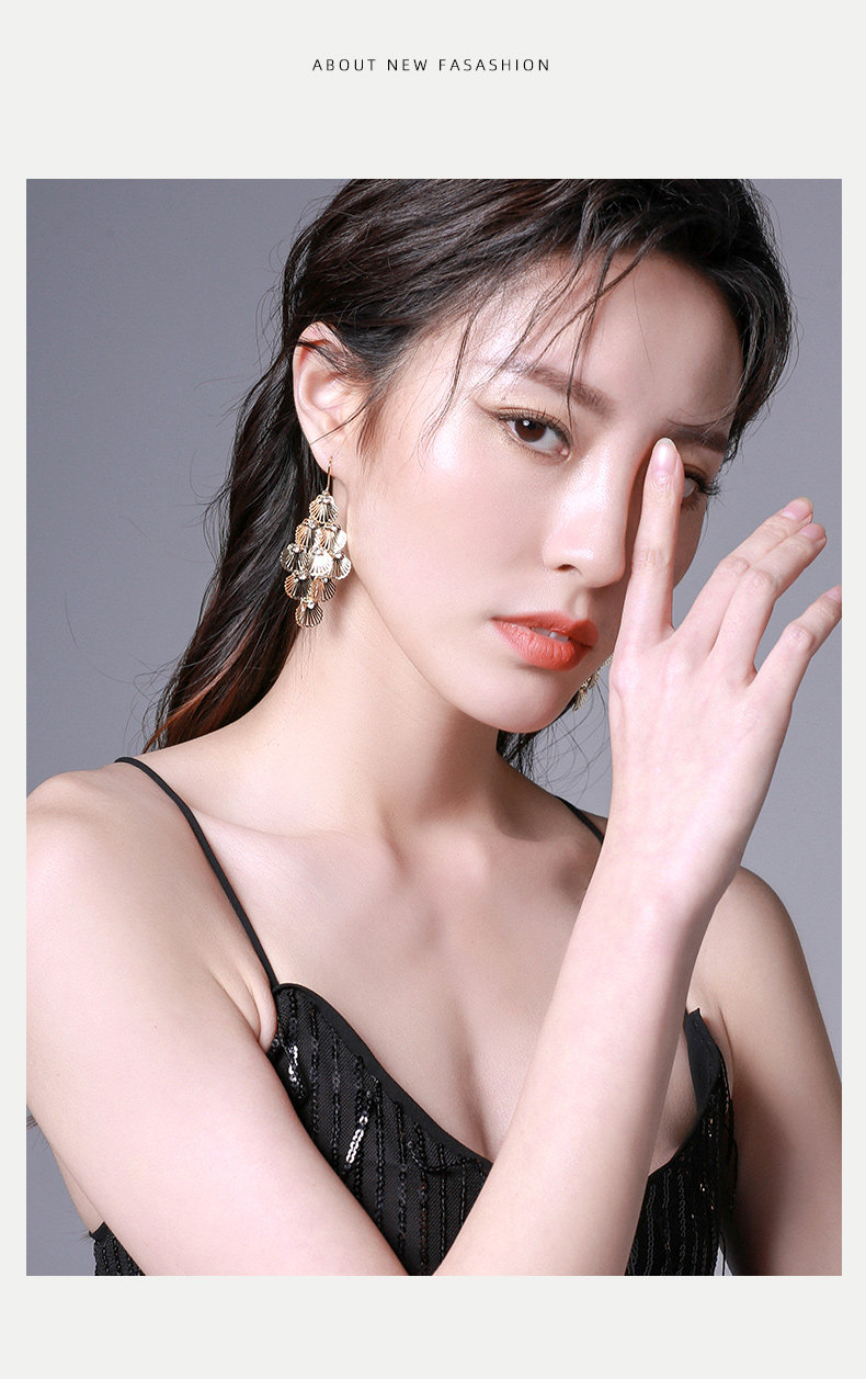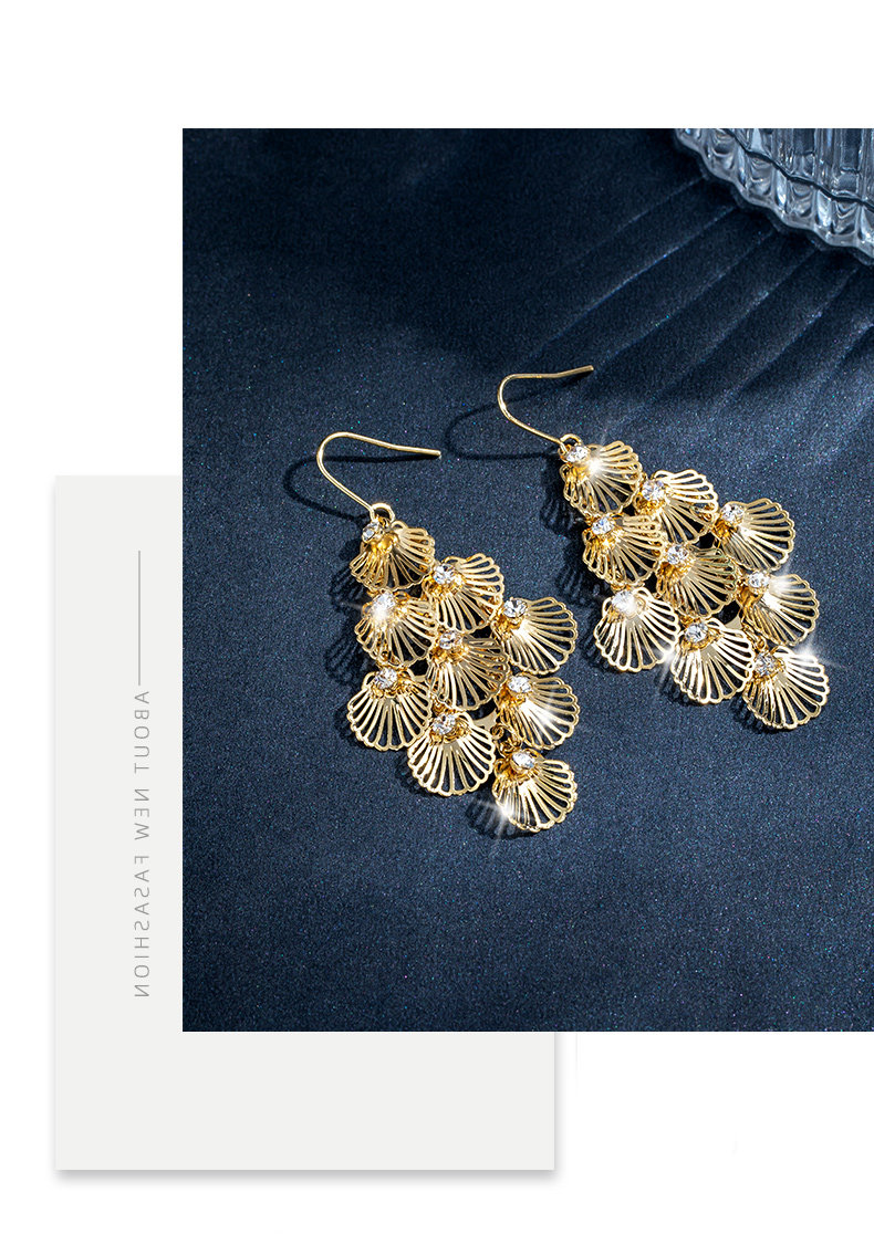 【真金电镀】 韩国镂空贝壳女耳环金色气质长款大气镶钻流苏耳饰耳钉
